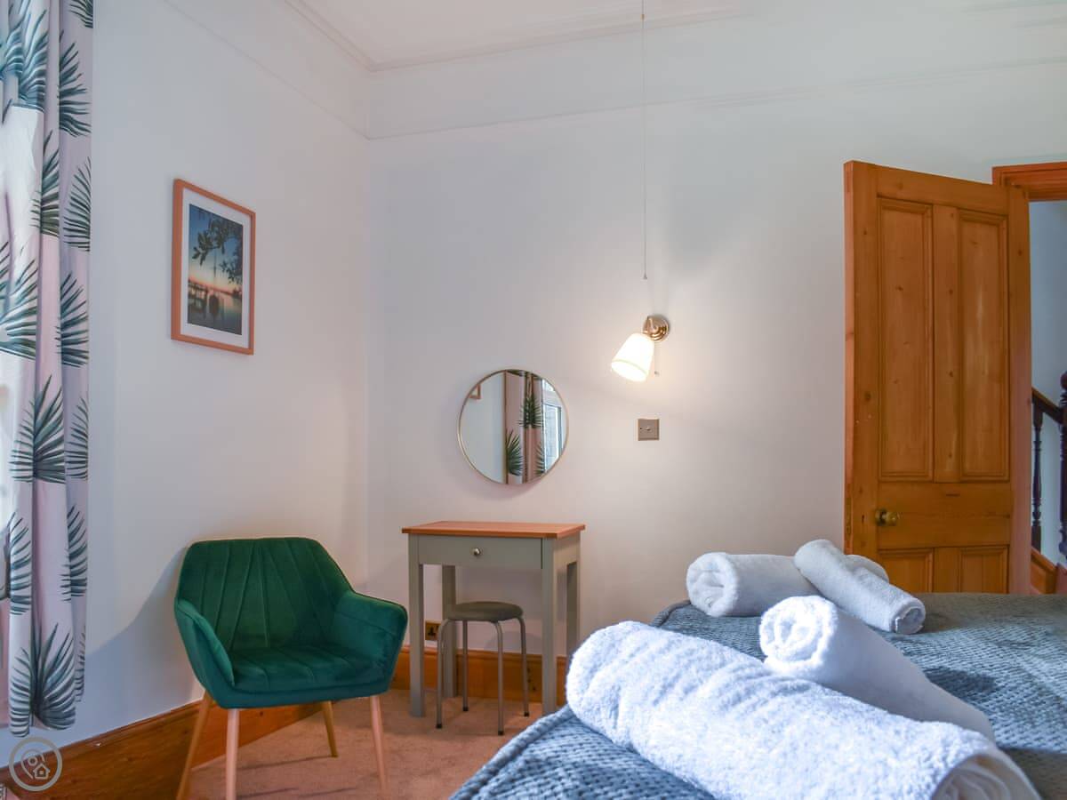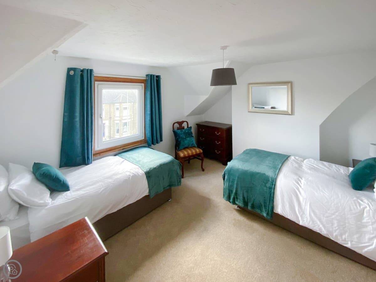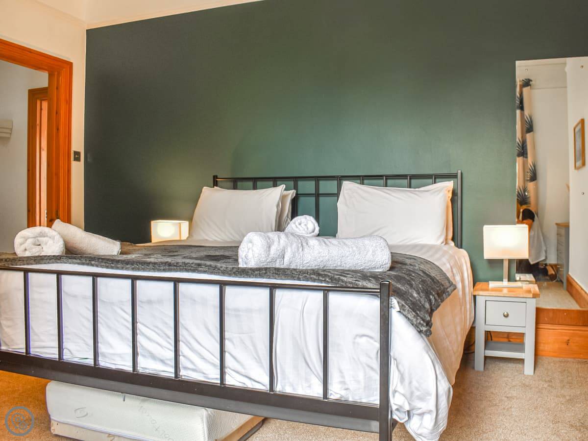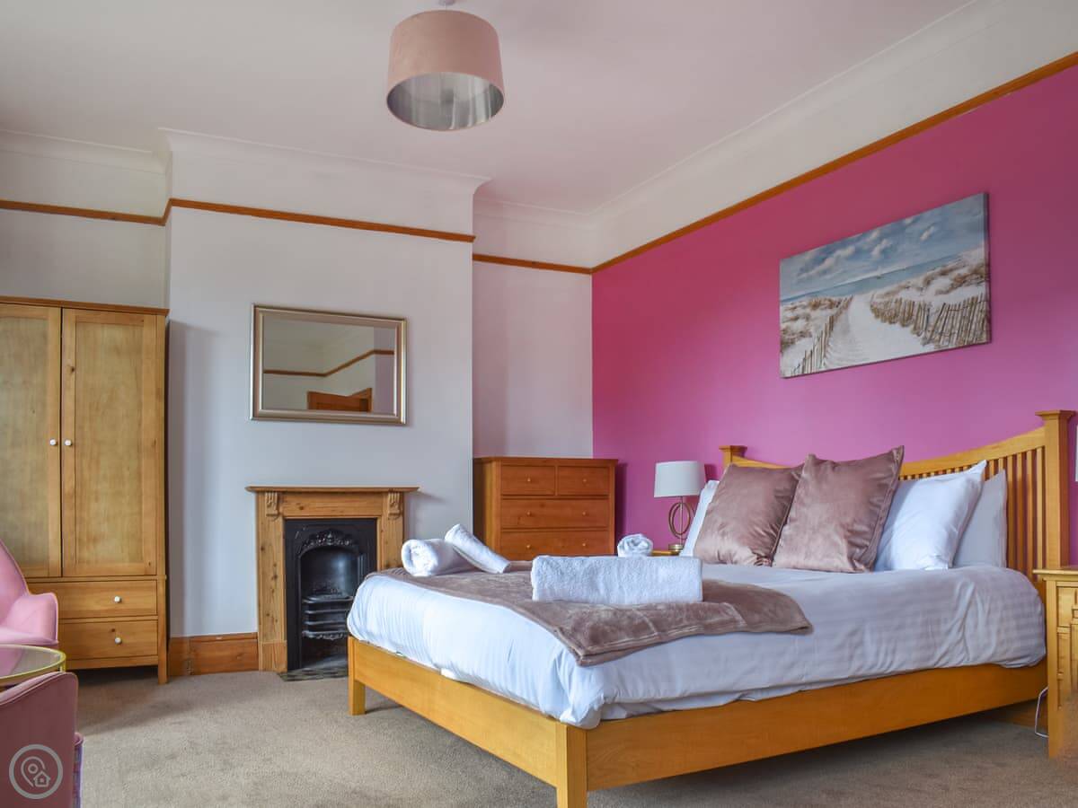 It's a big Victorian house. Sleeps fourteen, seven bedrooms, three bathrooms. It's got a 4 Star rating, which means it's well equipped and comfortable. We've recently done it up, but kept the original features like the stained glass door and the high ceilings. It feels spacious.