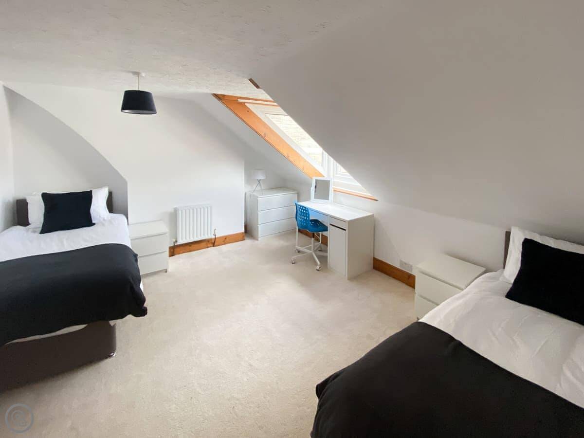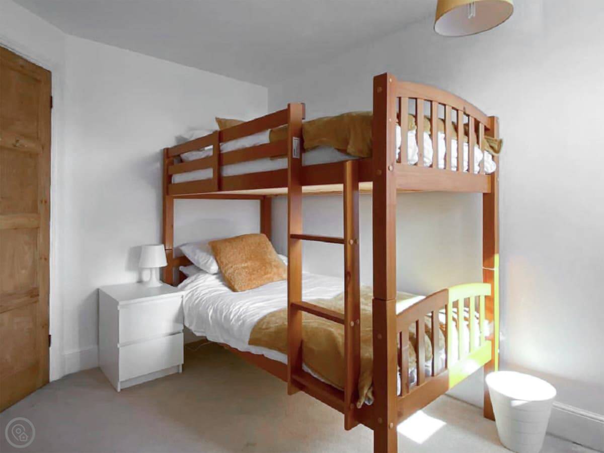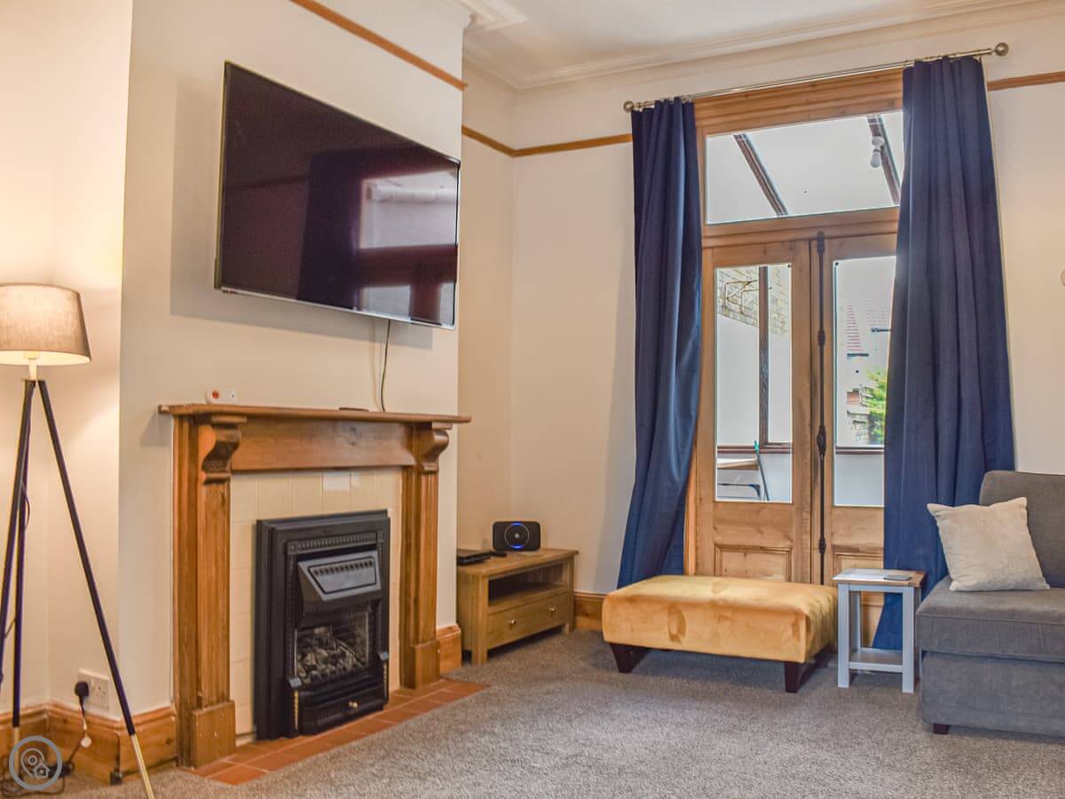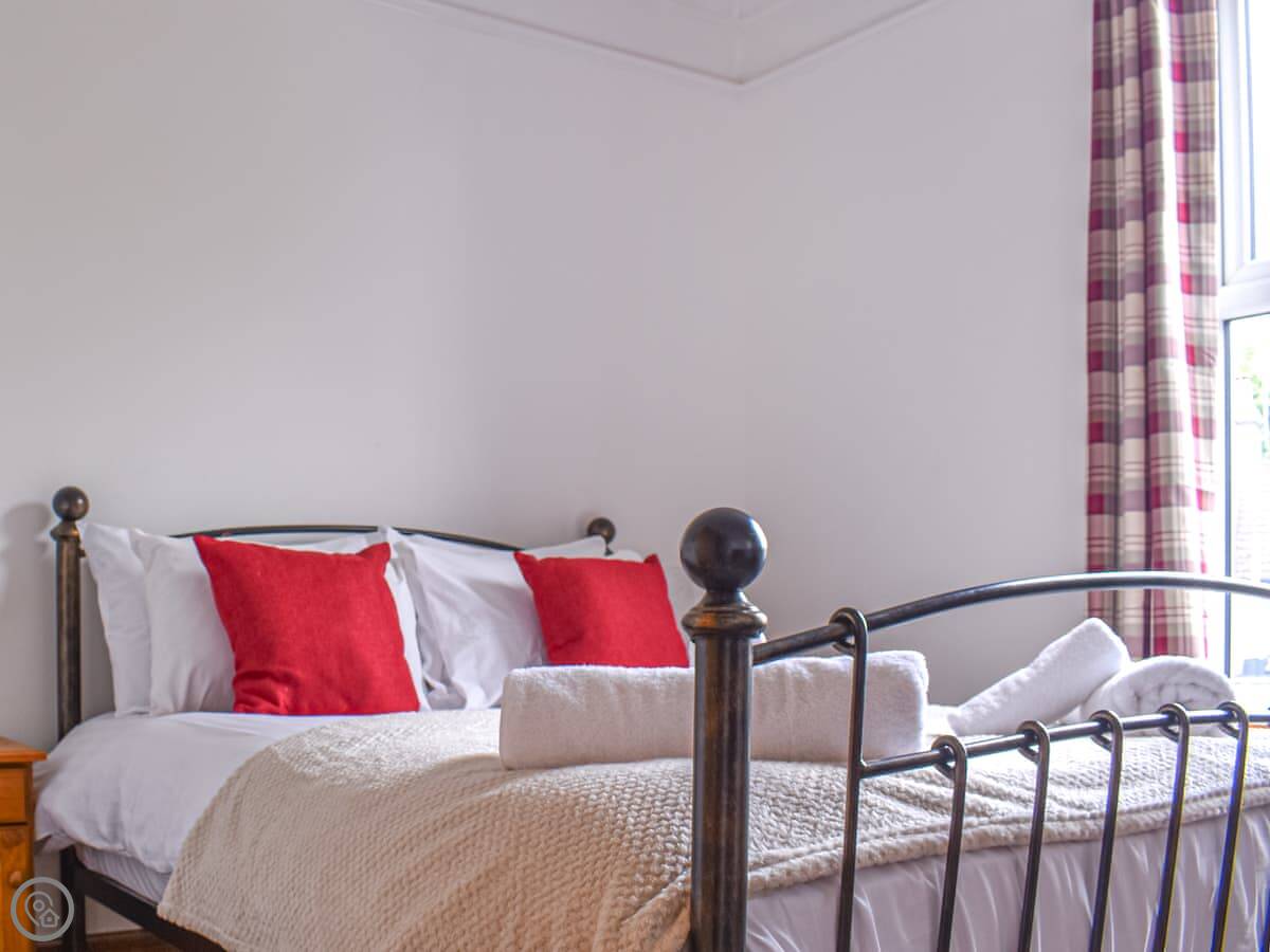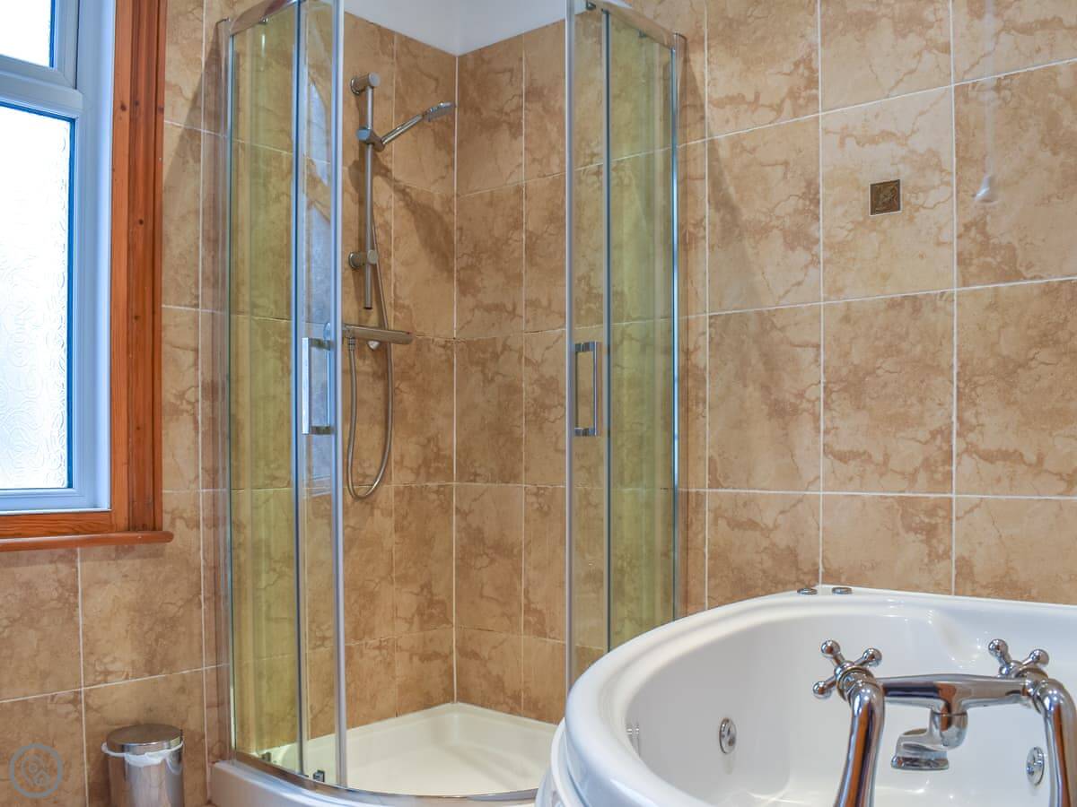 It's a big Victorian house. Sleeps fourteen, seven bedrooms, three bathrooms. It's got a 4 Star rating, which means it's well equipped and comfortable. We've recently done it up, but kept the original features like the stained glass door and the high ceilings. It feels spacious.
