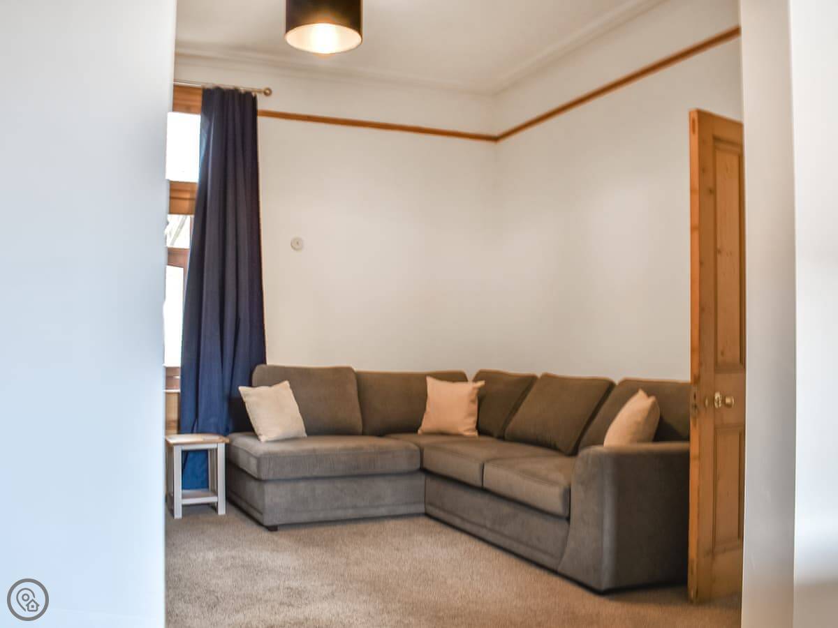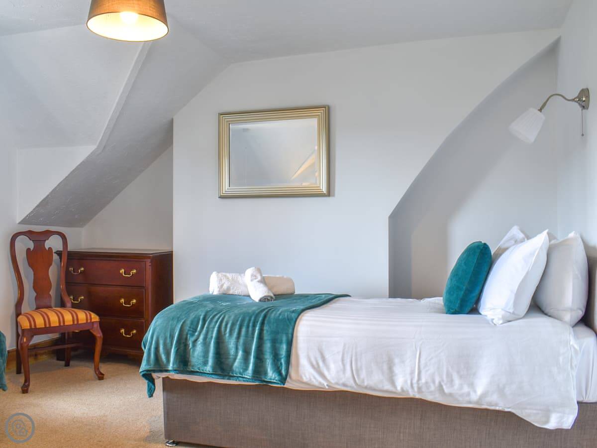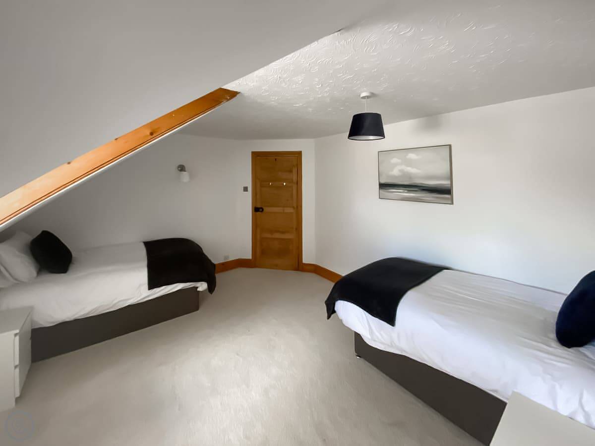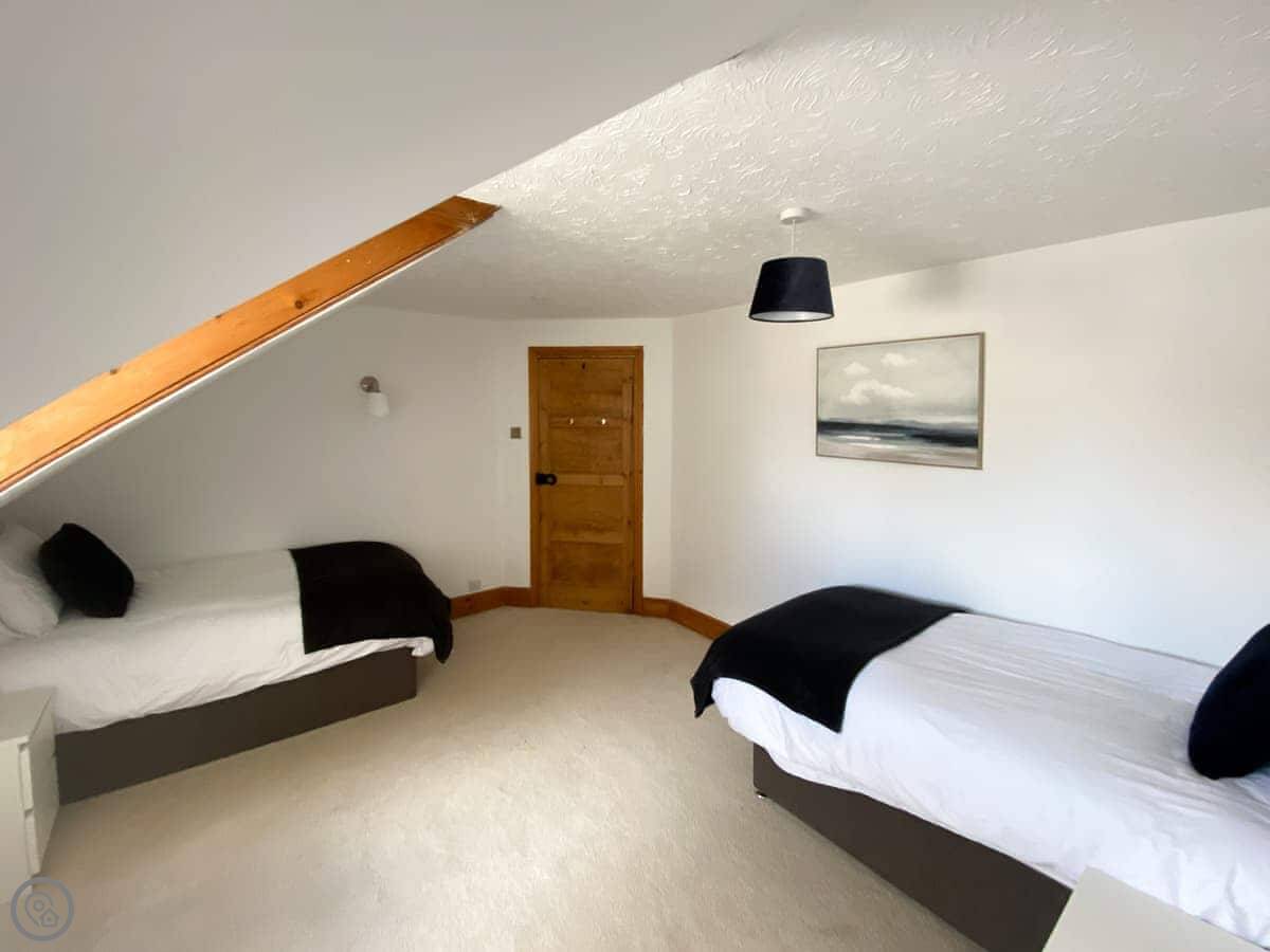 It's a big Victorian house. Sleeps fourteen, seven bedrooms, three bathrooms. It's got a 4 Star rating, which means it's well equipped and comfortable. We've recently done it up, but kept the original features like the stained glass door and the high ceilings. It feels spacious.