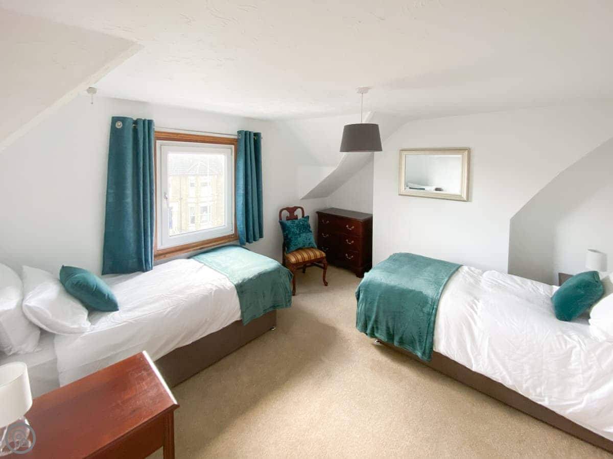 The Haven is on a residential street in Lowestoft. It's about five minutes walk from the main beach. You can see the sea from the top floor.