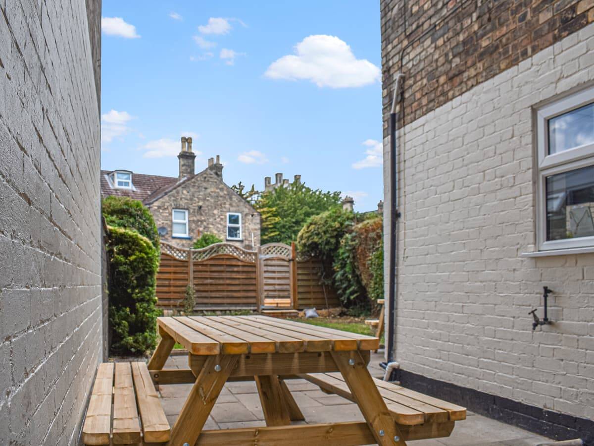 The garden is enclosed. There's a large patio out the back with furniture. You get parking on the drive for a couple of cars.