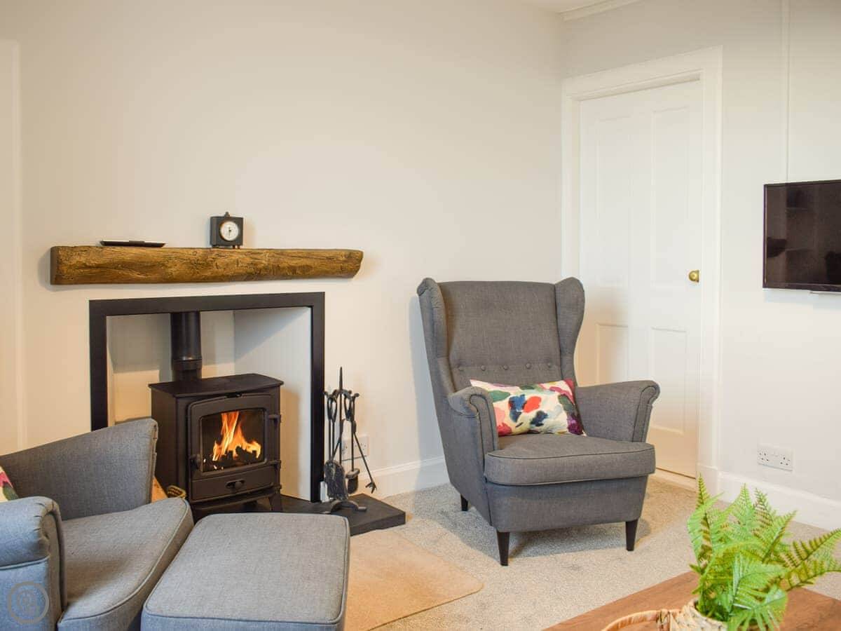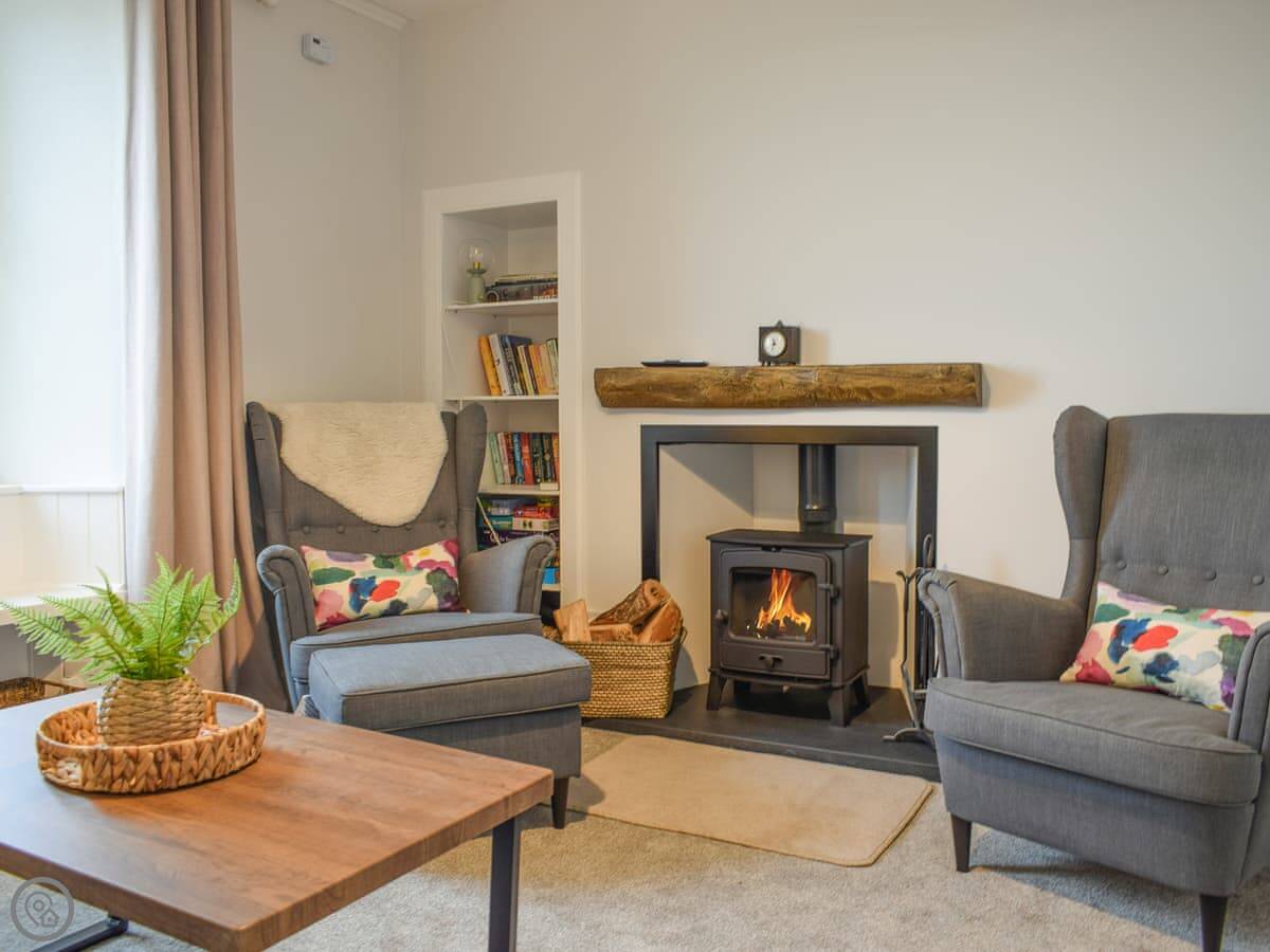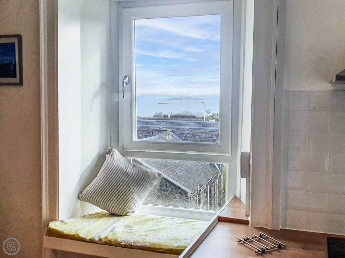 It sleeps four. Two bedrooms and one bathroom. It's a 4 Star place, so it's been done up nicely inside. The living room has a wood burner, which is good for cooler evenings. The kitchen looks out over the Firth of Forth.