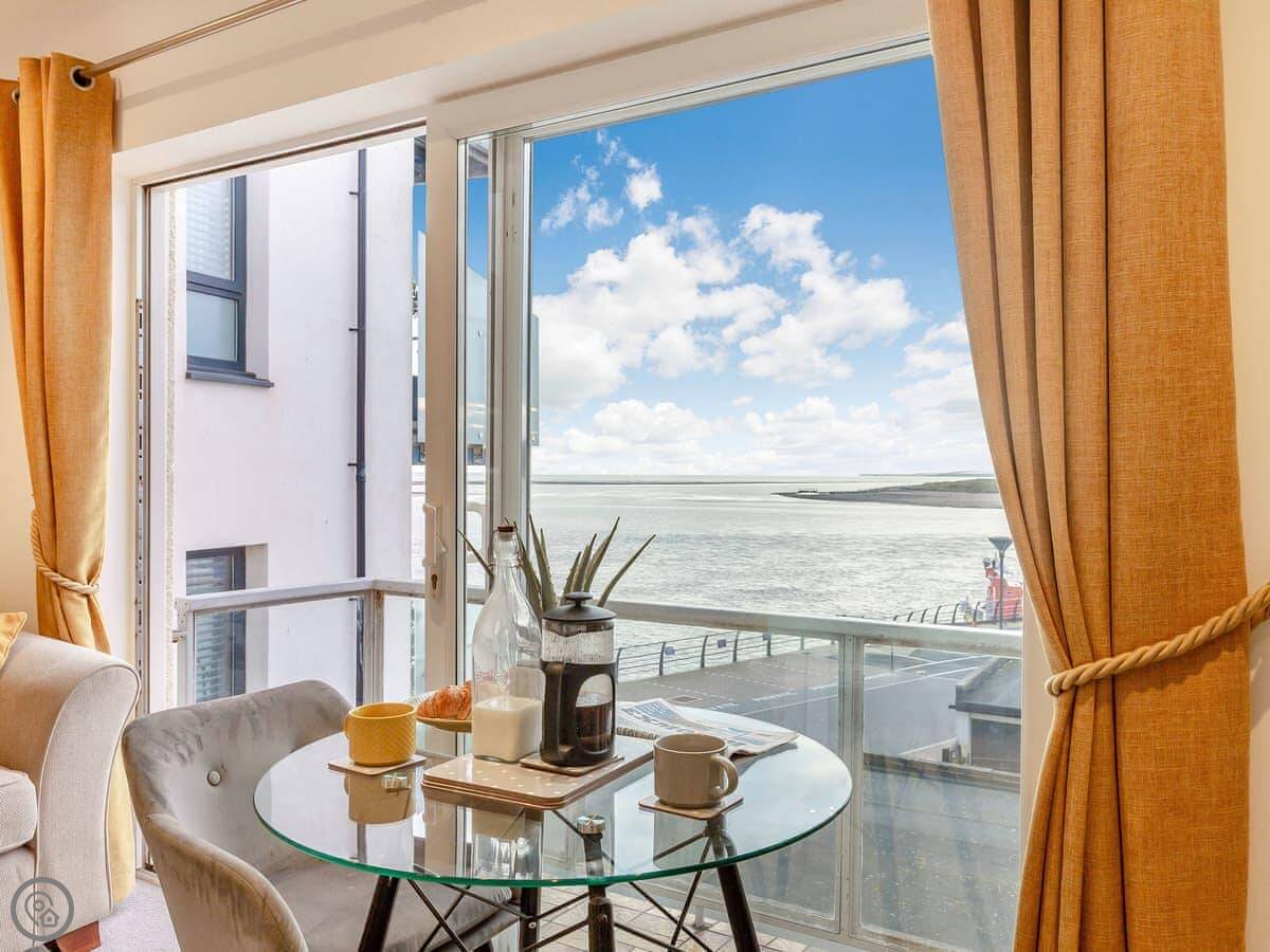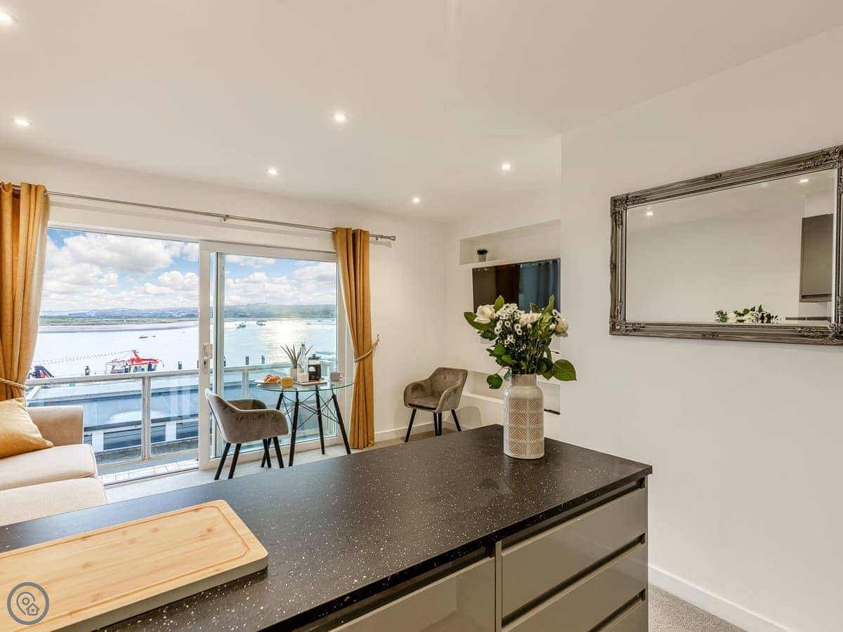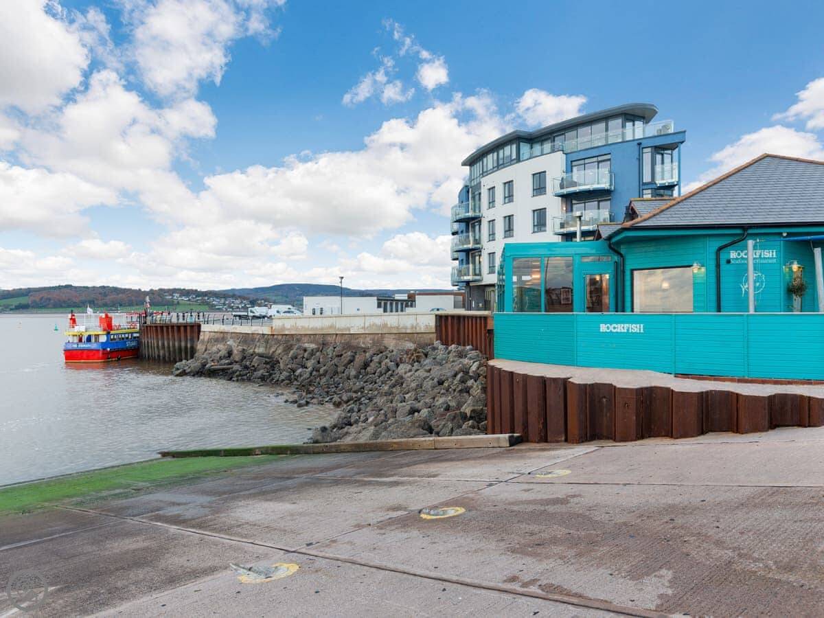 Estuary View is a one-bedroom apartment in Exmouth. It's on the seafront, basically opposite the beach and the marina. The name is accurate, you get a full view of the estuary from the main room.