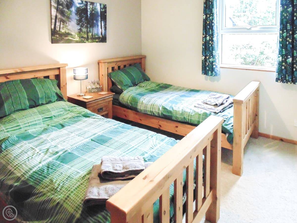It sleeps four in two bedrooms, one double and one twin. There's one modern shower room. The rating is 3 Star, so it's comfortable but not luxurious. It's all on one floor, which is good if you don't want stairs.