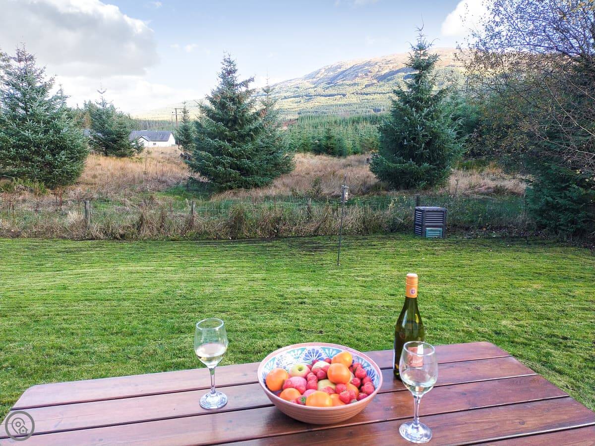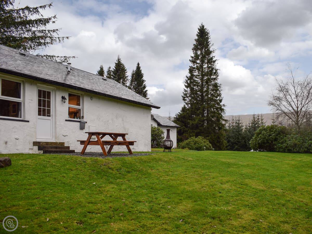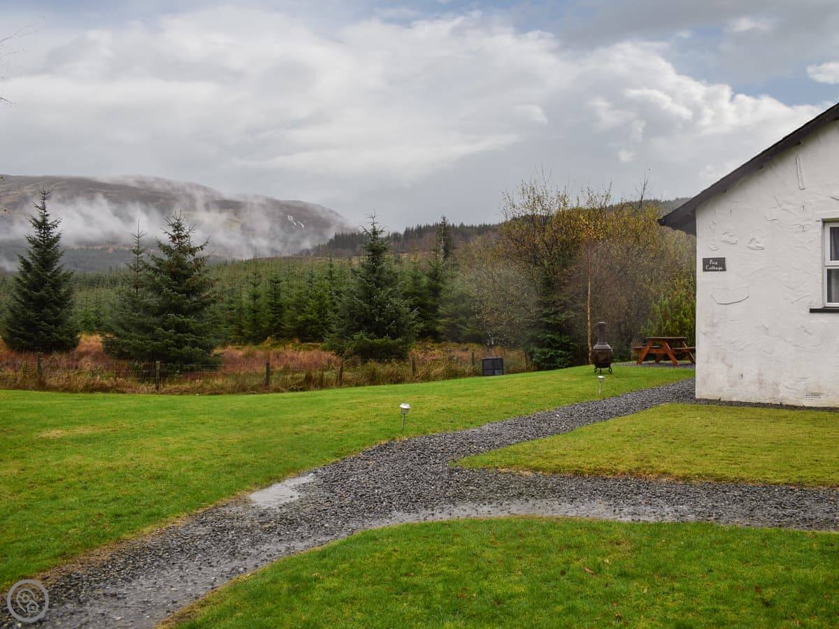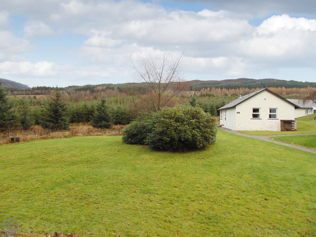 Pine Cottage is in Lix, near Killin. It's a detached one-level cottage in a small group of four. They're spaced well apart. You've got a lot of ground around you, mostly open garden.