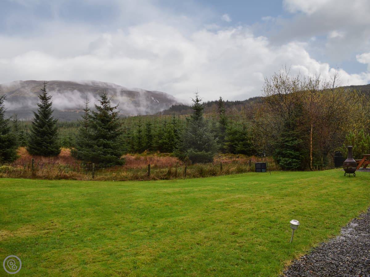 You're right in The Trossachs National Park. The forest is all around you. Killin village is about five minutes away by car. It's got a shop, a couple of pubs, and the Falls of Dochart. Callander is about half an hour's drive. Ben More and Crianlarich are about twenty minutes away if you want to head into the mountains.