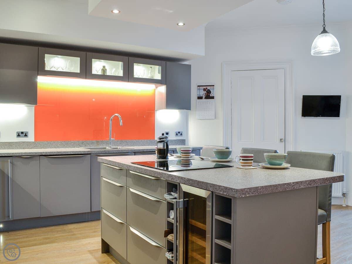 Enjoy a drink or meal in the stylish kitchen with the sunset in the background over the Basin, while the spacious living room is a wonderful place to sit and watch the world go by below. With its wide thoroughfare and good selection of shops and restaurants, Montrose is a great base for a varied and interesting holiday.