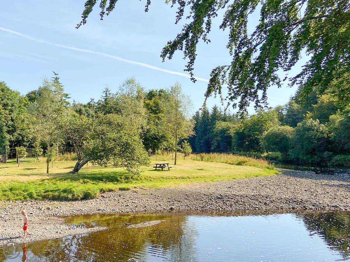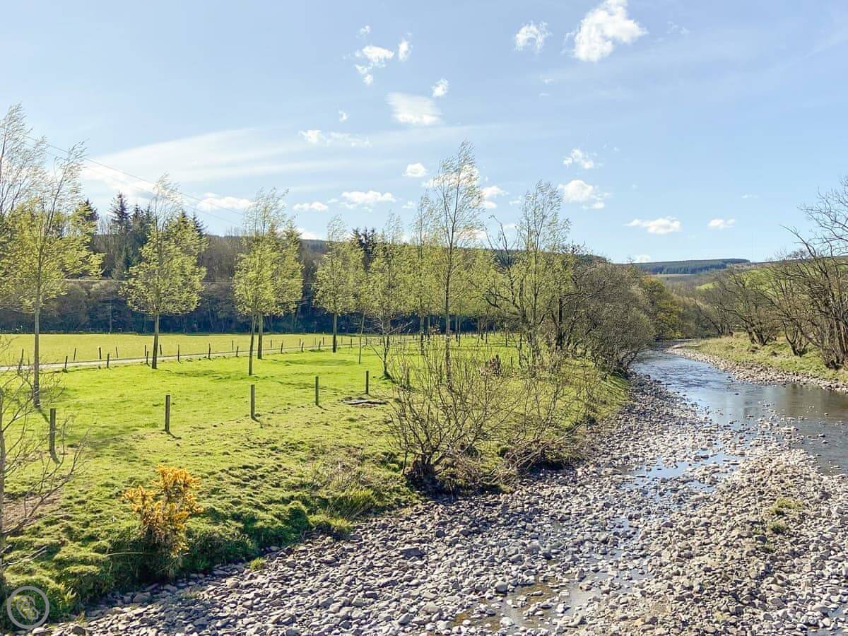 Pinclanty Cottage is in Pinmore, South Ayrshire. It's a detached house, so no neighbours on the other side of the wall. The garden's yours, and it looks out over the river and fields. There's a little patio at the front to sit out on.