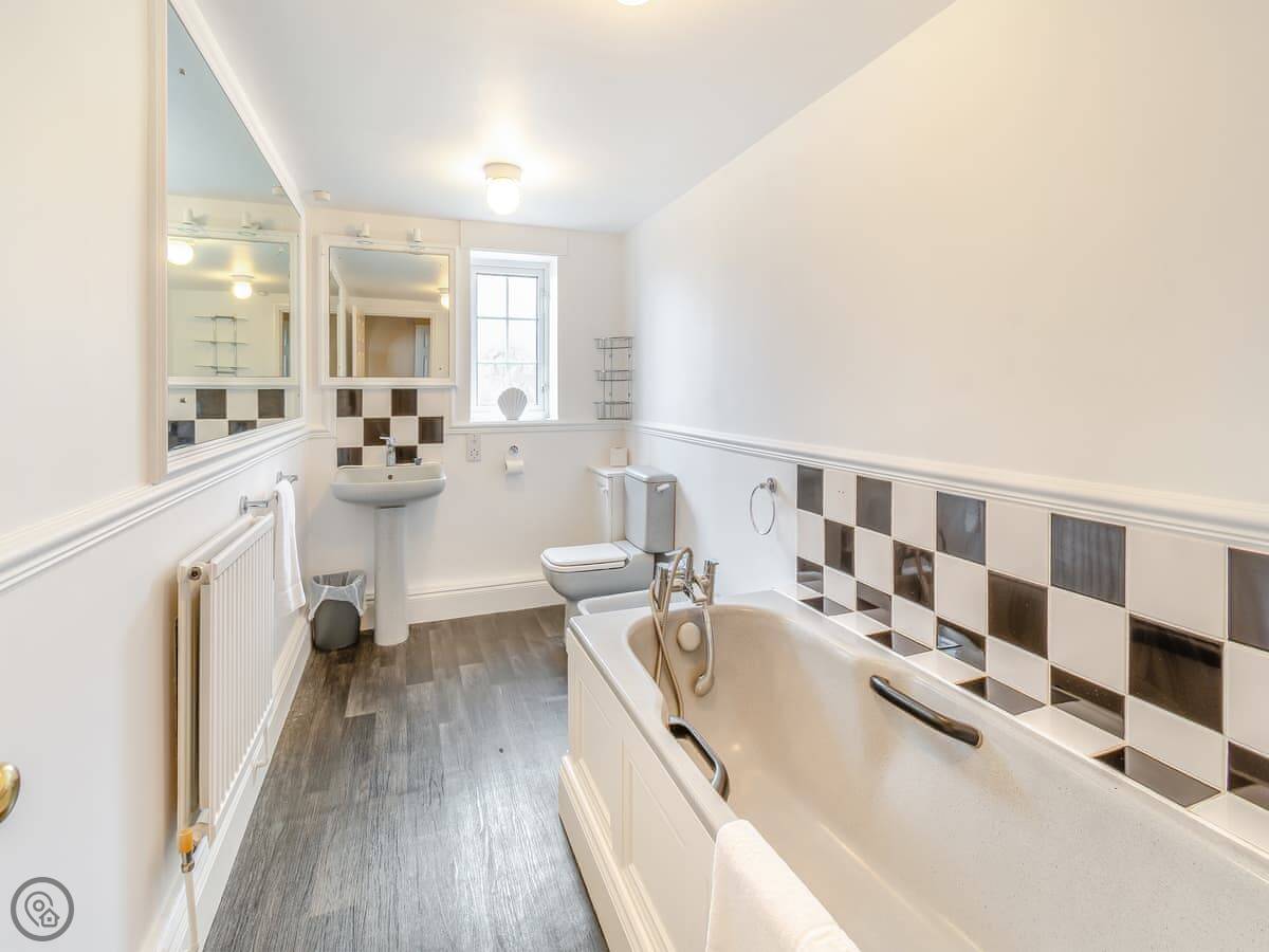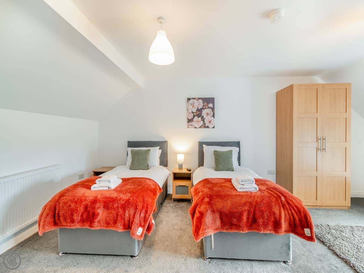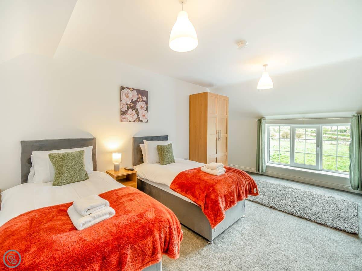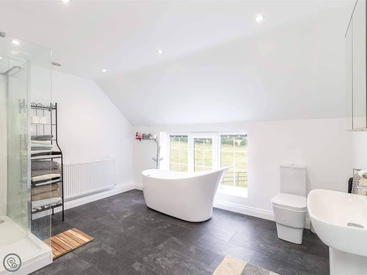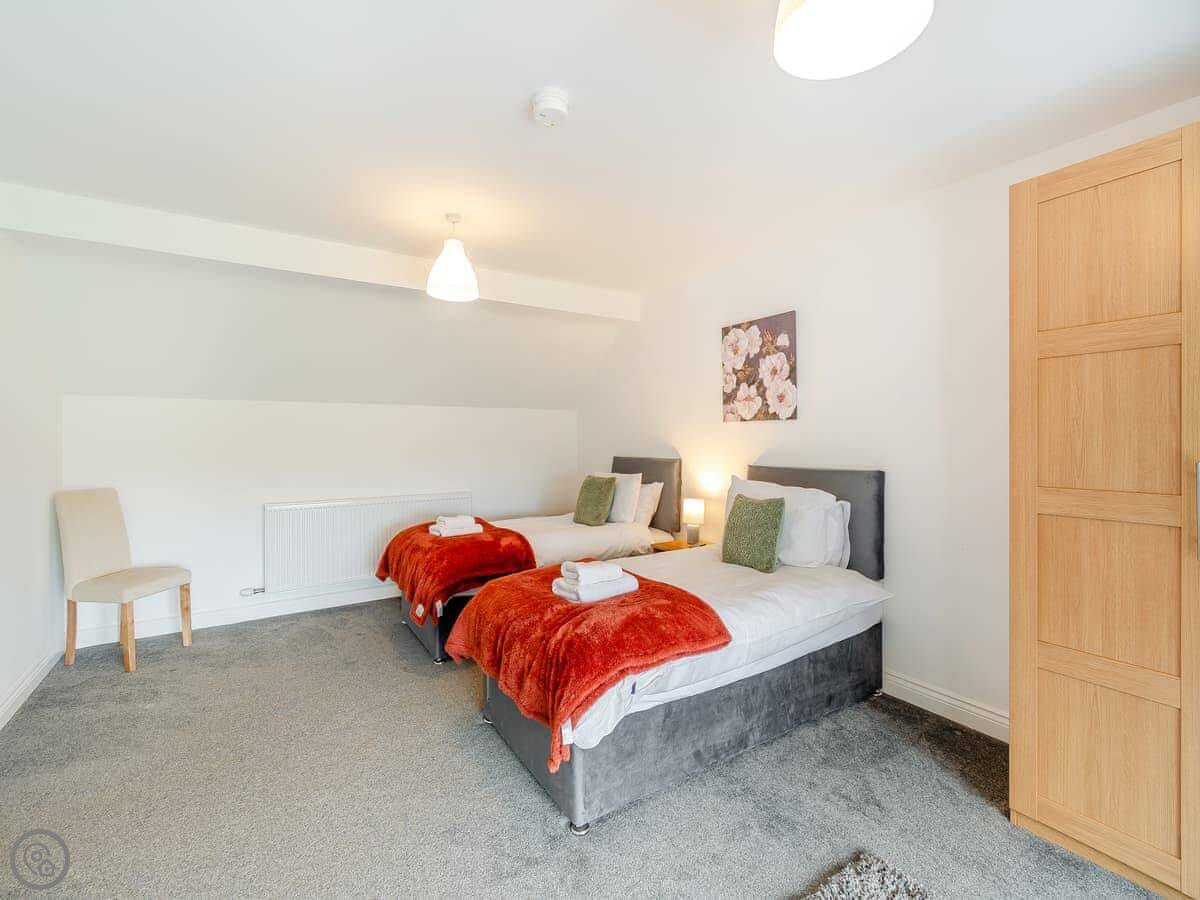 There's a ground floor bedroom with a super king-size bed that can be split into twins. That's useful if stairs are a problem. That room has its own wet room shower.