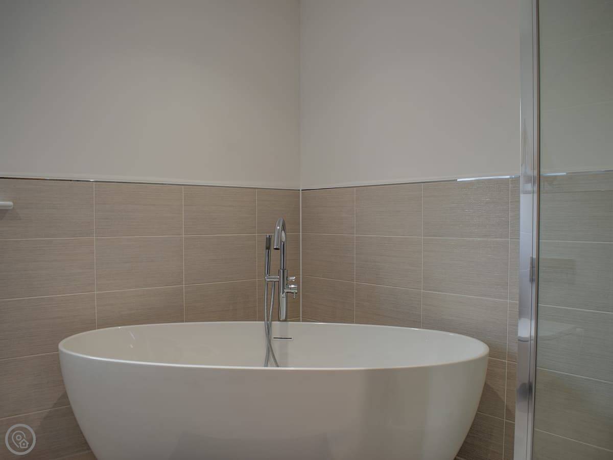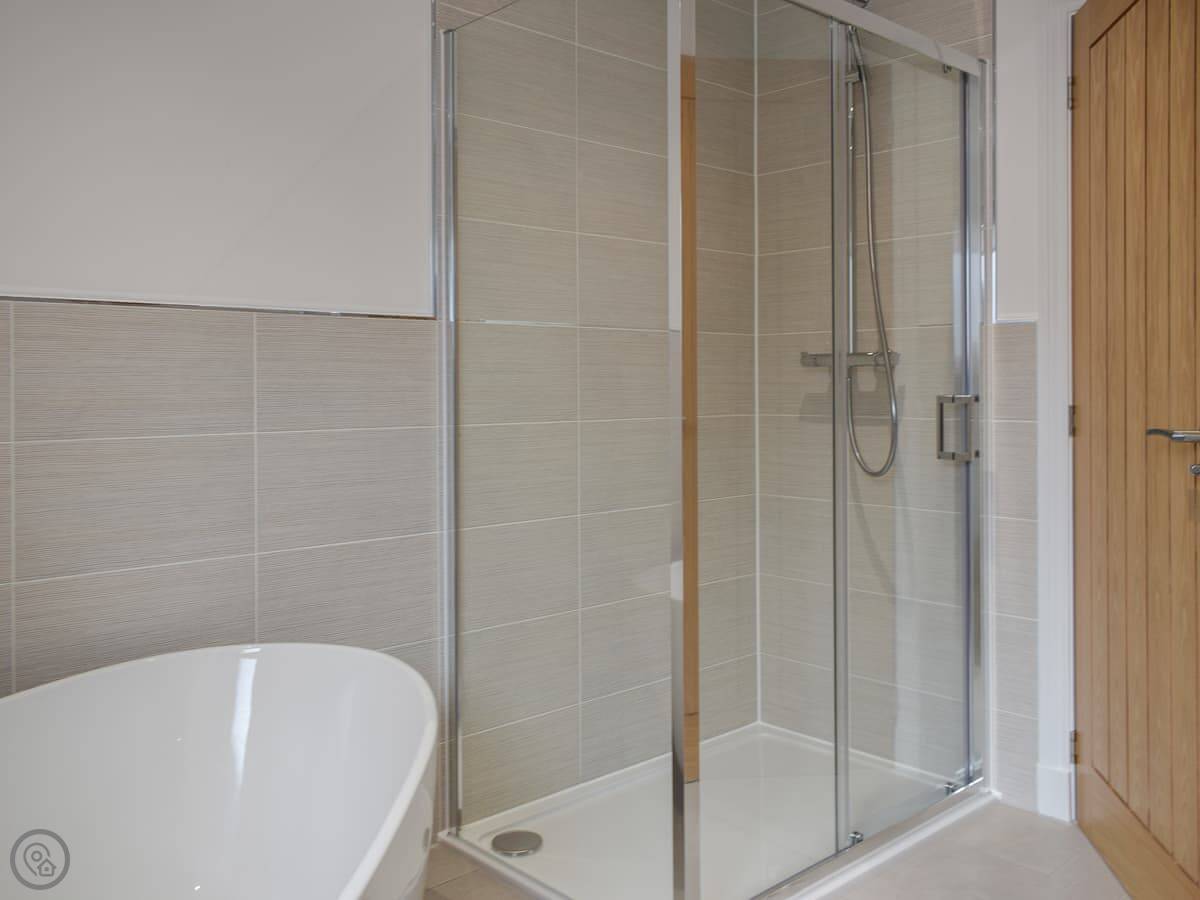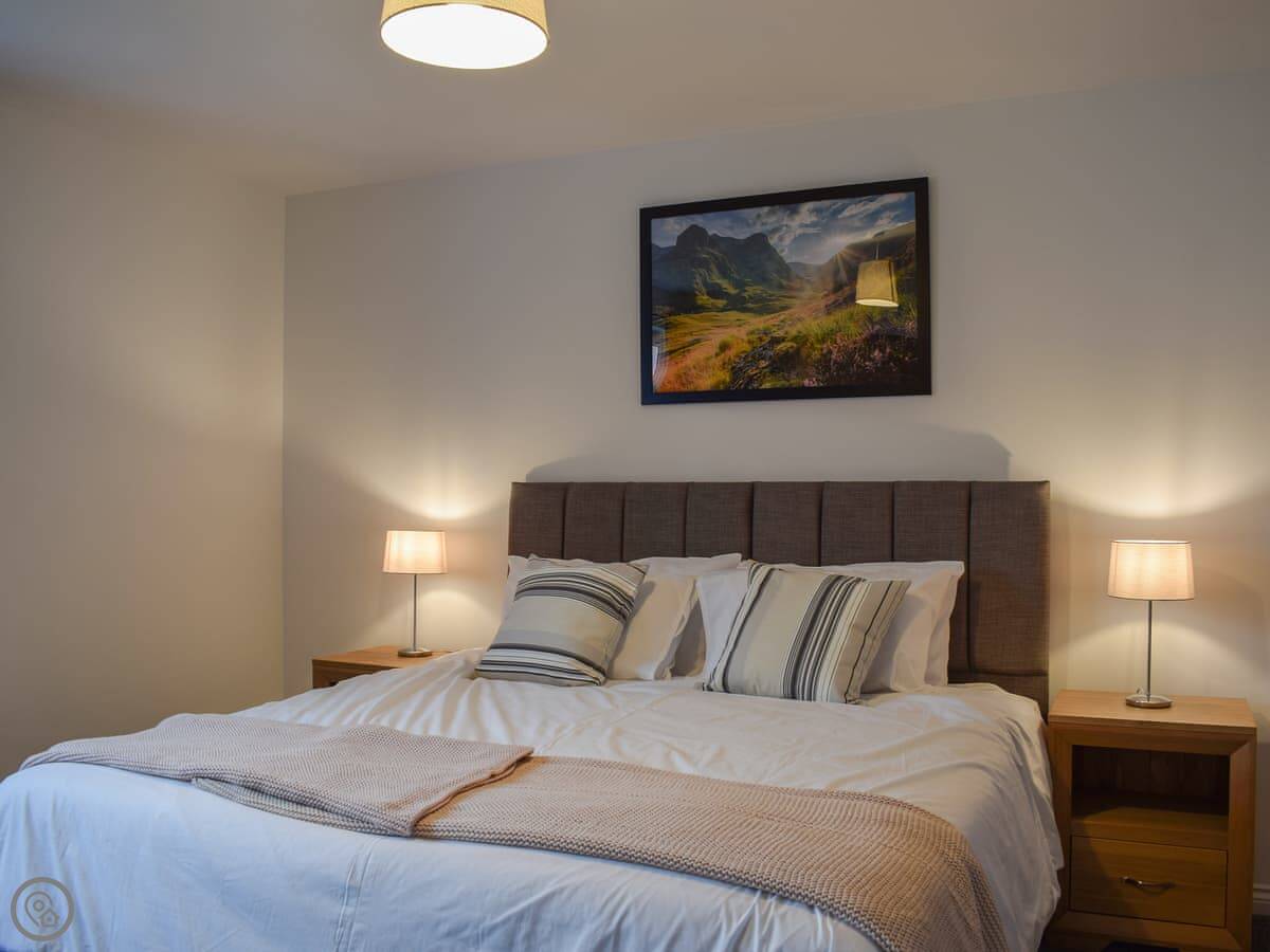 It sleeps ten. Five bedrooms, four bathrooms. It's a 4 Star place, which means it's well-finished and comfortable. Three bedrooms are en-suite. Two have walk-in dressing rooms. One of the kingsize bedrooms is downstairs. The other four are upstairs. All the kingsize beds can be split into twins if you need that.