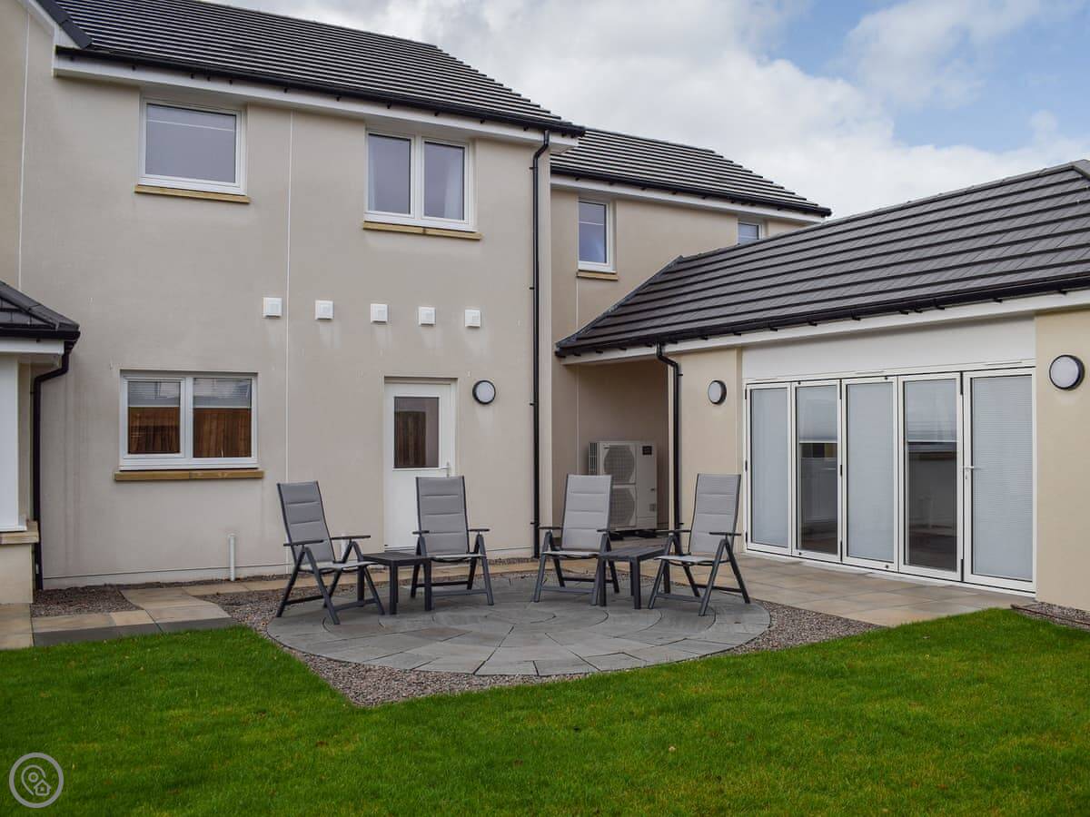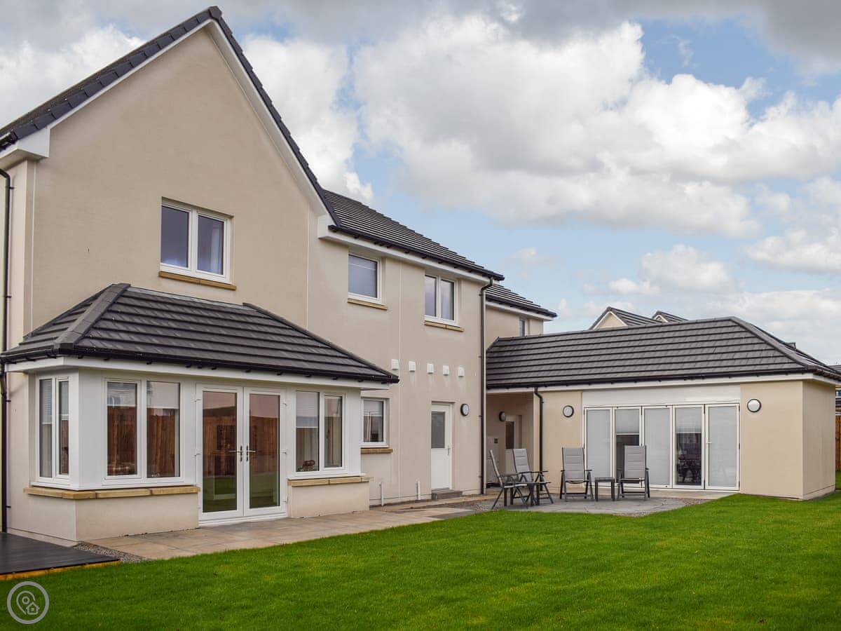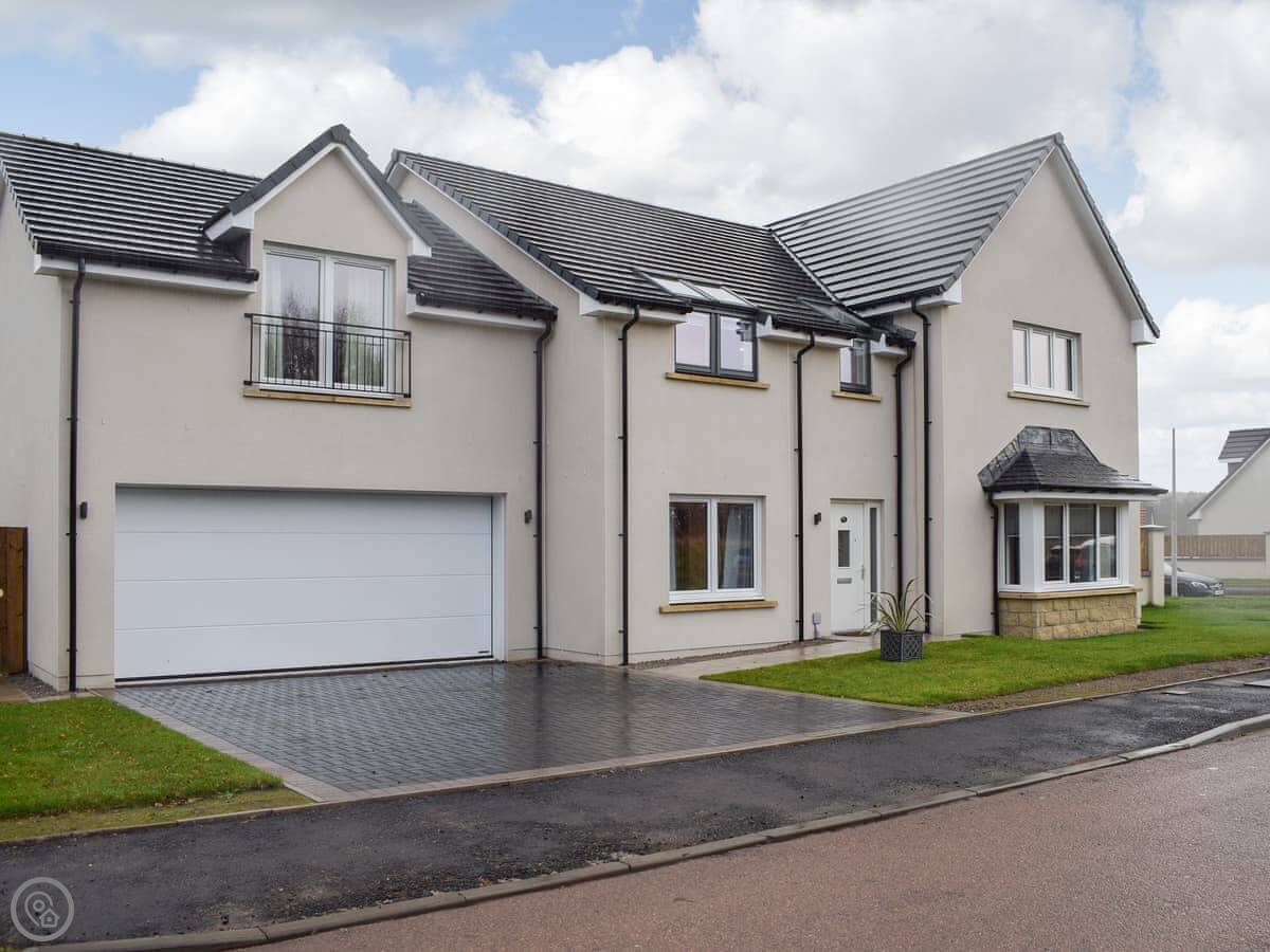 Pickle House is in Drumoig in Fife. It's a new house, built in 2022. Detached. Very big and square. The driveway fits a few cars and there's a double garage.