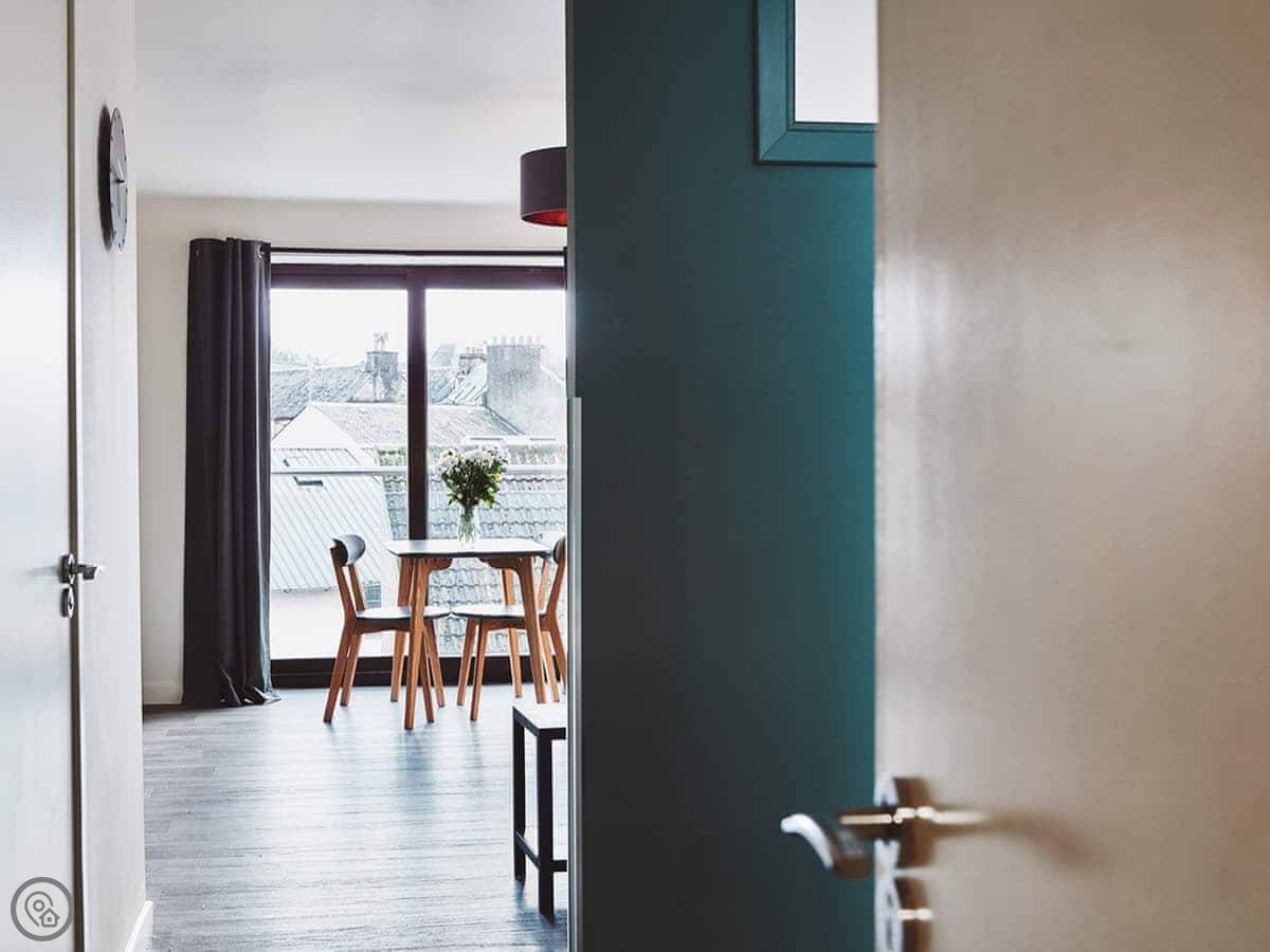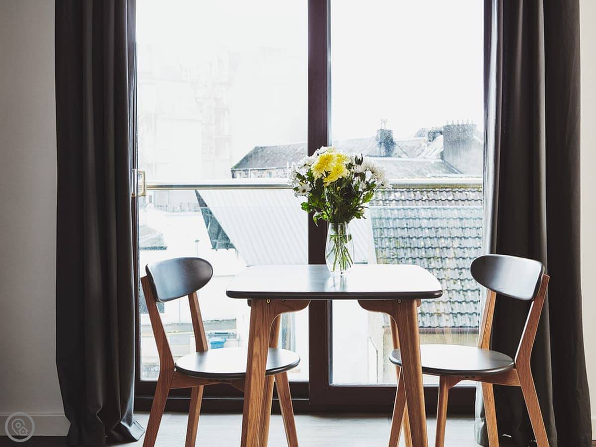 A spacious first floor one bedroom studio within a modern building, situated just off the main street in Oban, you can be close to the hustle and bustle of town life, whilst being complete separate in your own peaceful apartment. Ranald Apartment is close to all shopping, entertainments, restaurants, and all sailing, rail, ferry and coach terminals. Accessed via stairs from the ground floor, the main living space is a stylish lounge with small dining area and compact kitchen allowing guests to self-cater with ease and in comfort. Leading off the lounge is a well-proportioned double bedroom with a fitted wardrobe and en-suite shower room.