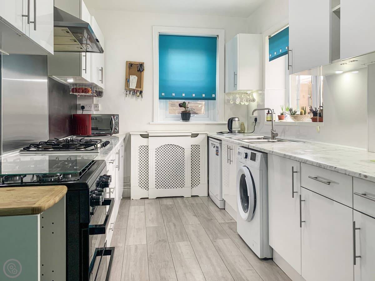 This luxury property is a fantastic place to relax with family or as a group of six, inside the house, there is plenty of room to socialize and relax after a busy day. Upon entering the property, be welcomed by the wonderful interior design which has been carefully done to reflect the character of the property, with the clever blend of quality furniture and fixings. Covering all the necessities for your break is the modern kitchen, where you will be delighted to prepare all your meals before gathering the family to dine in the separate dining room. The kitchen also leads to the sunroom perfect to read your book or just enjoy the fabulous views. Look forward to snuggling up in the lounge area whilst catching up on your favourite TV shows. As the evening draws to a close, follow the staircase to the three well-presented bedrooms, comprising of two kingsize bedrooms one with a separate en-suite, a double bedroom, where you can drift off to the night’s welcoming embrace. In the warmer months the back garden offers social space to make memories with your loved ones, however recommend children are to be supervised due to a high terrace and and steps within the garden.
