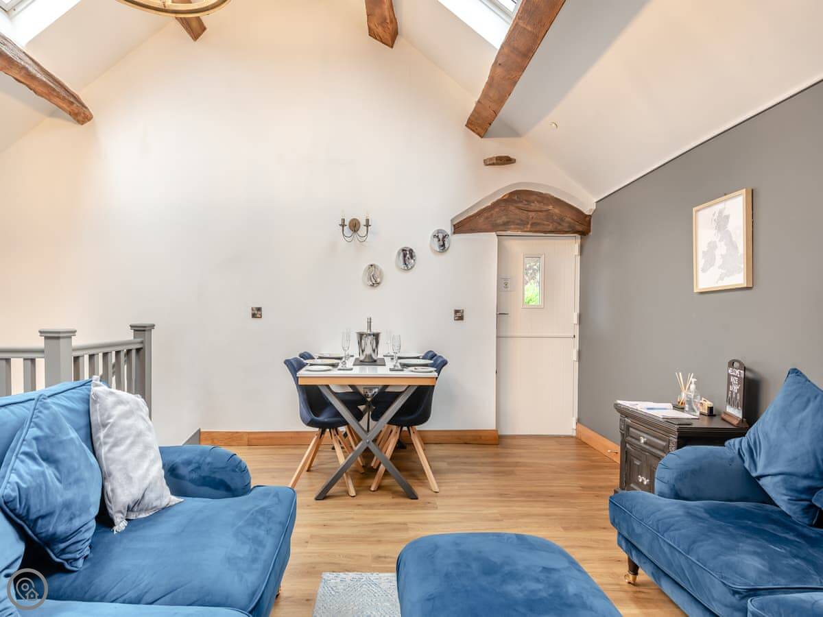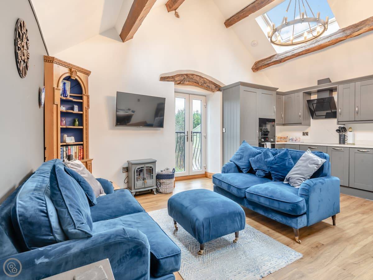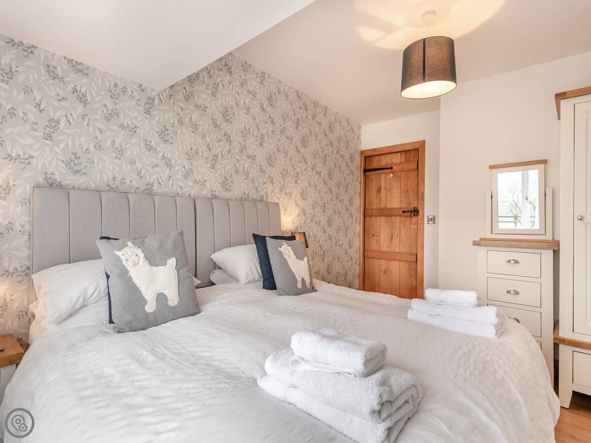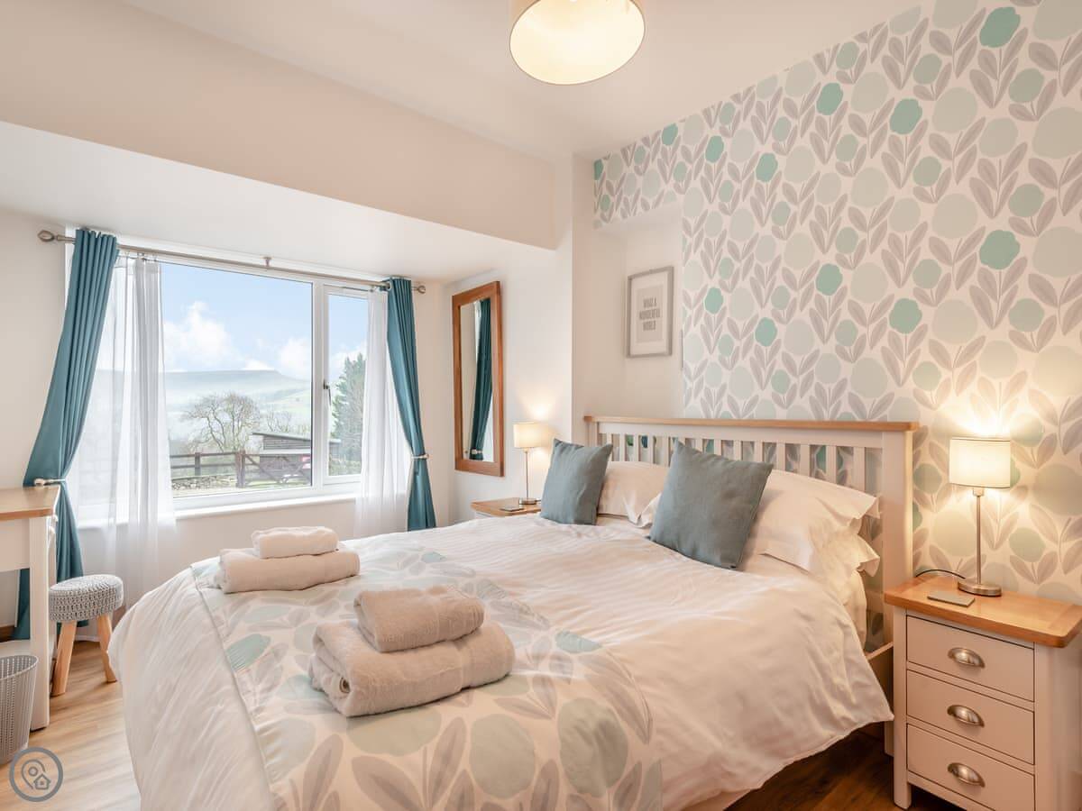 Naze View Barn is located on the owner’s working farm, a unique location within the Peak District on an alpaca farm sharing the land with horses, alpacas and the owner’s friendly cocker spaniels. The barn offers beautiful accommodation for up to four guests. On the ground floor there are two kingsize bedrooms, one of these can be made into a twin if requested, plus a modern shower room. On the first floor is an open plan living space with fully equipped kitchen with dining table and chairs, a cosy living area with a Juliet balcony. The barn has high ceilings and has been finished to a high and modern standard, keeping the accommodation light throughout with tasteful pops of colour. Outside there is an enclosed garden with patio area, plus a hot tub to be enjoyed at your leisure. There is also private parking available. The owner does offer an alpaca experience for an extra charge and you can walk them around the farm, this is to be organised directly with the owners.