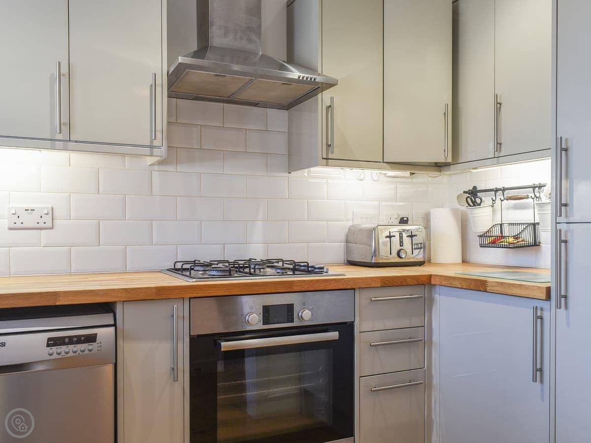 You've got one bathroom, and a kitchen that's got what you need. The living area is open plan. It's a good space when you're all in together.