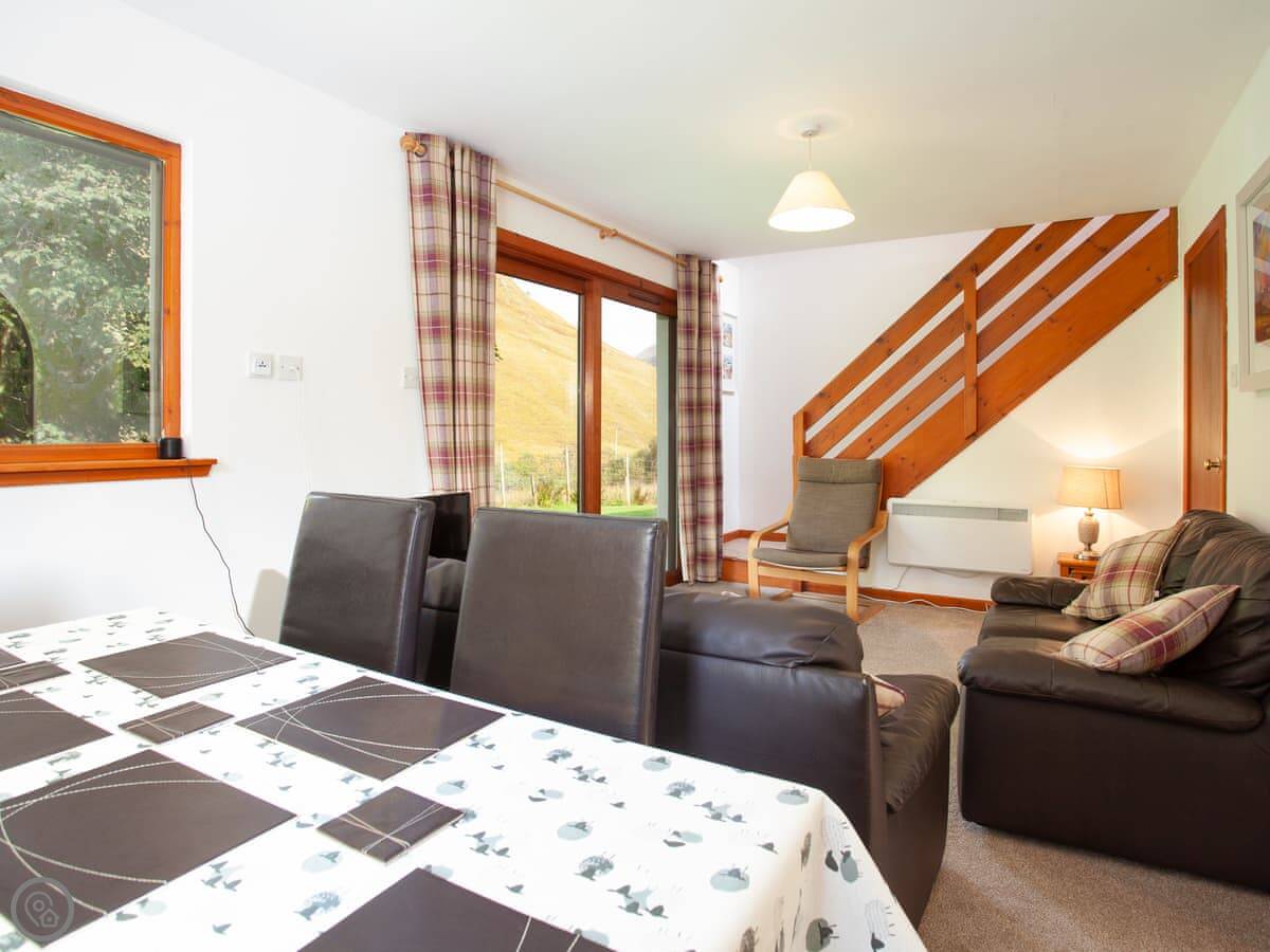 Aonach Cottage is in Glencoe. It's about three miles from the village and the sea lochs. The setting is very quiet. You get mountain views right from the windows, including a direct look at the Aonach Eagach ridge.