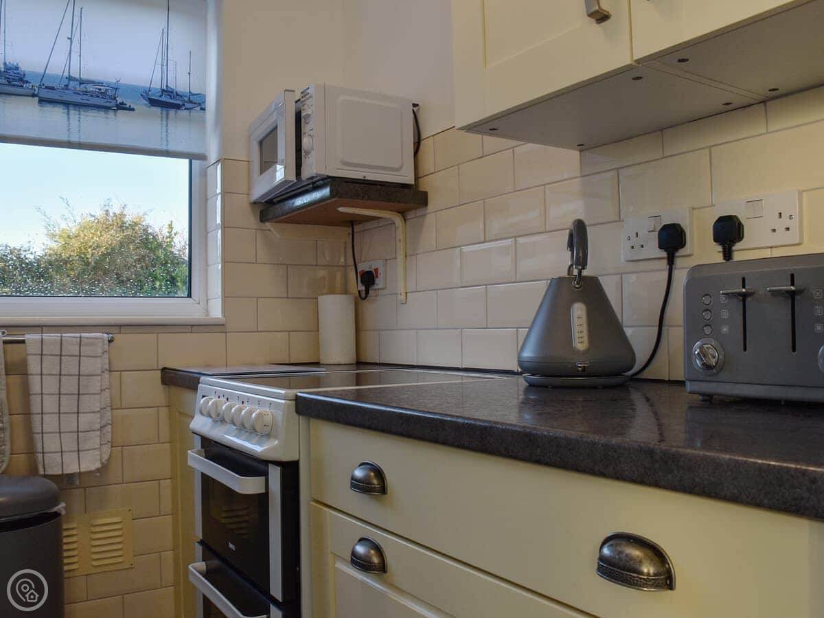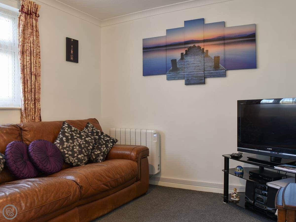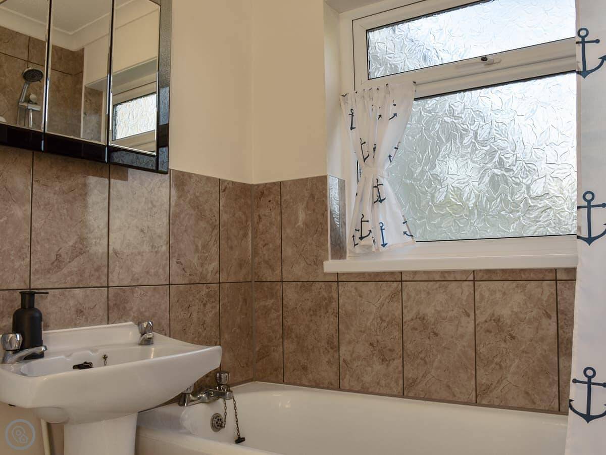 Outside, there's a garden area with some space. The local shop, a pub, and a fish and chip shop are all a few minutes walk away. They're handy.