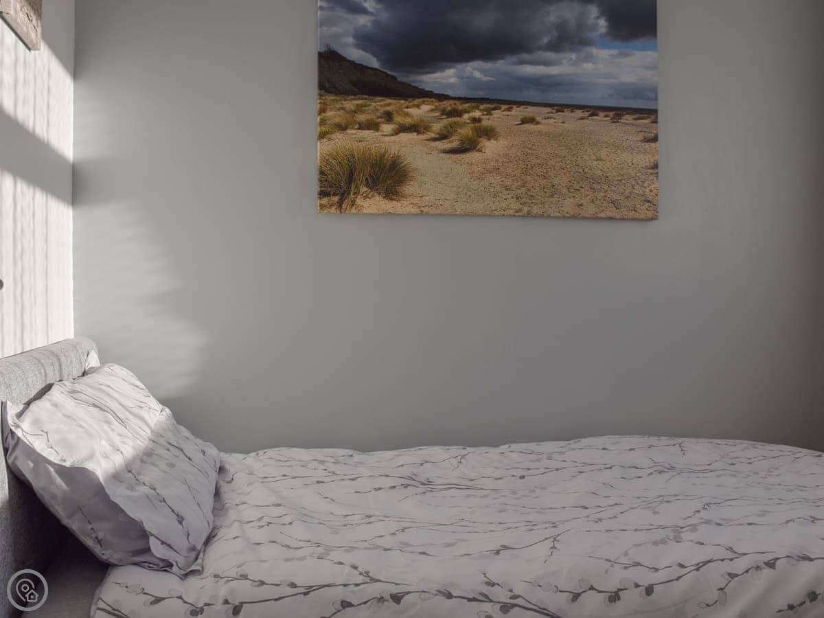 This place is called Beach Walk. It's a chalet-style bungalow in Kessingland, just south of Lowestoft on the Suffolk coast. The main thing is, you're about 400 yards from the beach access. It's a slope down to the sand.