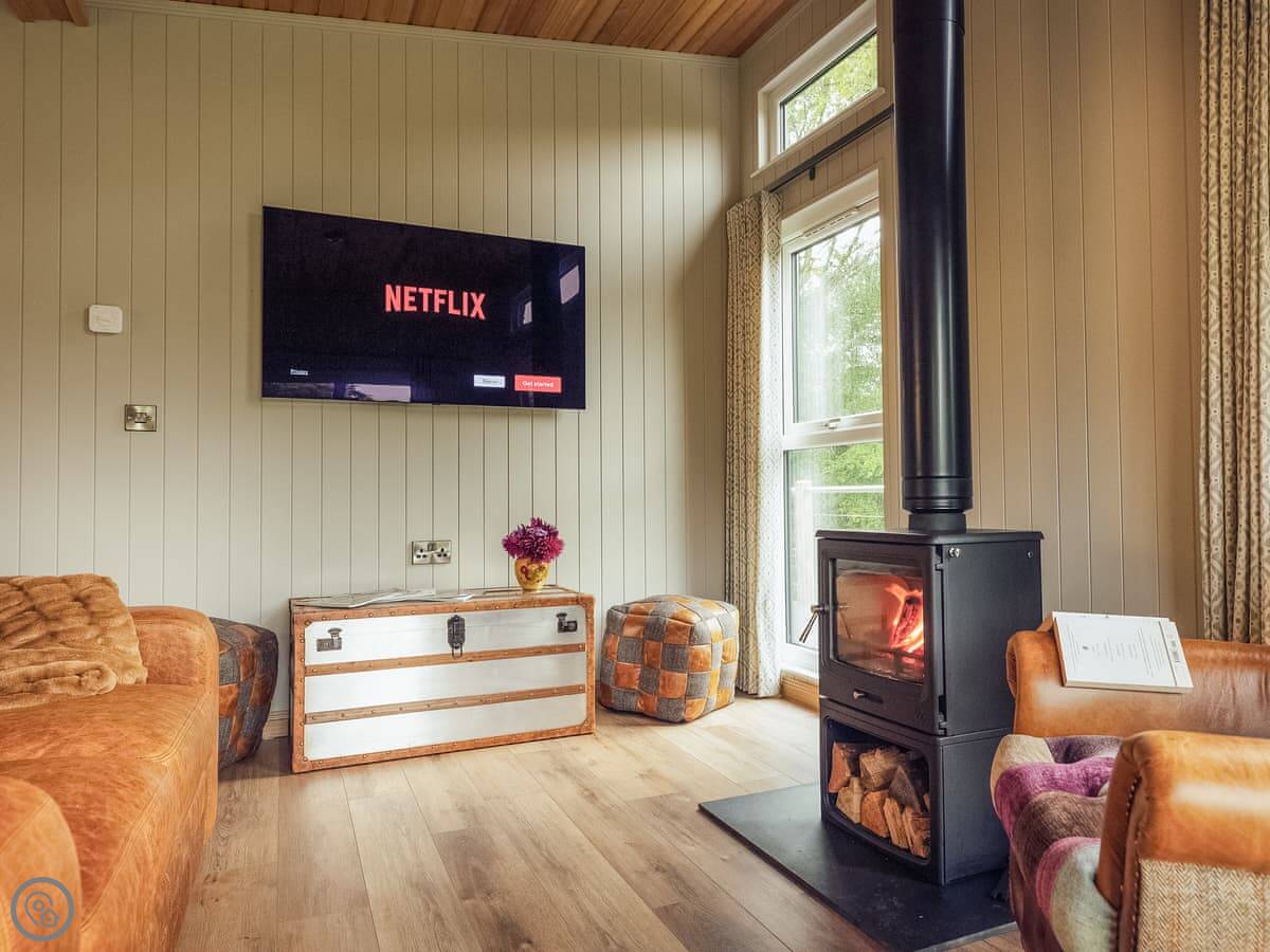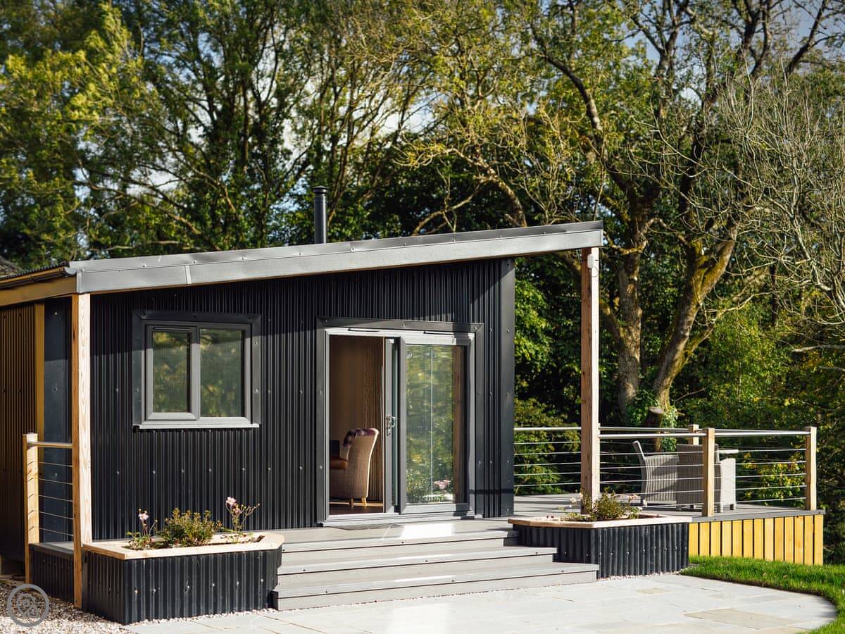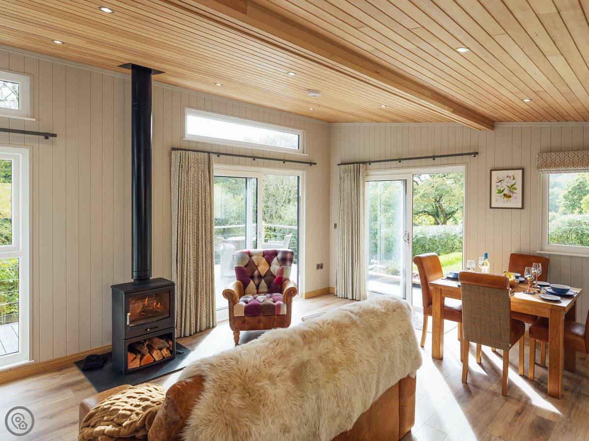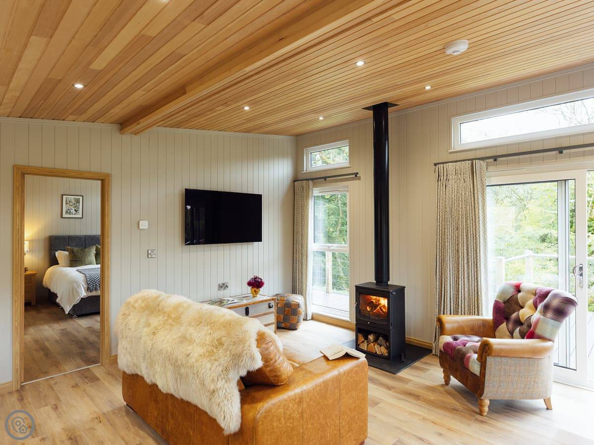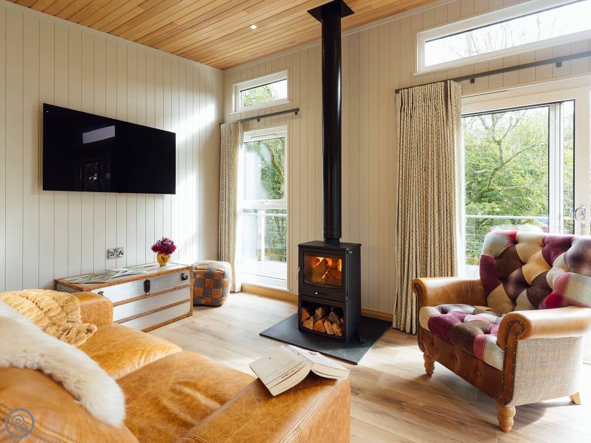 Come and discover the delights of Little Barn and enjoy the ultimate holiday away within the rolling Pembrokeshire countryside. Nestled on the owner’s working farm and on the edge of truly beautiful coastal hamlet at Cresswell Quay, this luxury bespoke lodge was designed by the owners with comfort and quality in mind. This romantic retreat is perfect for couples looking to get away and enjoy some rest and relaxation surrounded by woodland walks and lots of wildlife. Take a stroll down to the scenic Cresswell Quay on the banks of the secret waterway the Cleddau Estuary where you can enjoy a local ale and some home cooked lunch from the restaurant. With all the home from home comforts, including Wi-Fi, flat screen Smart TVs and a sumptuous bedroom, it also has a fully fitted kitchen where you can cook up a storm and enjoy home-cooked meals in Little Barn. Each room enjoys patio doors that lead out to the private raised decking area that wraps around your lodge to make the most of the picture postcard valley views down along the stream. In the evening you can enjoy the cosy wood burner roaring whist enjoying a good movie before retiring to the superbly finished super kingsize bedroom boasting en-suite facilities with a large double walk-in shower.