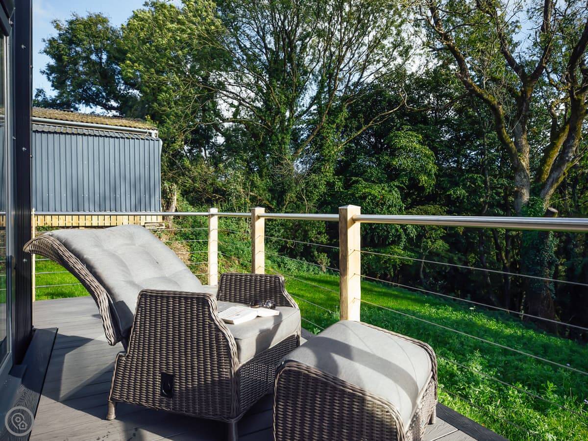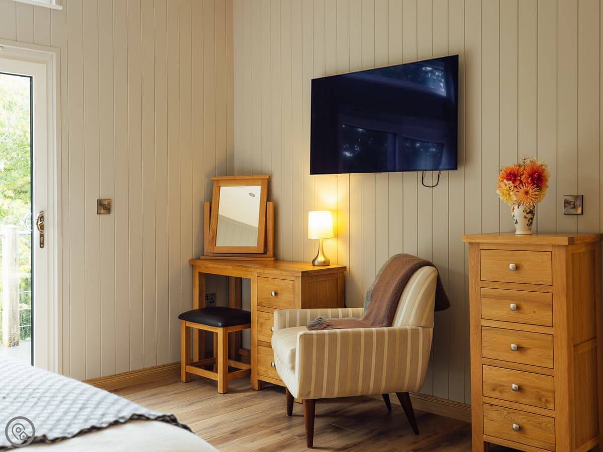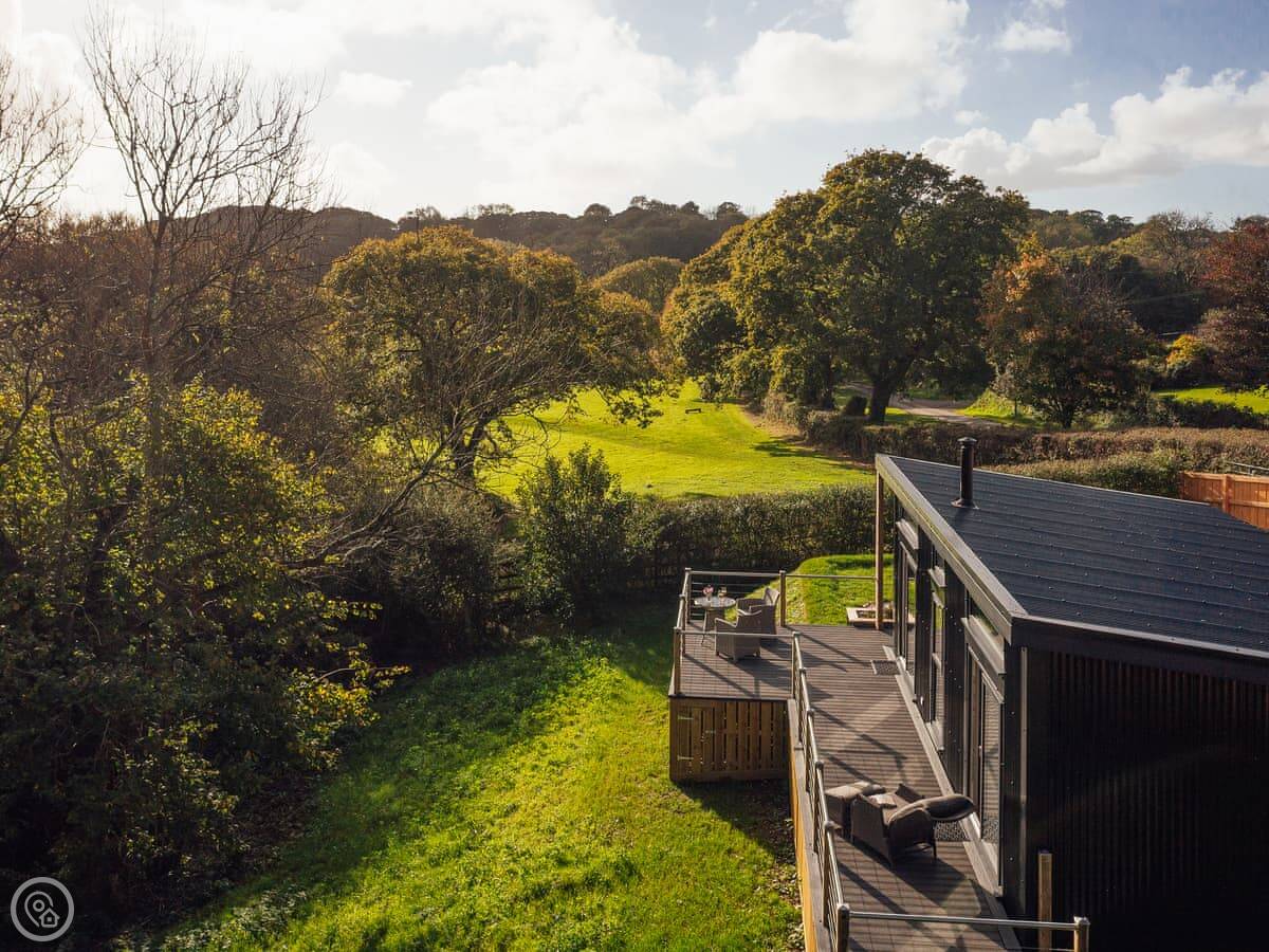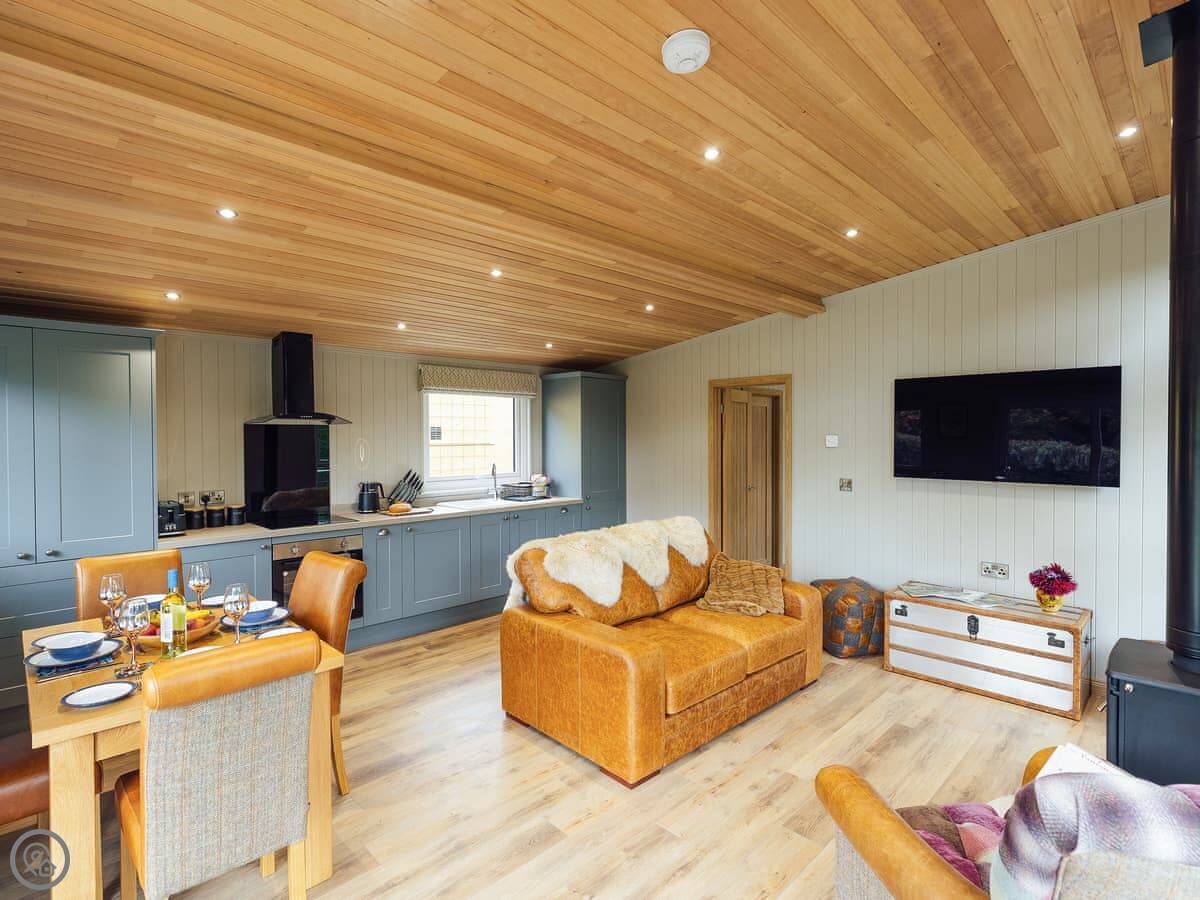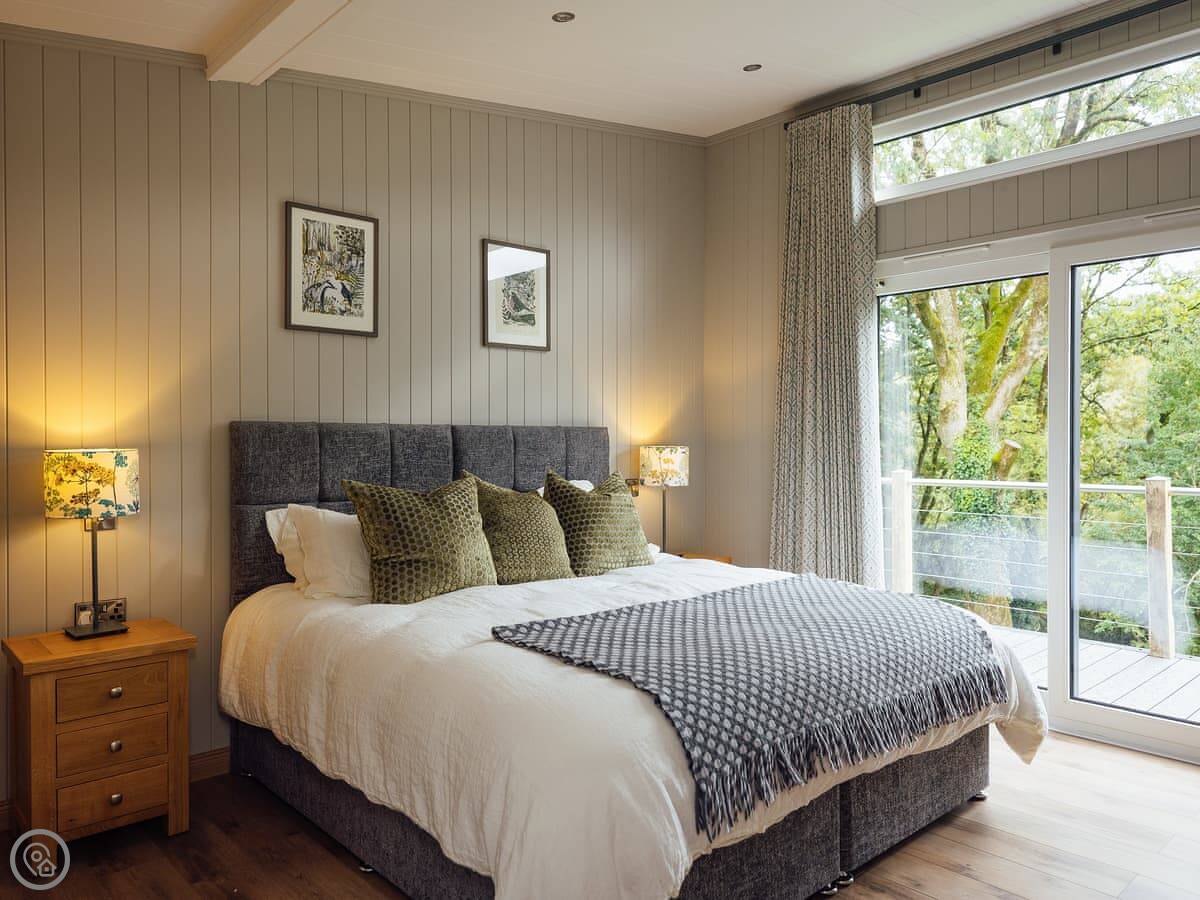 Come and discover the delights of Little Barn and enjoy the ultimate holiday away within the rolling Pembrokeshire countryside. Nestled on the owner’s working farm and on the edge of truly beautiful coastal hamlet at Cresswell Quay, this luxury bespoke lodge was designed by the owners with comfort and quality in mind. This romantic retreat is perfect for couples looking to get away and enjoy some rest and relaxation surrounded by woodland walks and lots of wildlife. Take a stroll down to the scenic Cresswell Quay on the banks of the secret waterway the Cleddau Estuary where you can enjoy a local ale and some home cooked lunch from the restaurant. With all the home from home comforts, including Wi-Fi, flat screen Smart TVs and a sumptuous bedroom, it also has a fully fitted kitchen where you can cook up a storm and enjoy home-cooked meals in Little Barn. Each room enjoys patio doors that lead out to the private raised decking area that wraps around your lodge to make the most of the picture postcard valley views down along the stream. In the evening you can enjoy the cosy wood burner roaring whist enjoying a good movie before retiring to the superbly finished super kingsize bedroom boasting en-suite facilities with a large double walk-in shower.