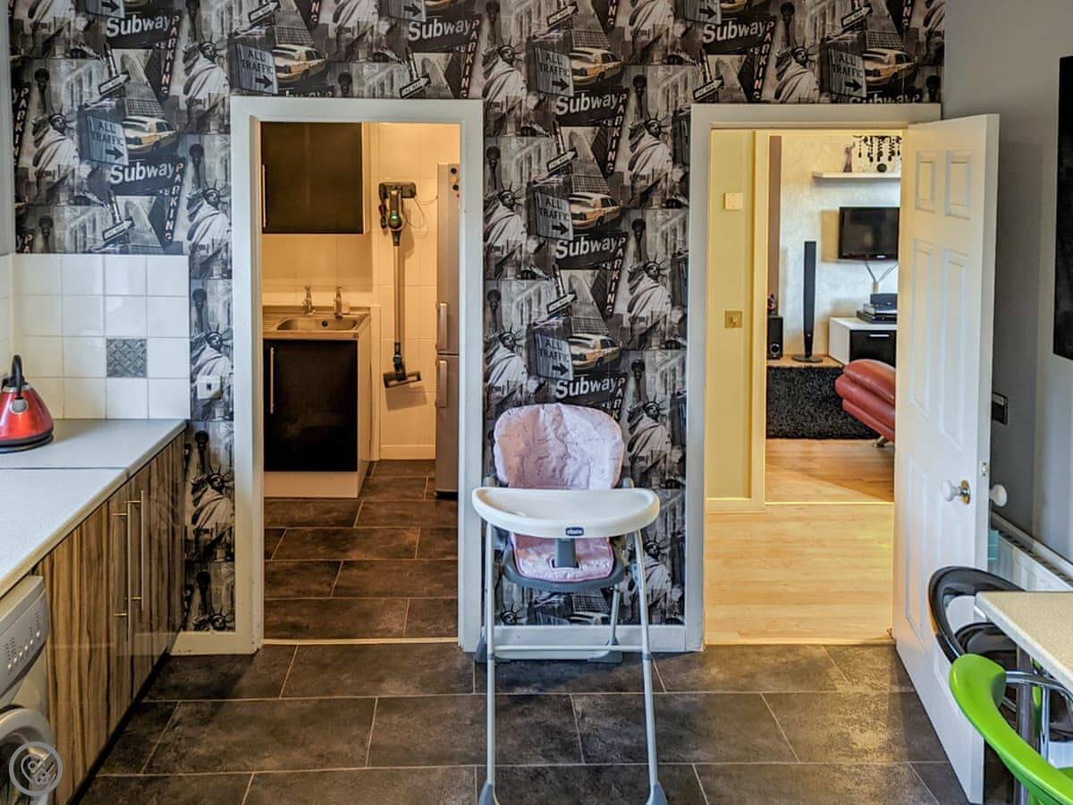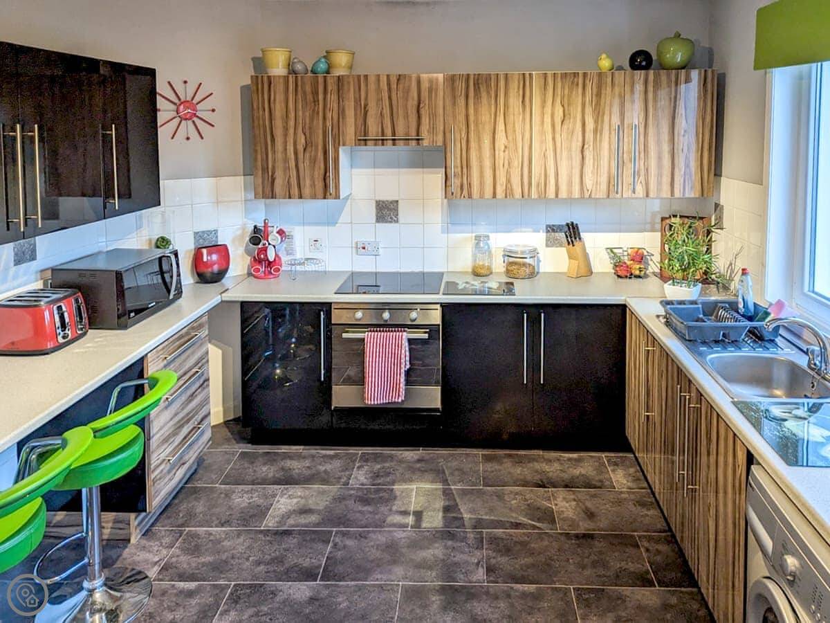 Entering the property, you will be impressed by the size of the rooms, on the ground floor there is the living room with comfy sofas and Smart TV, which is open plan to the dining area with dining table and six chairs. The large family kitchen is modern and fully equipped with breakfast bar and stools and off the kitchen is the utility which has a fridge/freezer, washing machine and tumble dryer.