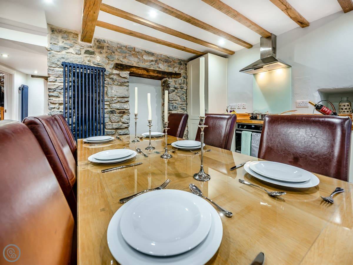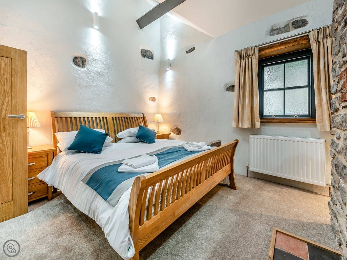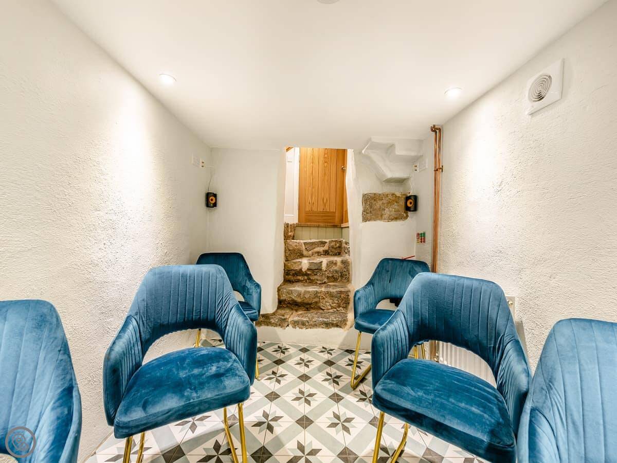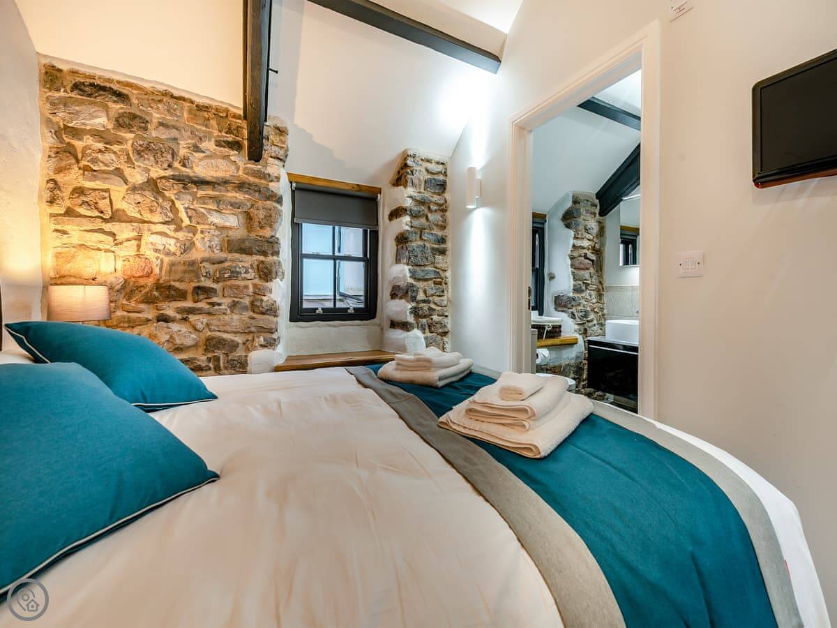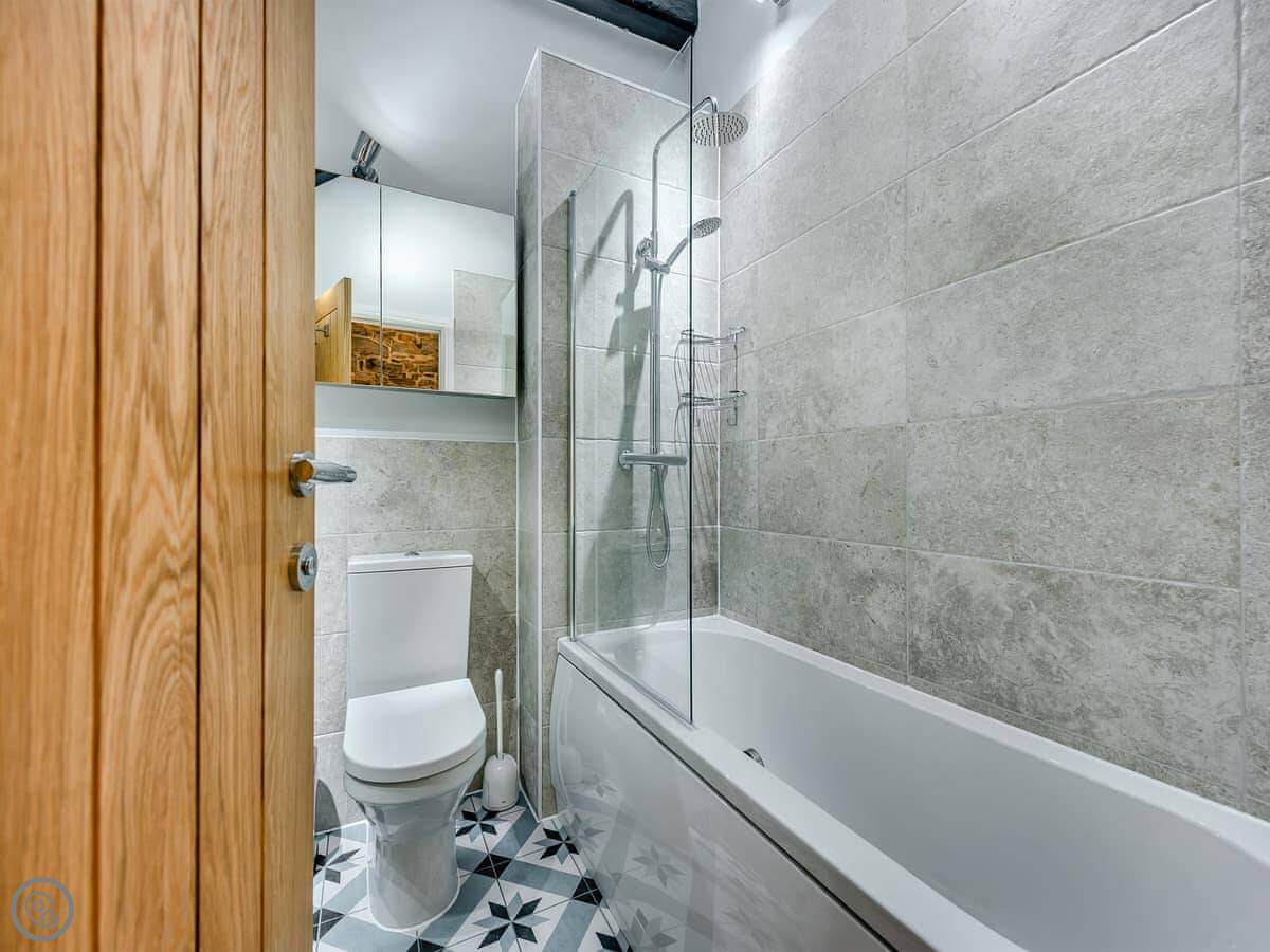 The cottage sleeps six. There are three bedrooms, each with its own bathroom. It's got a 5 Star rating. It's been restored, so it feels quite new inside despite the age. The stairs are steep and narrow. That's just how they are.