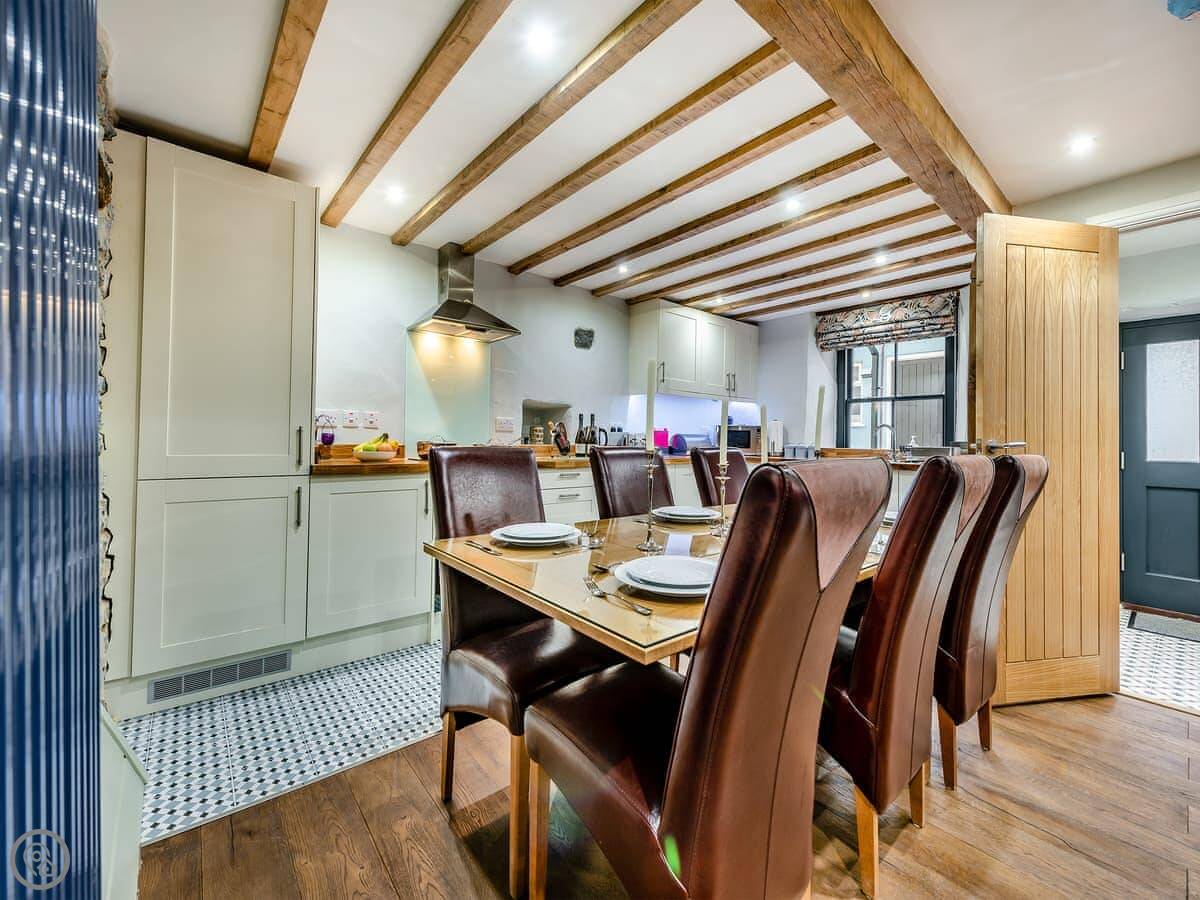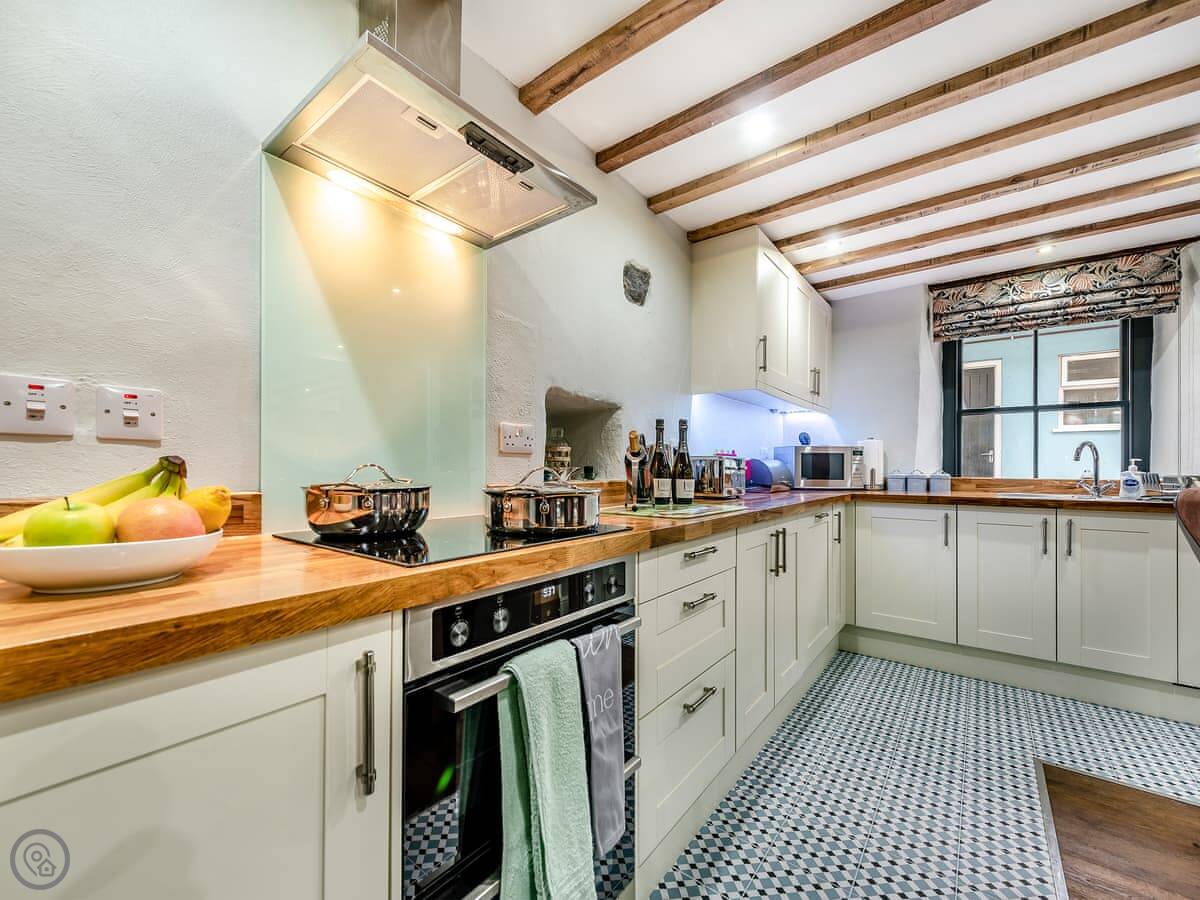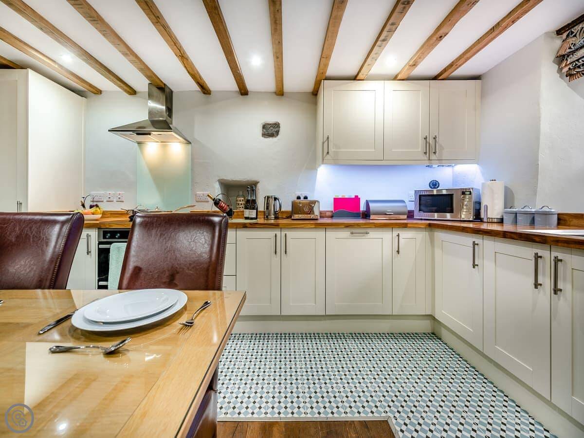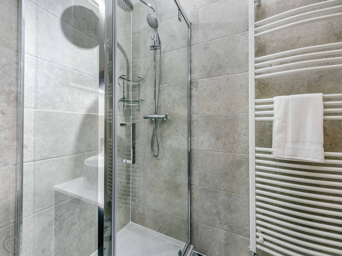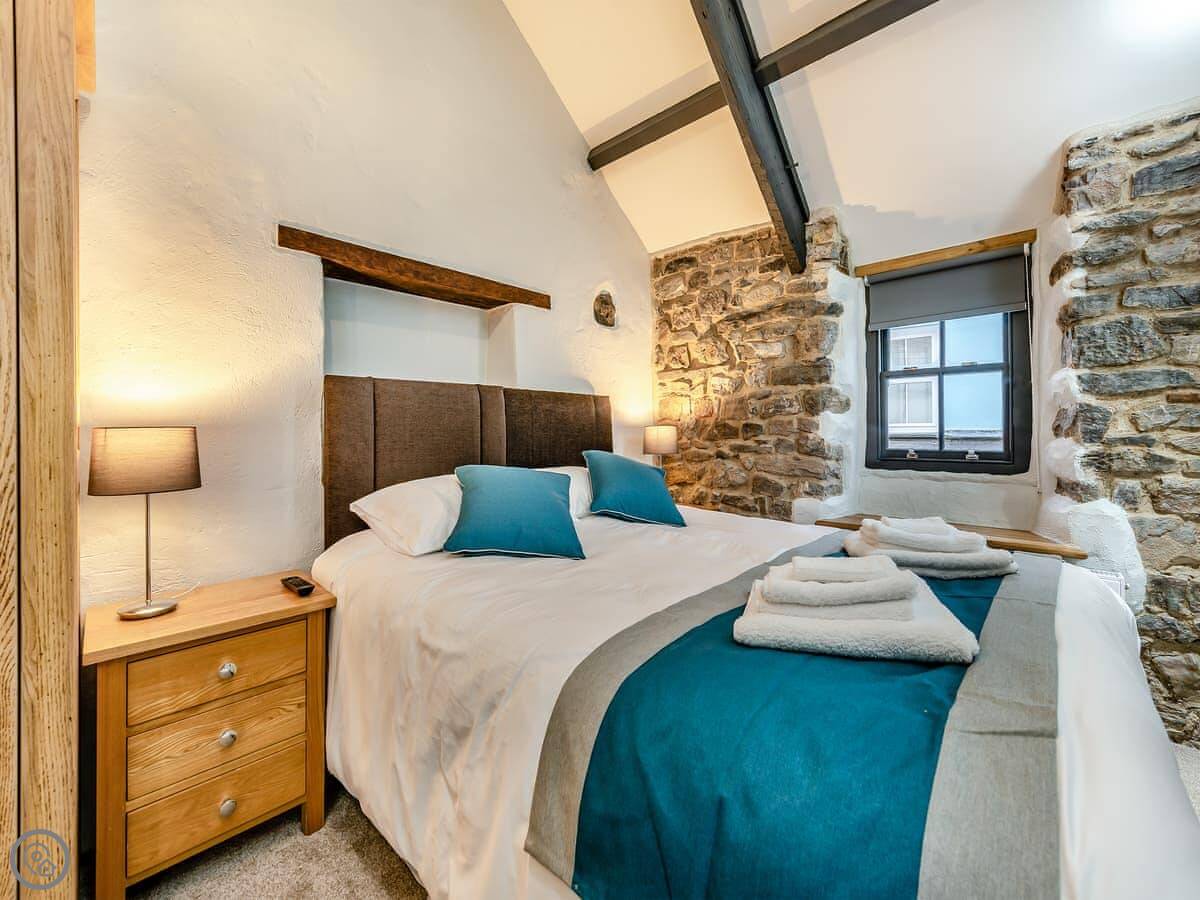 The cottage sleeps six. There are three bedrooms, each with its own bathroom. It's got a 5 Star rating. It's been restored, so it feels quite new inside despite the age. The stairs are steep and narrow. That's just how they are.