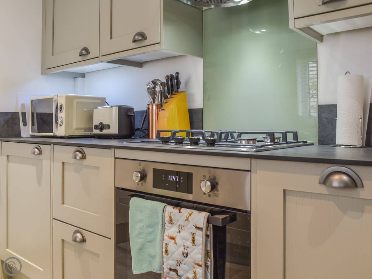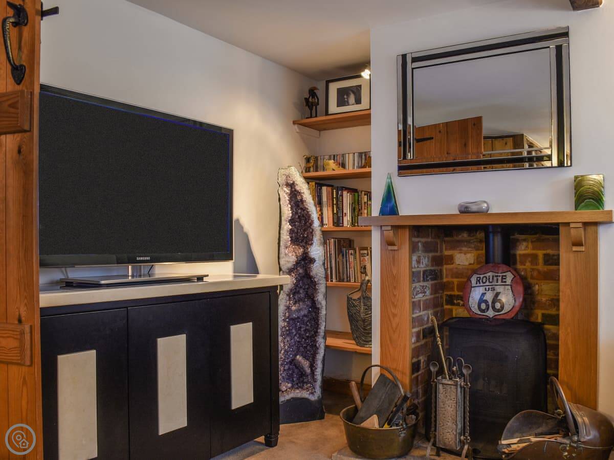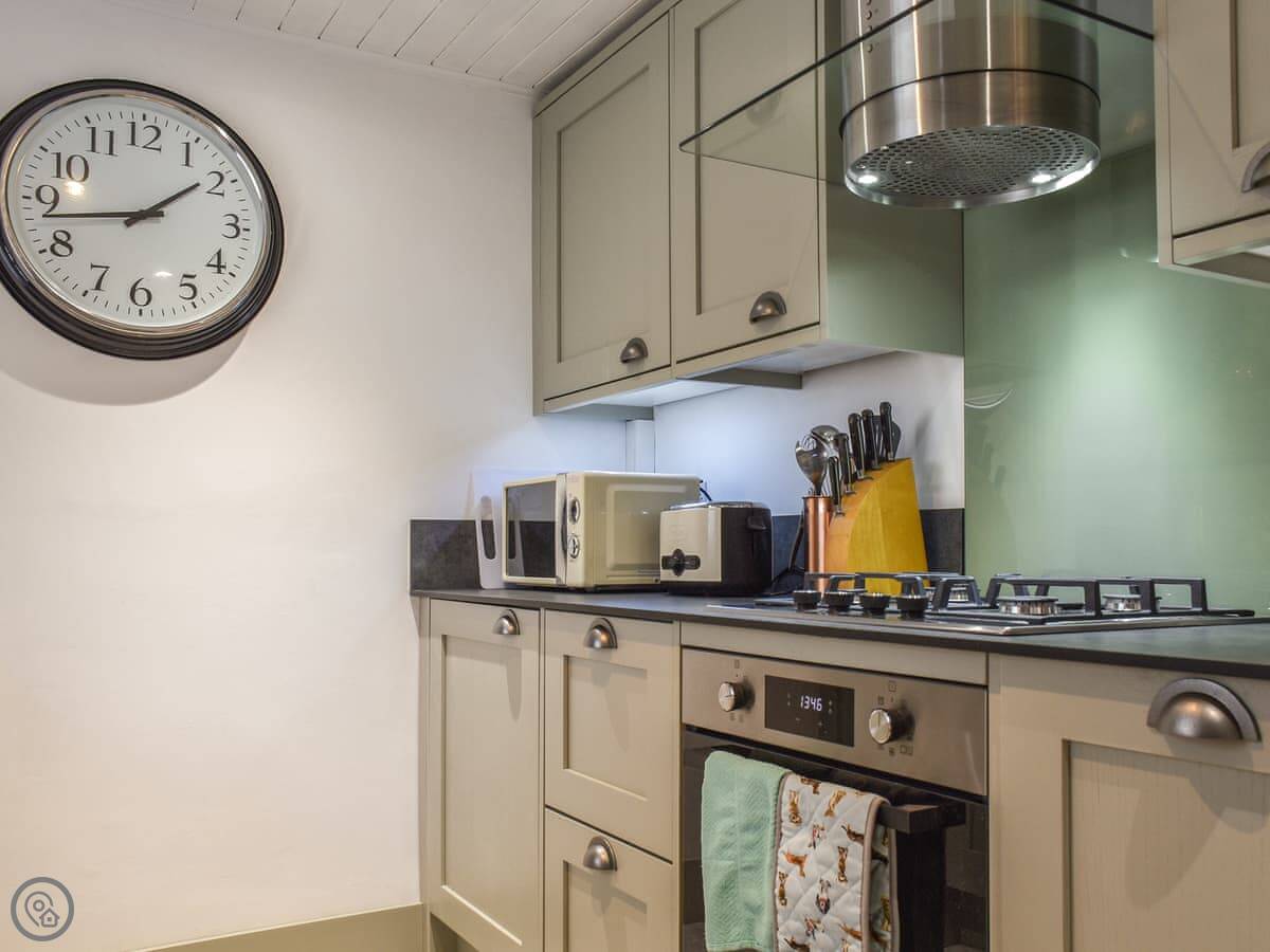 There's a wood burner in the living room. The kitchen and bathroom are modern. You get a patio at the back for sitting out, and a porch at the front.