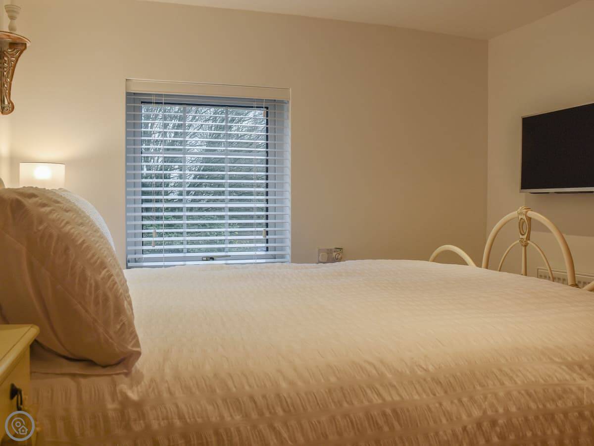 Facilities included are a washing machine, dishwasher, TV, and WiFi. Bedding and towels are provided. There's parking on site. One well-behaved dog is allowed.
