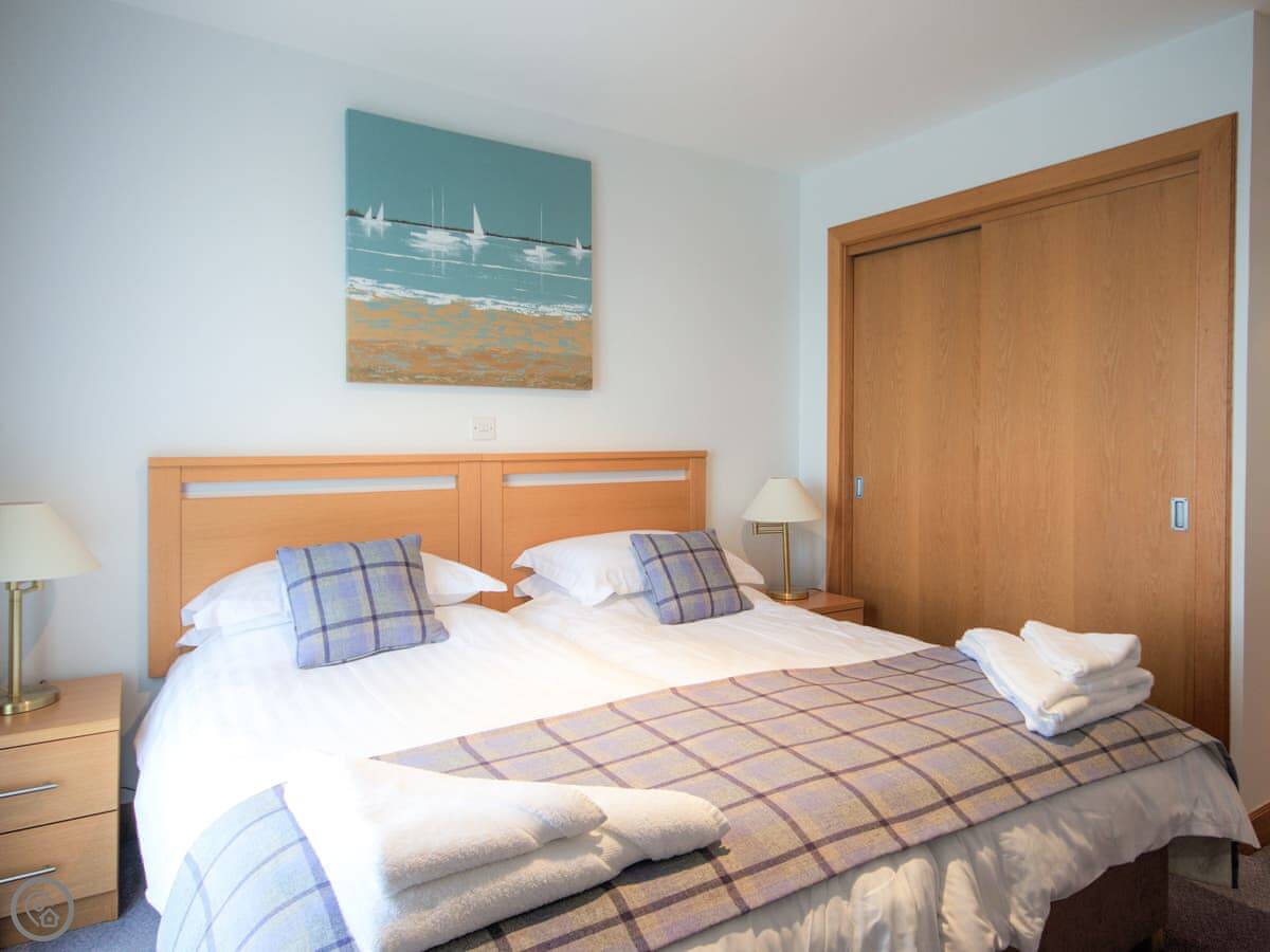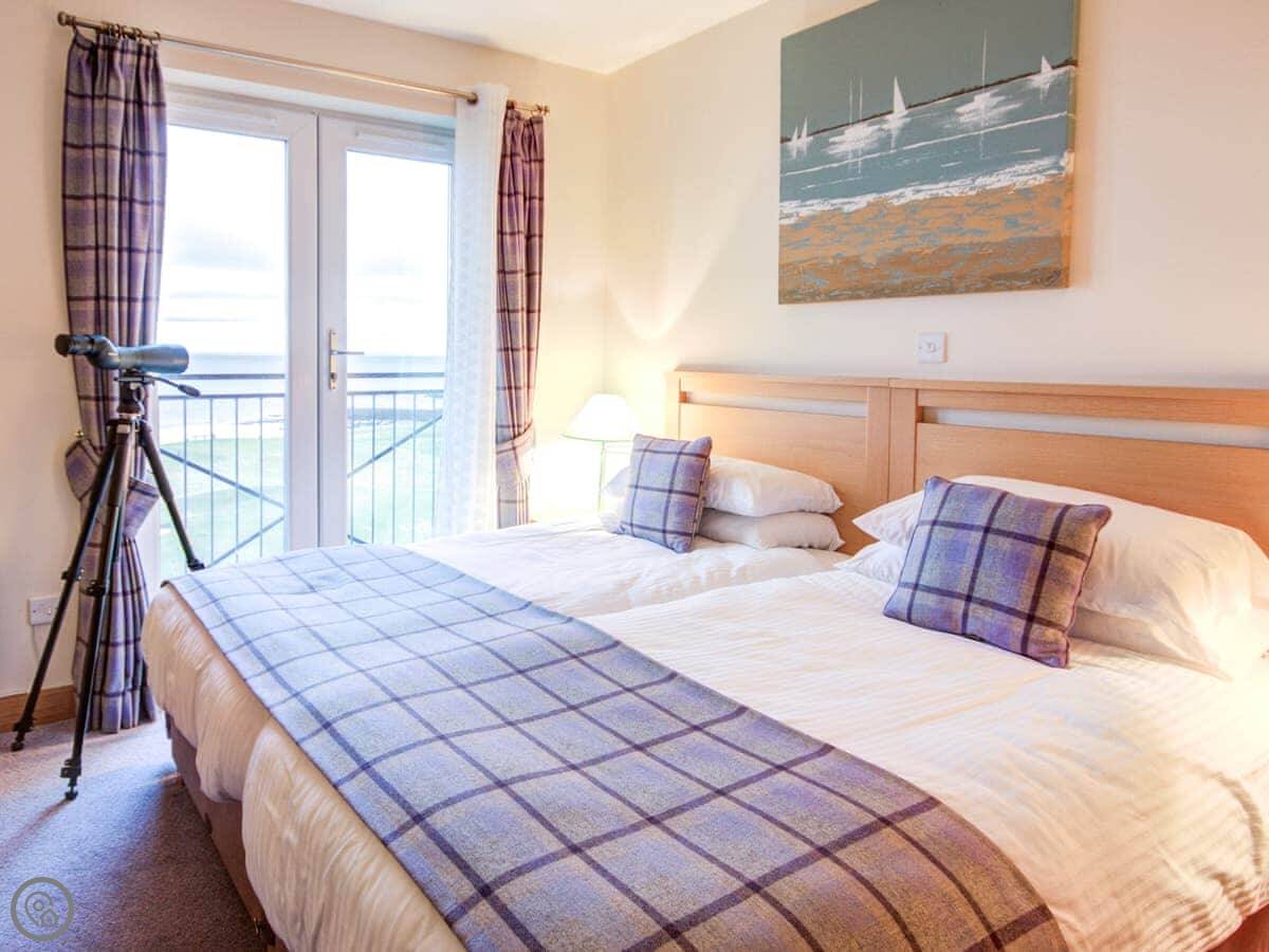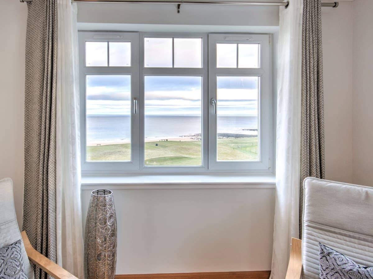This two-bedroom second-floor property boasts an open plan kitchen/living/dining room with ample space to relax in. Each bedroom has two single beds and an en-suite, perfect for a golfing getaway. The two Juliet windows allow you to feel the full effects of the fresh Highland air while enjoying the view of the 1st and 18th hole.