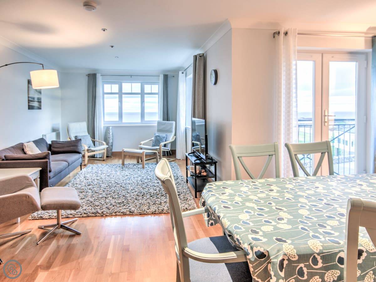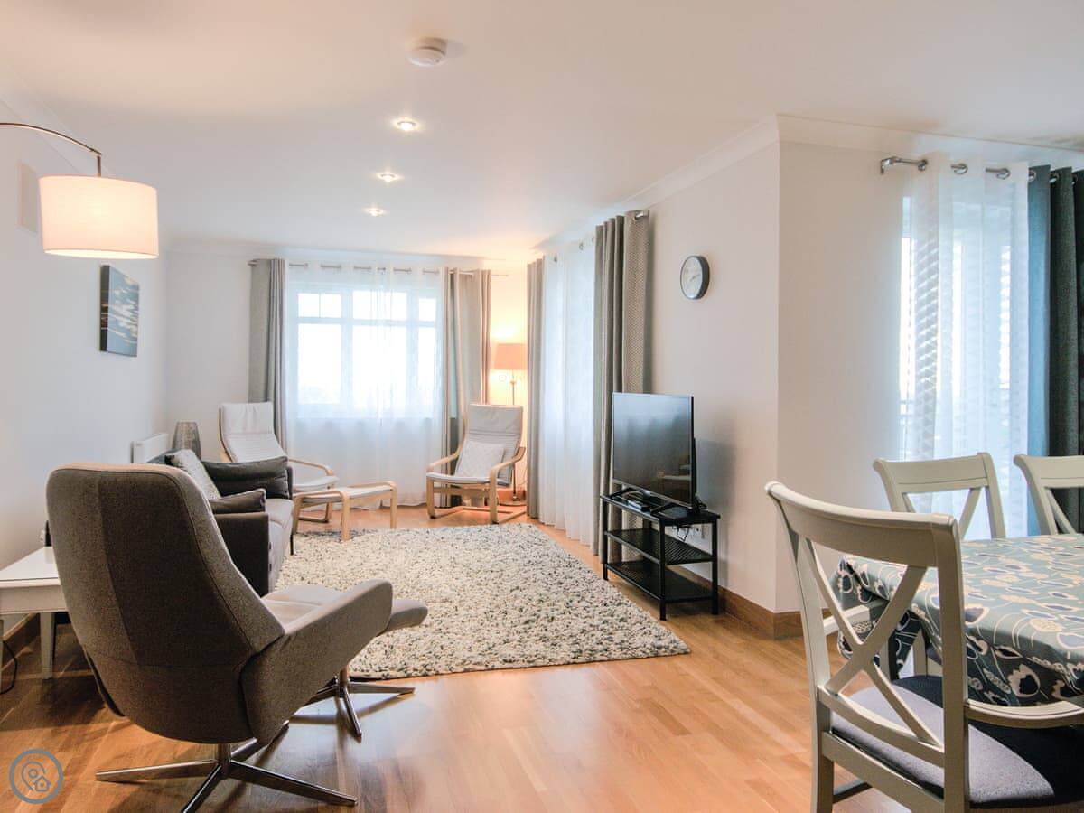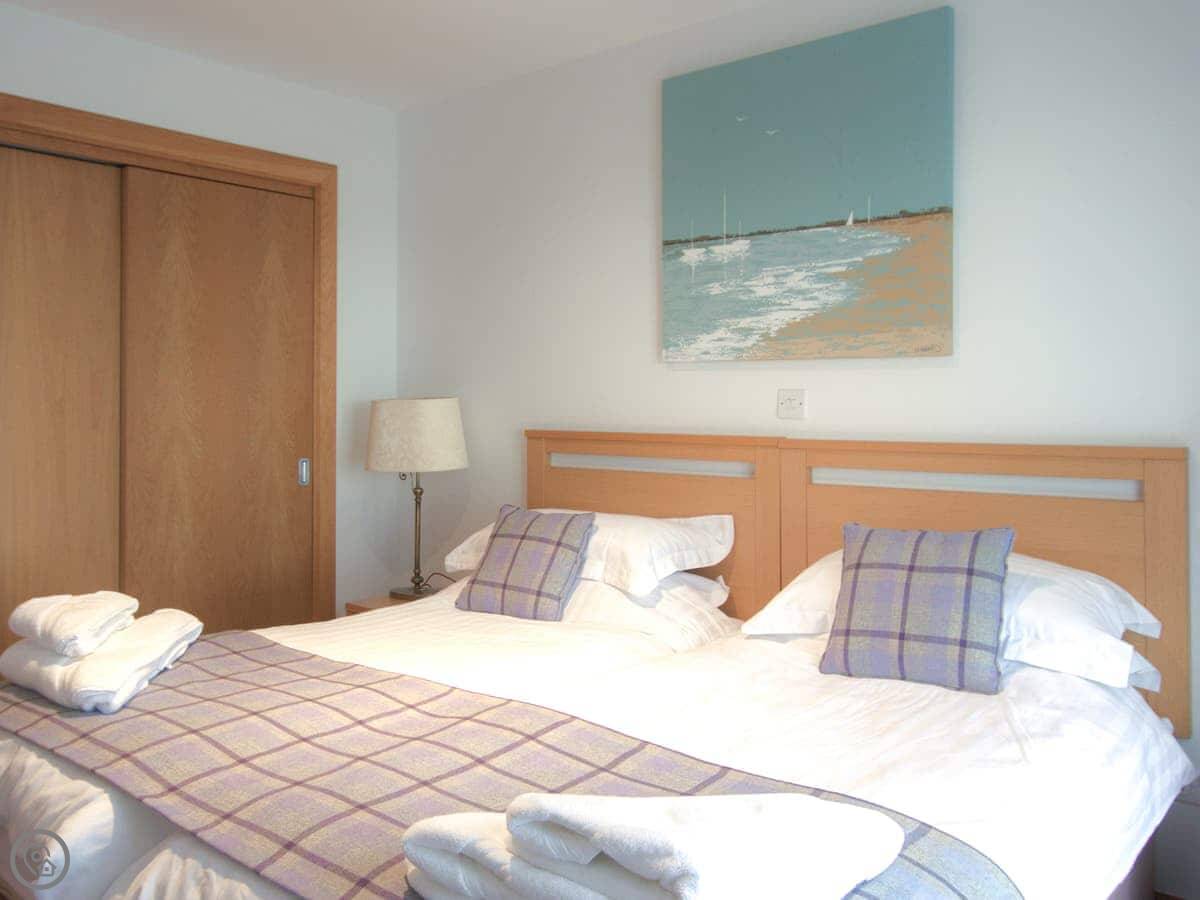 This two-bedroom second-floor property boasts an open plan kitchen/living/dining room with ample space to relax in. Each bedroom has two single beds and an en-suite, perfect for a golfing getaway. The two Juliet windows allow you to feel the full effects of the fresh Highland air while enjoying the view of the 1st and 18th hole.