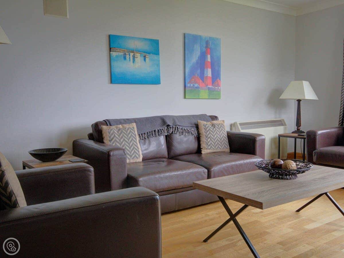 The apartment has two double bedrooms each with an en-suite and an open-plan living/dining/kitchen area ideal for socialising. Patio doors open from the main lounge and one of the bedrooms onto a communal garden over-looking the golf links and the gorgeous Brora beach making it the perfect for your morning coffee while watching the golfers tee off from the first hole.