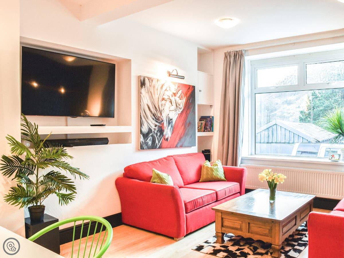 This traditional stone, terraced cottage provides modern accommodation for families or friends to enjoy an adventurous break in the Afan Valley. The open plan living/dining room is set up with a comfortable seating area as well as a dining table and chairs. The bathroom is unique, with a bespoke-tiled tub with shower over making a great place to freshen up and soak those muscles after a day on the trails. Upstairs are three bedrooms that can sleep up to six guests. The master bedroom has a comfortable kingsize bed, the second bedroom has a double bed with single bunk over, and the third bedroom has one more single bed.