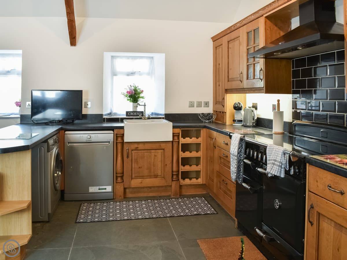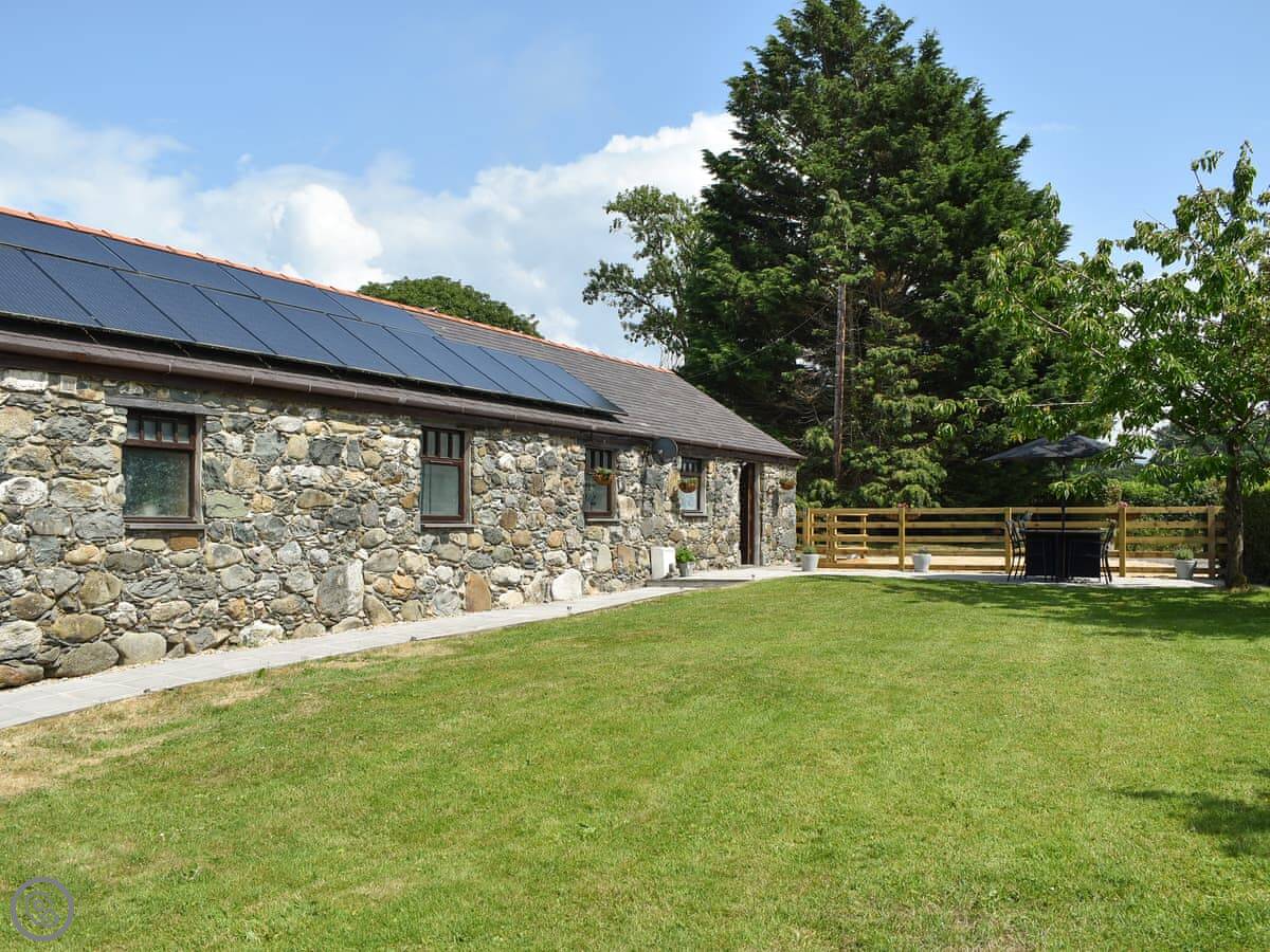 Bryn Derw is in Bethesda Bach, just outside Caernarfon. It's a detached barn conversion. The views are good, over the fields towards Snowdonia.