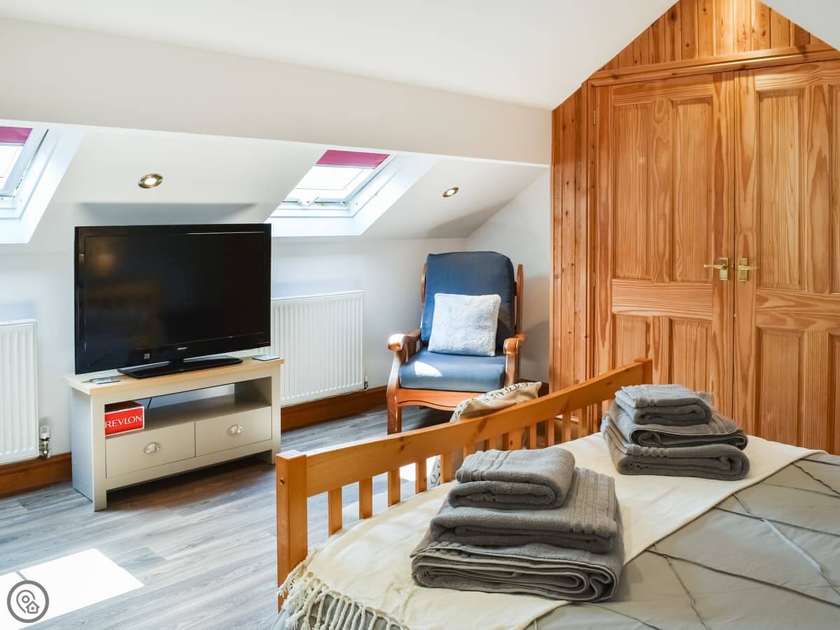 Facilities wise: it has a washing machine and a dishwasher. WiFi works. Bedding and towels are included. There’s parking for two cars. A cot and highchair are here if you need them.