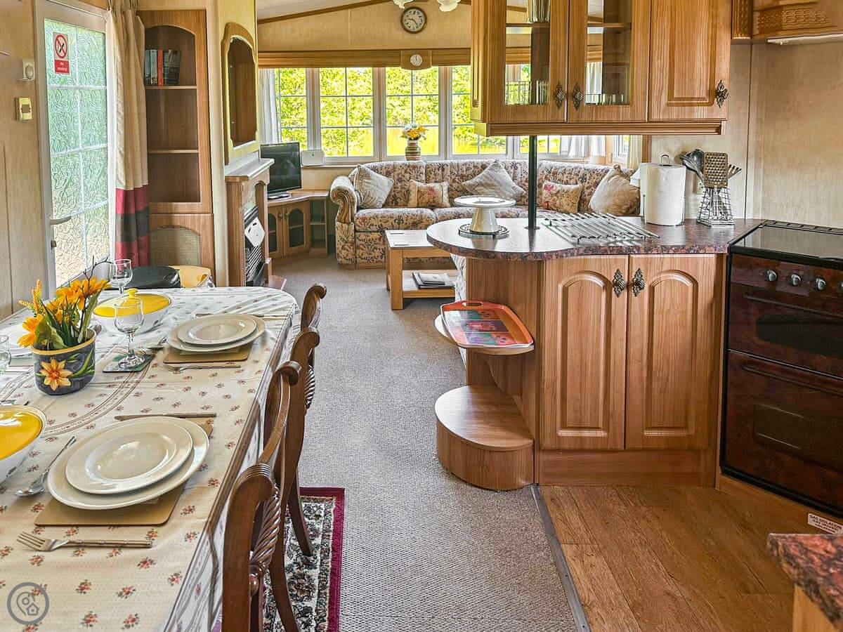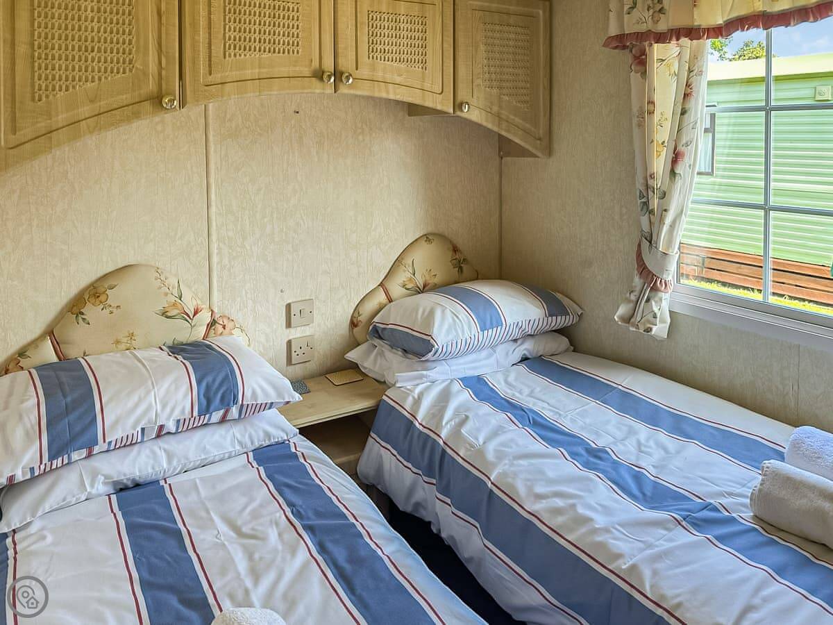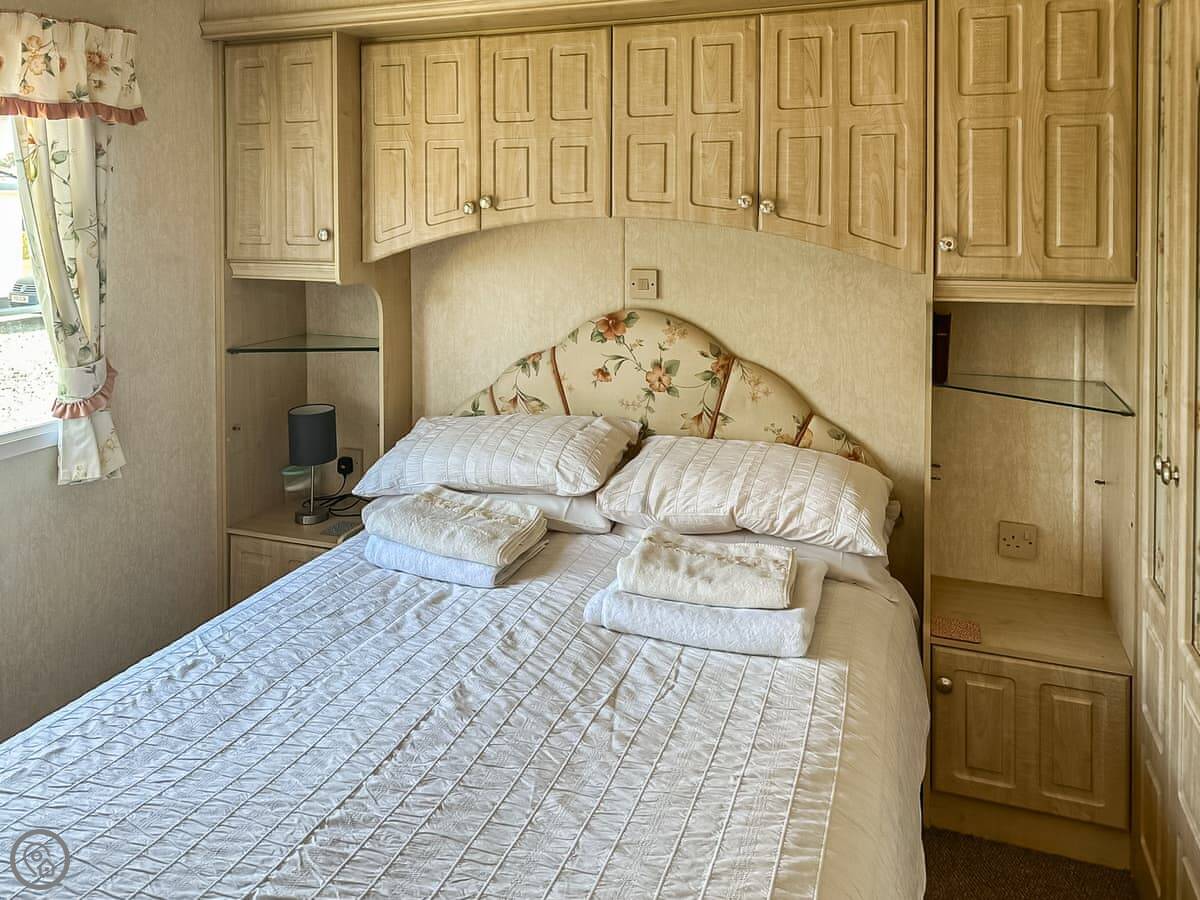It sleeps four. You get a double bedroom and a twin, and one bathroom. Everything's open plan. It's a 4 Star caravan, which means it's comfortable and well looked after. It's clean and warm, nothing too fancy.