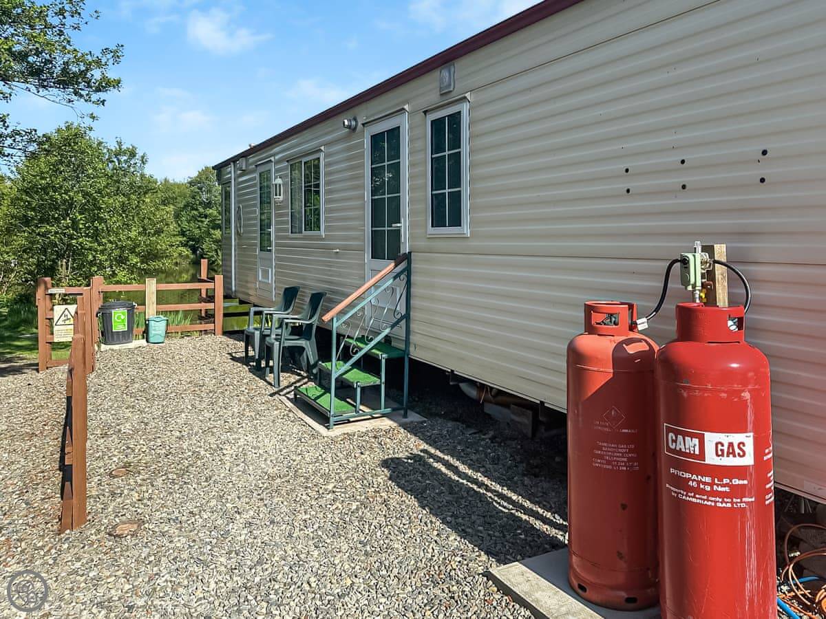 Caravan Two is a static caravan on our land near Oakford. It's detached, so you're not right next to anyone else. There's a lawned area at the front that looks out over one of the fishing lakes.