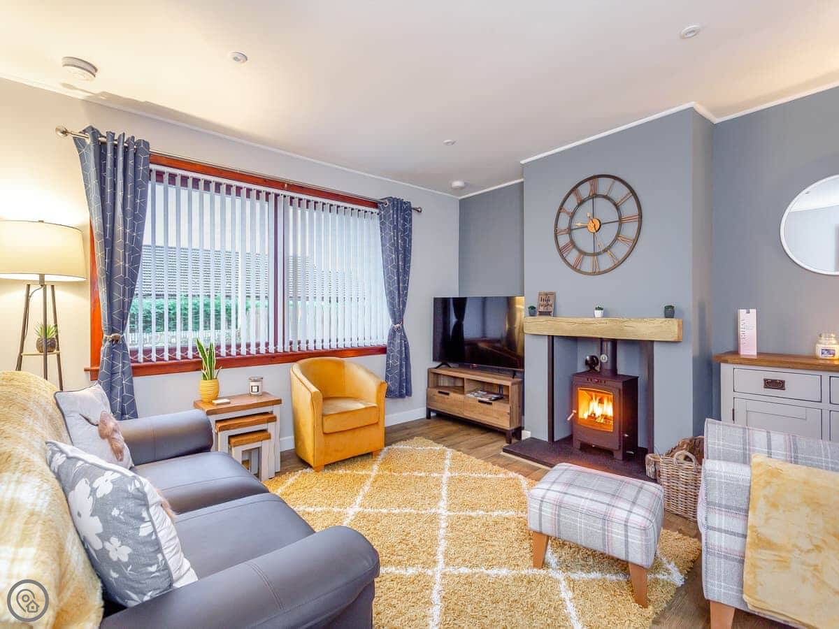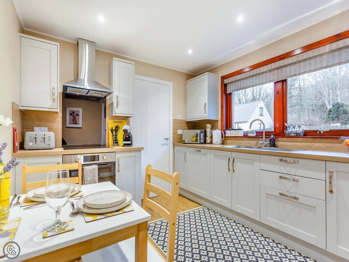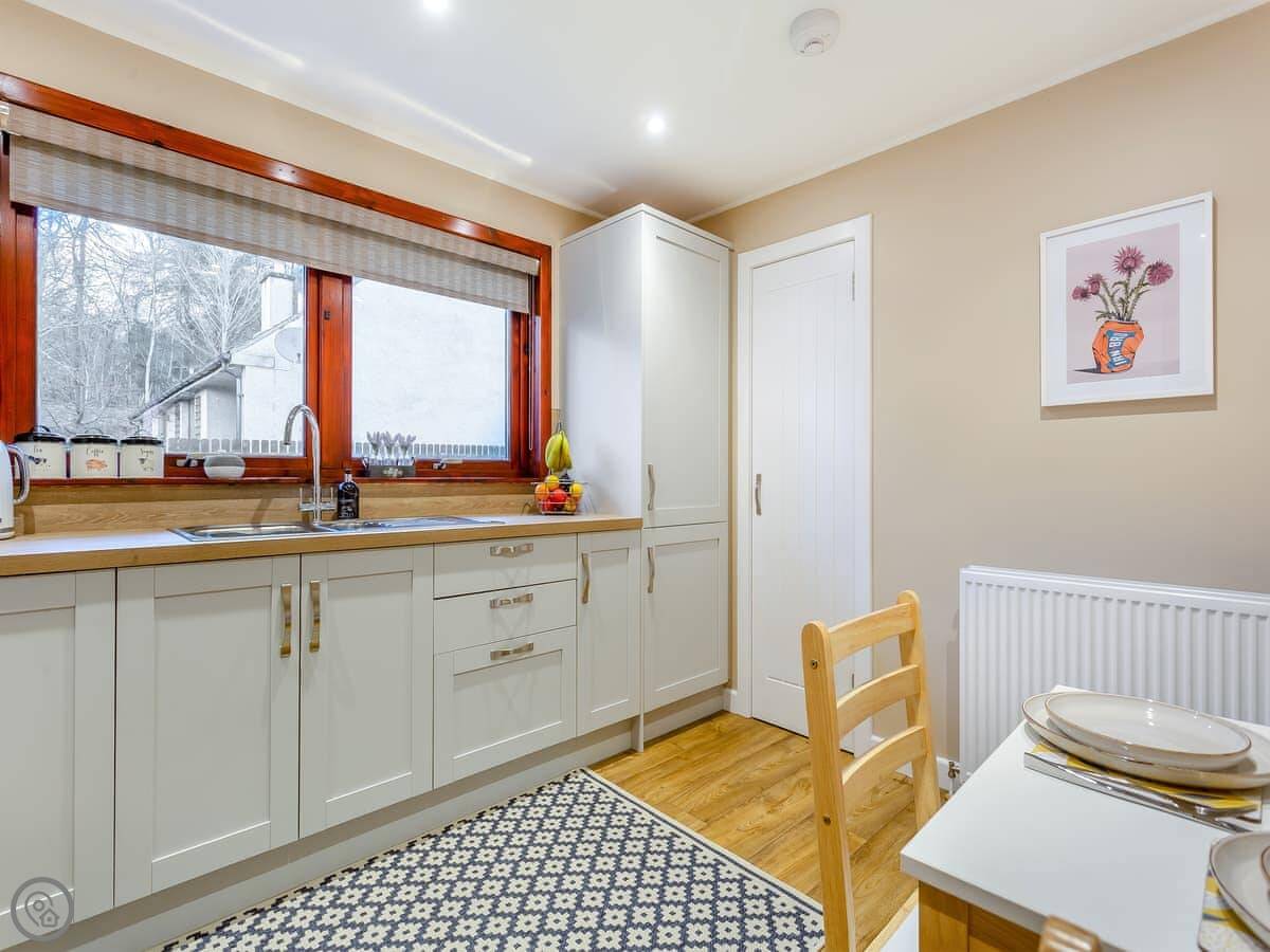 The property has been lovingly renovated throughout, with a cosy living room off the hall with comfy sofa and chairs, Smart TV and wood burner for cosy nights in after exploring the area. There is a fully equipped kitchen to the rear and a breakfast area with table and four chairs. The utility room offers a washing machine and tumble dryer with a door to the rear garden. There are two double bedrooms, one with double bed, bedside cabinets, lamps, chest of drawers and dressing table. The second is a twin with bedside tables, lamps and wardrobe. The shower room has a double walk in shower. The front garden is set to lawn with a picket fence. The enclosed rear garden is set to lawn with a log cabin and gazebo with table and chairs for al fresco dining. Parkhill Cottage will not disappoint it has everything you require for a holiday in the Highlands of Scotland.
