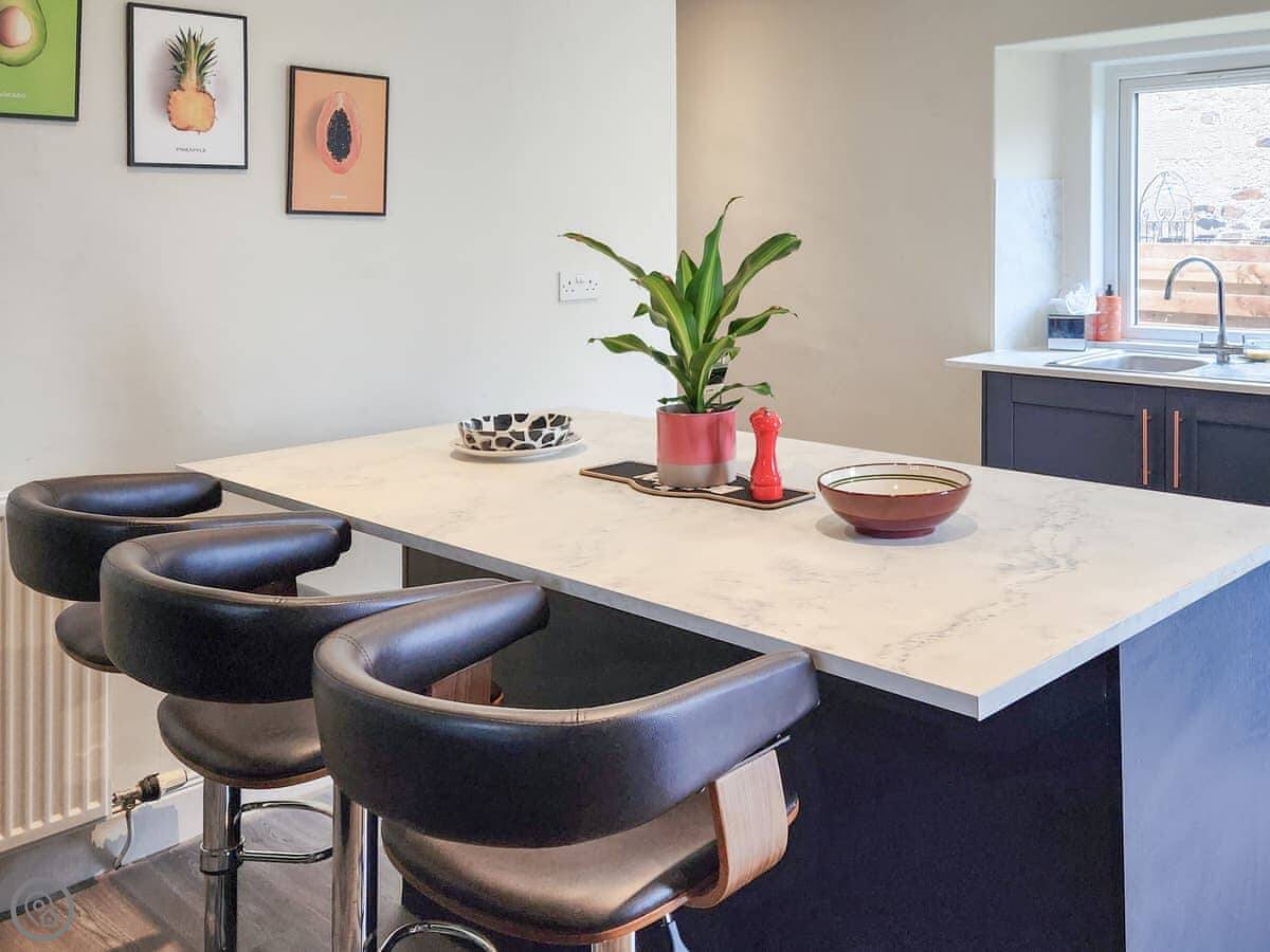Ideally suited for either three couples, a small group of friends or small family, the three bedrooms are all fitted as doubles. One is downstairs, while the other two are upstairs where guests will enjoy the beautiful four-piece bathroom. The open plan living space on the ground floor has a wood burner, which after a day exploring the stunning surroundings, will be a welcome experience to your stay. Meals can be prepared and enjoyed, however it’s likely you’ll be out and about enjoying the local pubs, cafés and restaurants, given they’re not far away enough not to take advantage of. Adjoining the cottage is a private, spacious garden with decking and barbecue area, perfect for relaxing with a beer, glass of wine or even a cocktail in the evening watching the children or dogs playing around.
