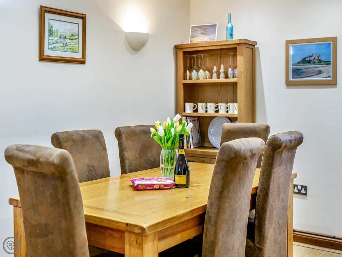 Converted in the 1990s from farm buildings, Puffin Cottage is well equipped offering modern facilities and appliances. Approximately 550 yards from the property is beautiful Budle Bay and beach with views across to Lindisfarne Priory on Holy Island with Bamburgh village and its castle just a mile away. The cottage is ideally placed for lovers of the sea, vast sandy beaches, castles, wildlife and the countryside. Puffin Cottage offers a homely and relaxing retreat in this beautiful location. The ground floor offers a generous entrance hall and cloakroom leading into a spacious open plan space comprising dining area, kitchen and comfortable living room with electric fire. Oak stairs lead up to the first floor from this room. The living area is a square sociable space with two comfortable Italian leather sofas and separate armchair and access to Netflix. Books and games are also available for guest use, lots of local information for days out and local restaurants is provided. Upstairs there is a spacious master bedroom with a kingsize bed. The second bedroom has a kingsize bed. A large, bright second bedroom offers versatile sleeping choices for up to four people with twin beds and super kingsize bed which can be made into twin beds. A modern upstairs bathroom offers a generous shower, wash basin and toilet. To the front of the property is a private gated garden and patio with table and chairs and charcoal barbecue available for the guests use. The garden is a sheltered sun trap and is perfect for games or relaxing on a blanket with a good book. There is also a padlocked shed suitable for bike storage or other sporting equipment.