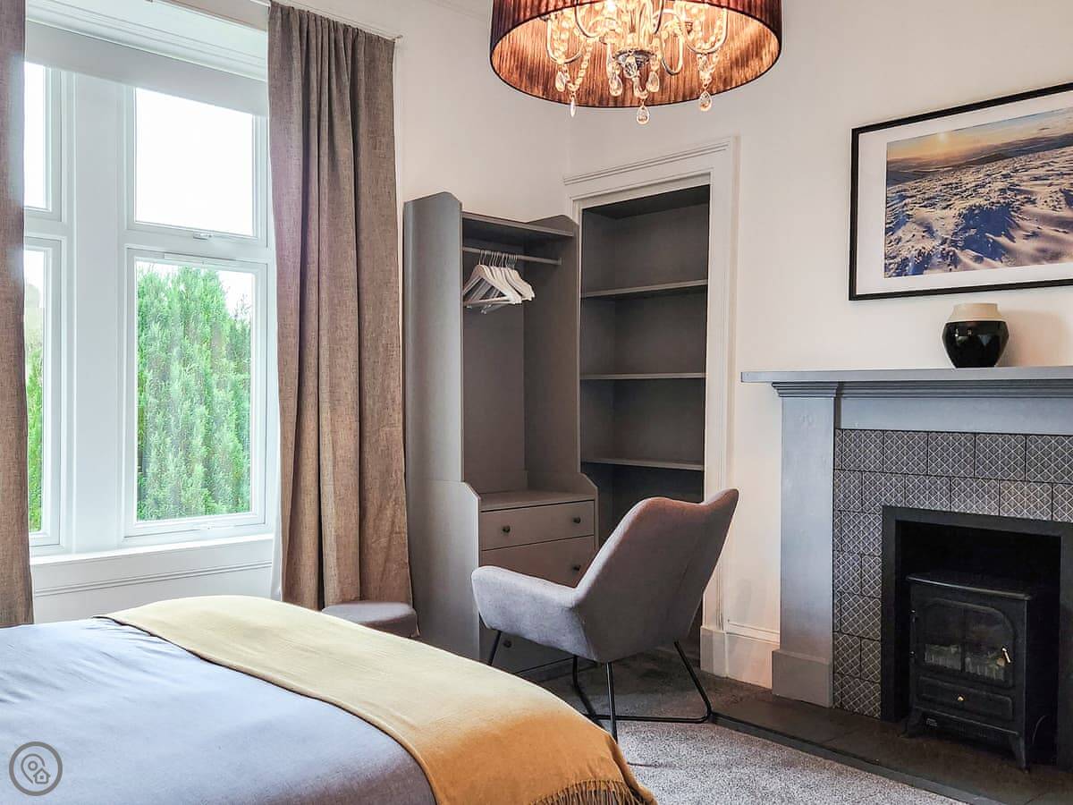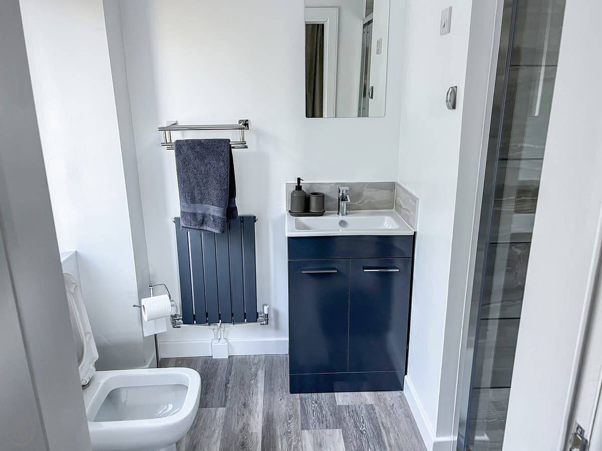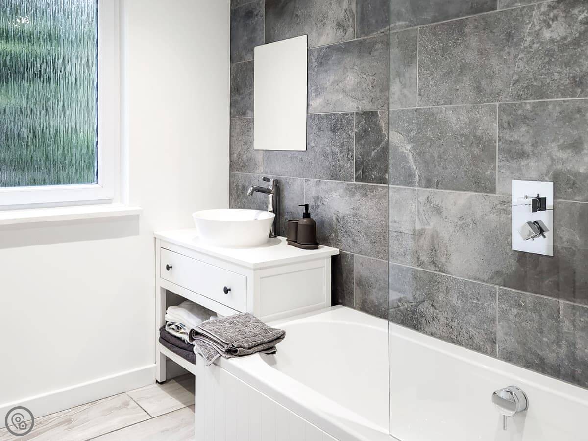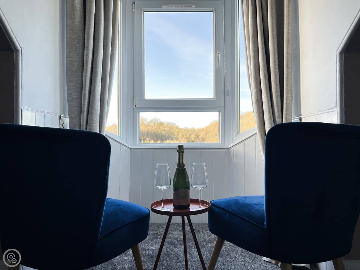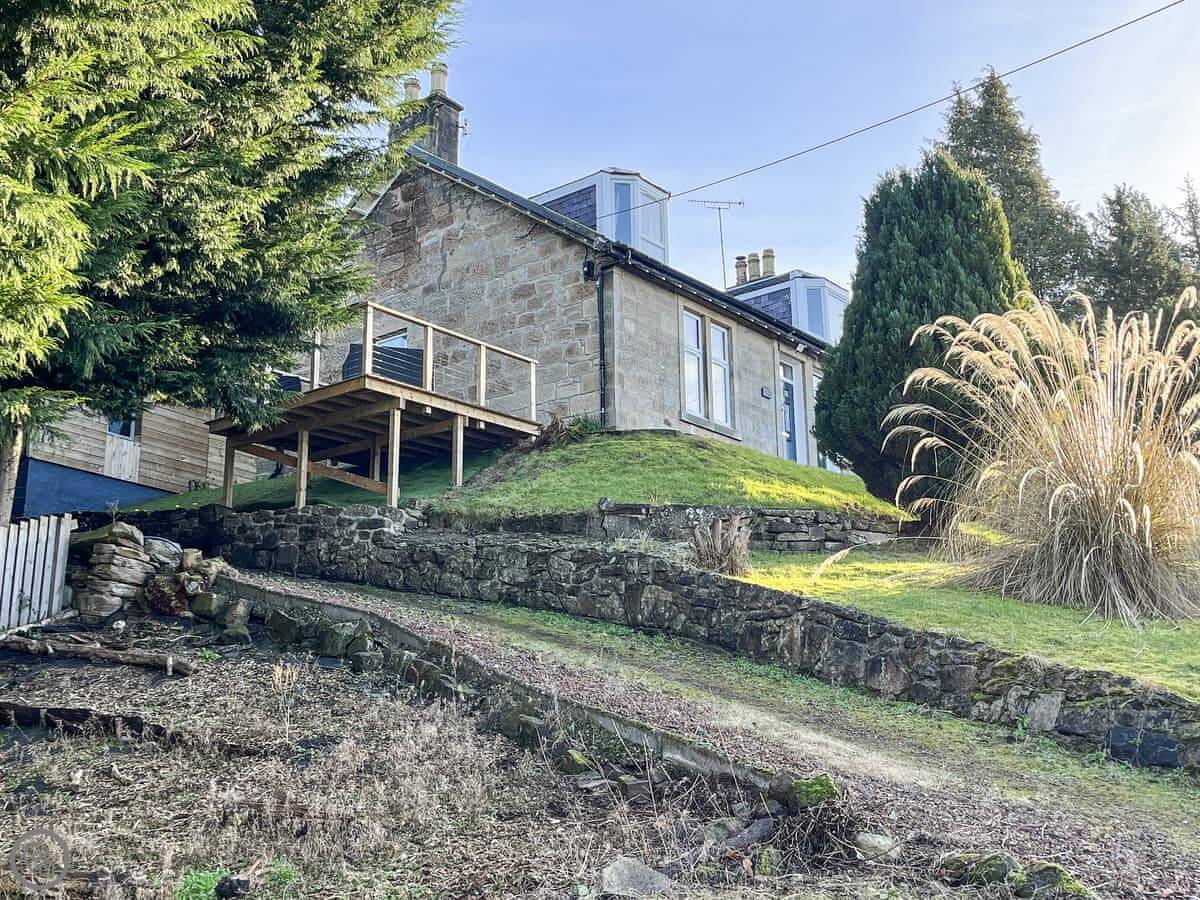 Riverside Cottage is on a hill above the Avon Water river in Larkhall. It's a detached house. Sleeps six, with three bedrooms and two bathrooms. One bedroom and its en-suite shower are on the ground floor. The other two bedrooms are upstairs and share the main bathroom.