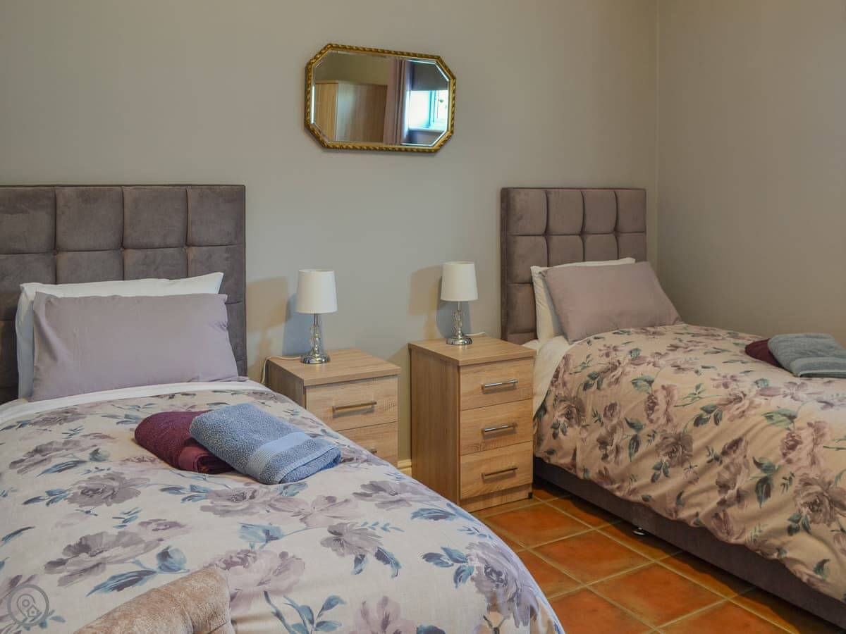 It looks out over one of our two fishing lakes. You’re welcome to fish in them. There’s also a shared indoor heated swimming pool on the site that you can use.