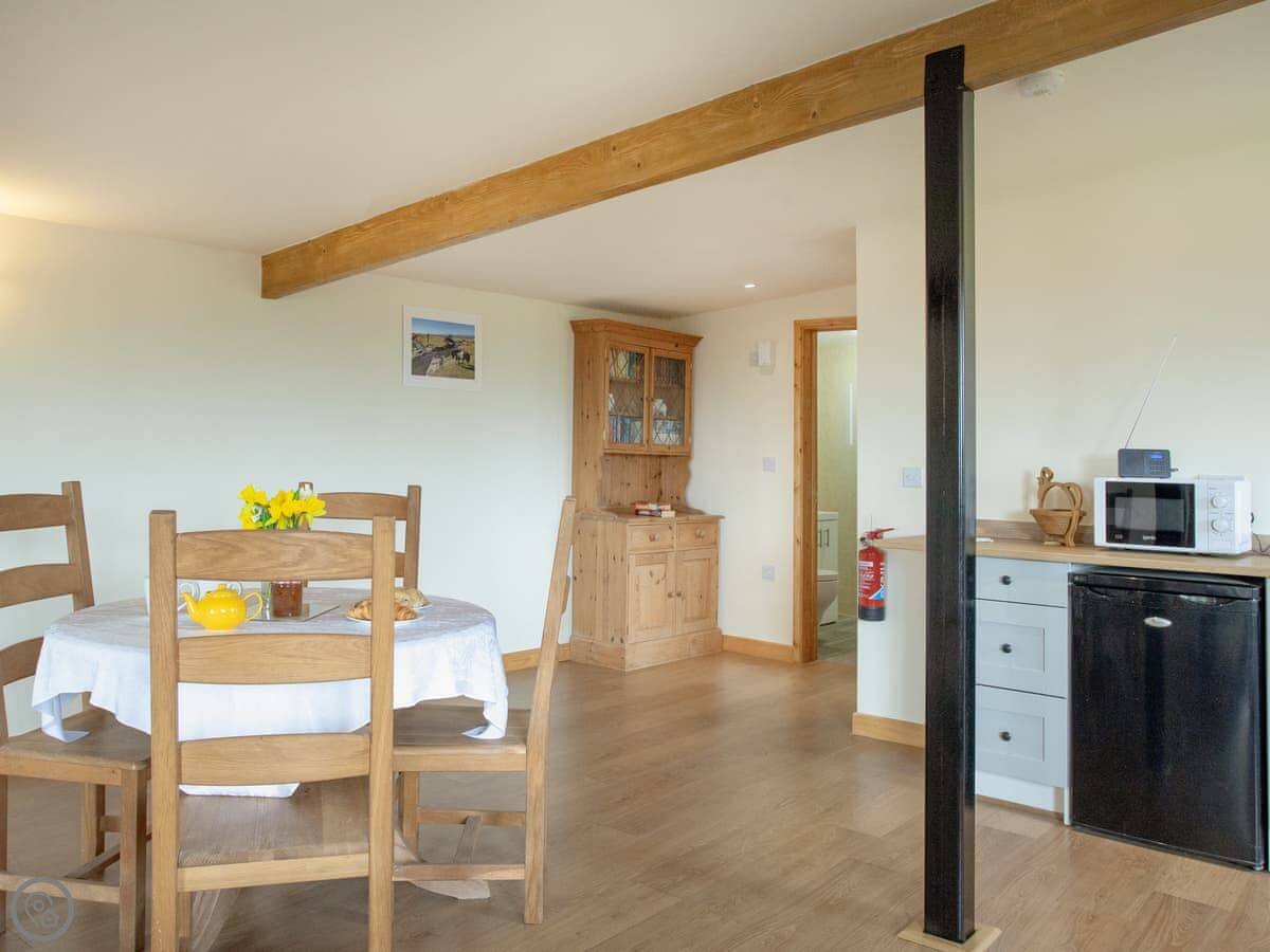The property has been thoughtfully setup with level access via a sloping ramp and wide doorways for wheelchair access. The kitchen is well-equipped for cooking up a romantic holiday feast. The dining table offers a great space for enjoying a home-cooked meal and the living area is the perfect spot to relax in after a busy day exploring Devon and Cornwall. Discover the cosy bedroom which is beautifully furnished with a double bed, wardrobe and chest of drawers and there is also a shower room next door fitted with a fantastic shower.
