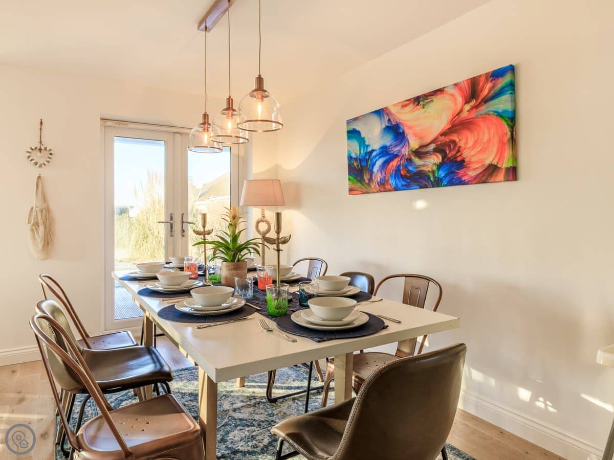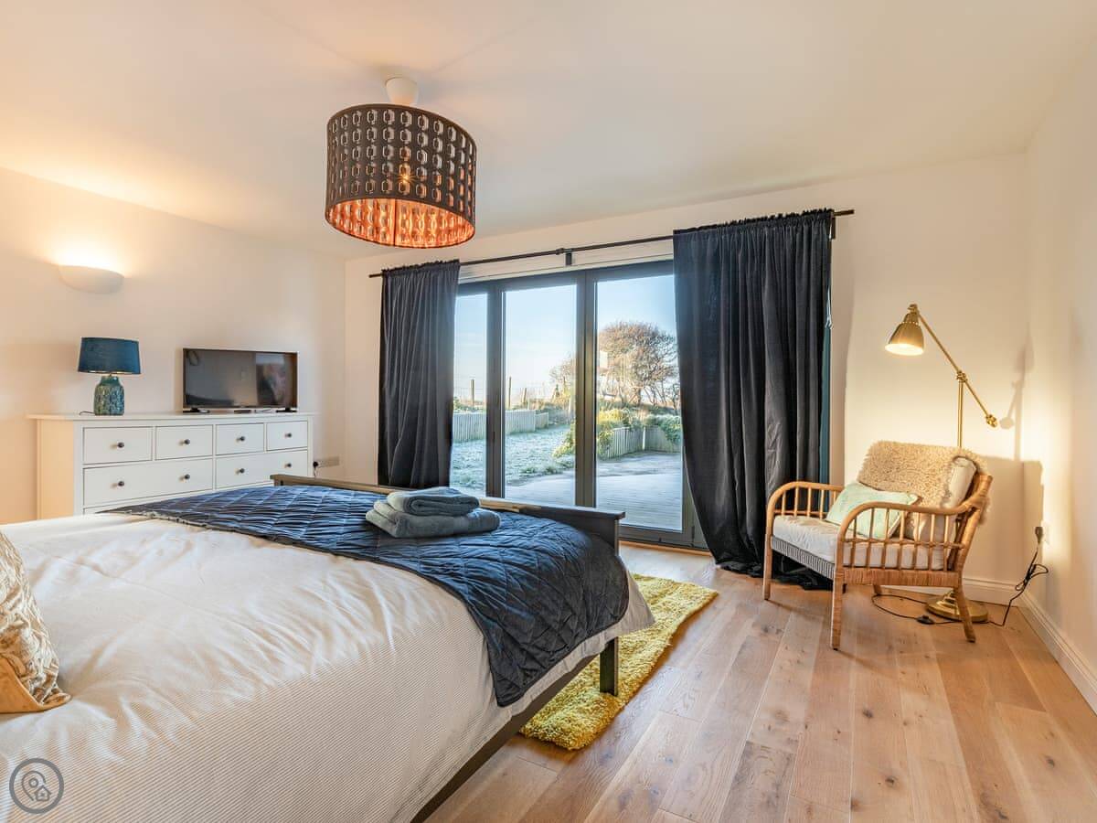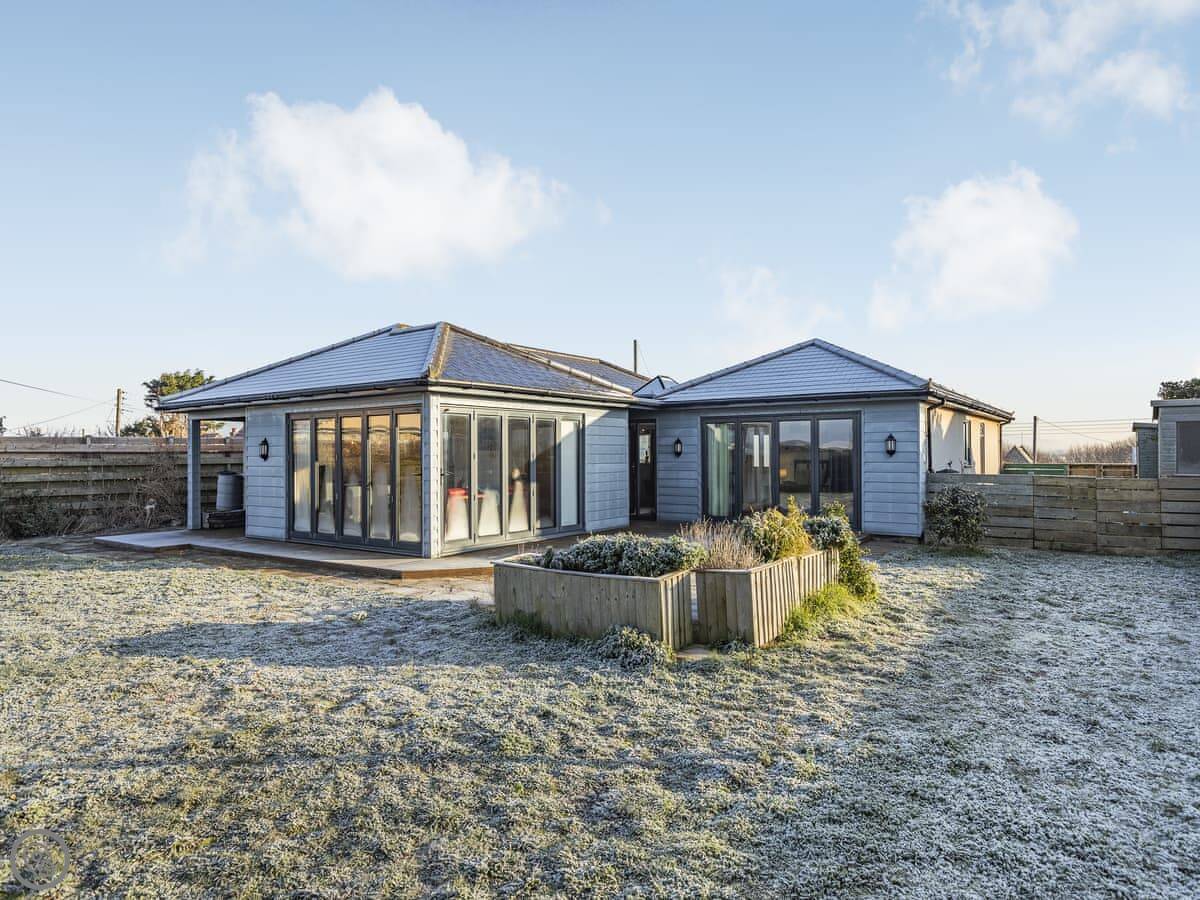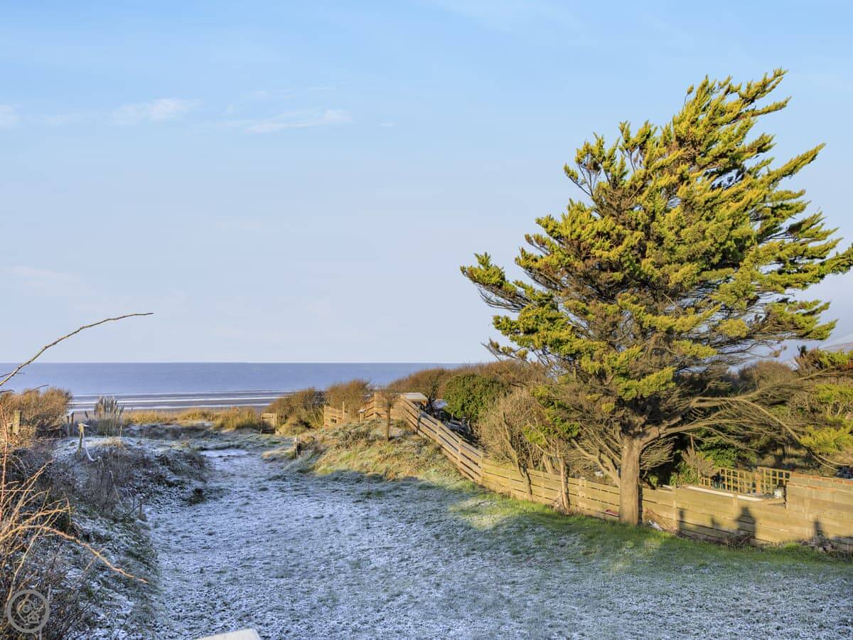 Marram Dune is a beach house in Brean. It’s detached, right on the shoreline. That gate at the bottom of the garden opens straight onto the sand. You get the sea views.