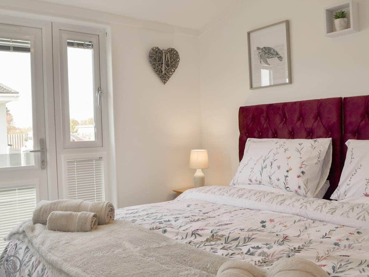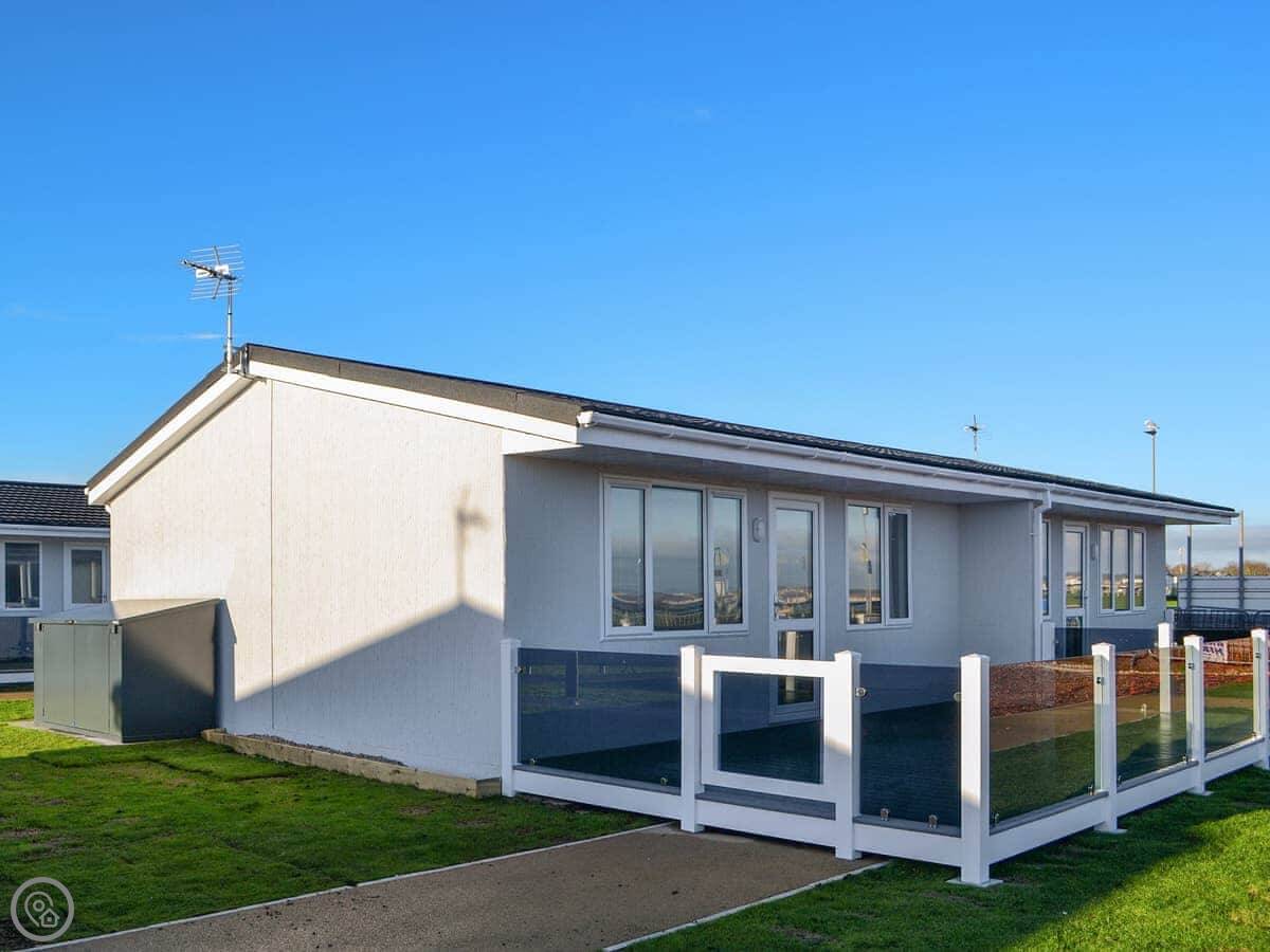 It's a modern, single-storey cabin. It sleeps four in two bedrooms. Both rooms have zip-and-link beds, so you can have them as either super kings or twins. There's one shower room.