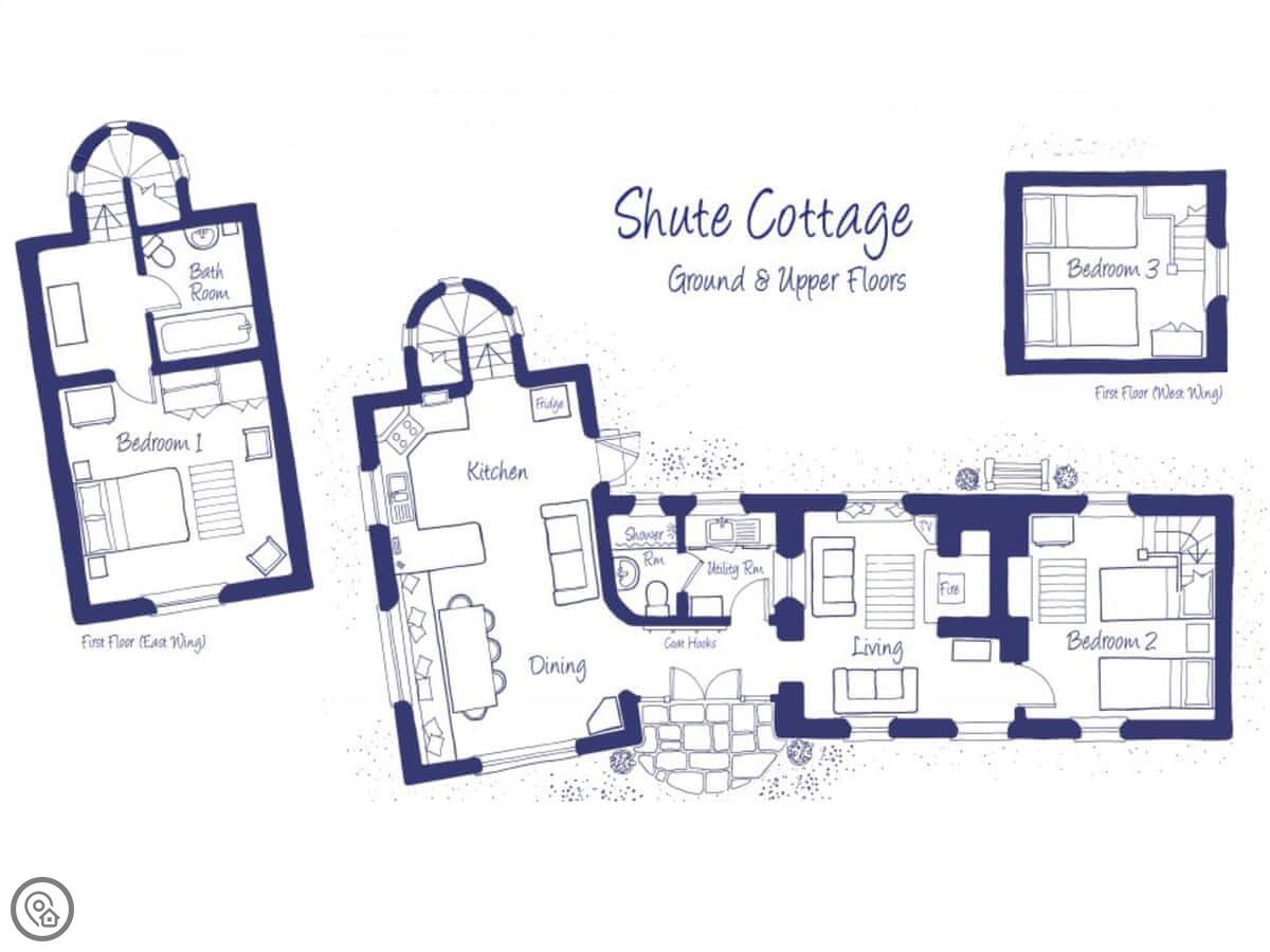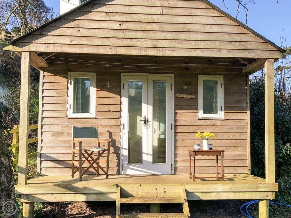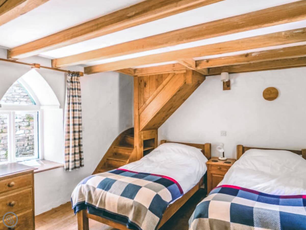 It sleeps eight people. Four bedrooms, three bathrooms. Three of the bedrooms are in the main cottage. The fourth is in a wooden chalet in the garden. It's got a 4 Star rating. The stairs inside the cottage are the original ones, so they're a bit uneven and steep.