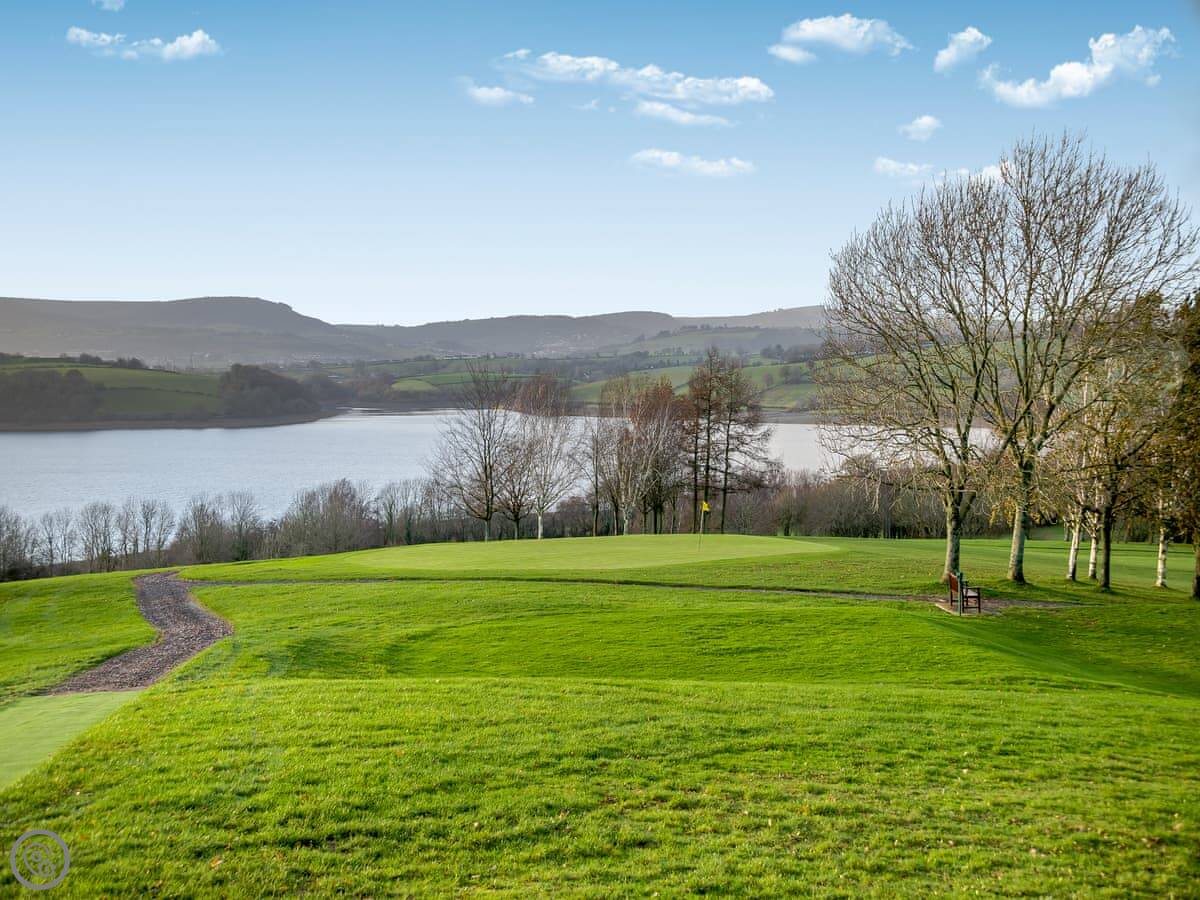 You can play golf, obviously. The reservoir is right there for walking. You can do water sports there too, like sailing. Usk town is about ten minutes drive, nice for a wander and a coffee. Abergavenny is about twenty minutes away, good for a market day.