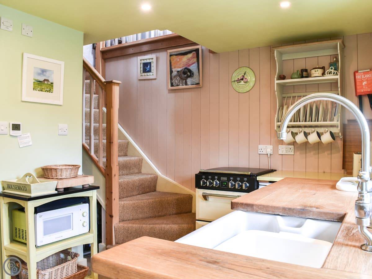 Swallows Byre is situated over the garden wall from Intake Cottage, and retains the same beautiful south facing views. This conversion incorporates the best of old and new design using the compact space with maximum natural light encompassing quality tasteful furnishings and having central heating. Upside down by design, the first floor living Room boasts oak flooring complimented with wood burning stove. Back down to the ground floor you’ll find the kitchen, being well equipped with everything you may need to rustle up a homely meal, and enjoys under floor heating. The bedroom will welcome you with a double antique bed for a comfy night’s sleep, with plentiful storage space and a dressing area. The bathroom has a lovely roll top bath, with hand shower. Outside is a lovely terraced patio set with plants and shrubs, and a summerhouse to sit and relax in while watching the sun go down.