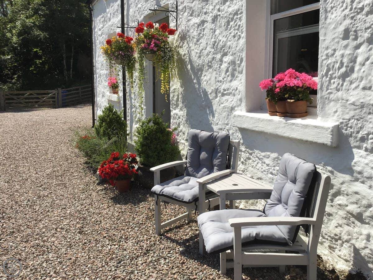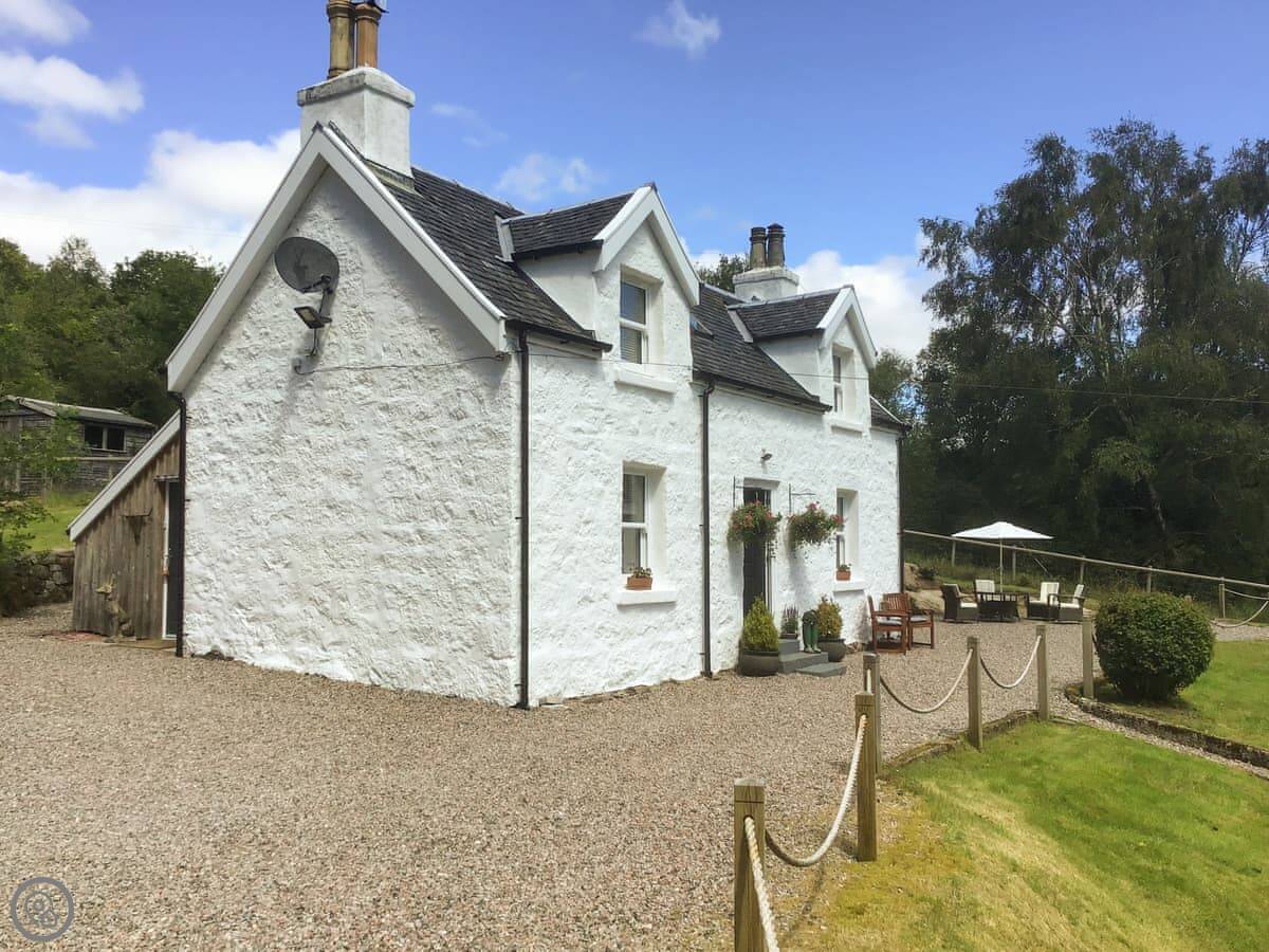A beautiful, whitewashed country cottage just off the country road by Loch Sunart. With trees and shrubs in the garden and a beautifully manicured lawn and ample gravelled private off-road parking. Two lovely seating areas to enjoy alfresco dining and relaxing. From the outside, you are not disappointed and once you go inside you are brought into a beautifully restored modern house with many comforts and luxuries to enjoy.