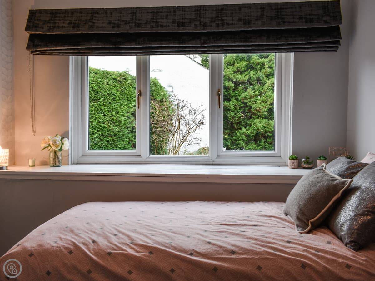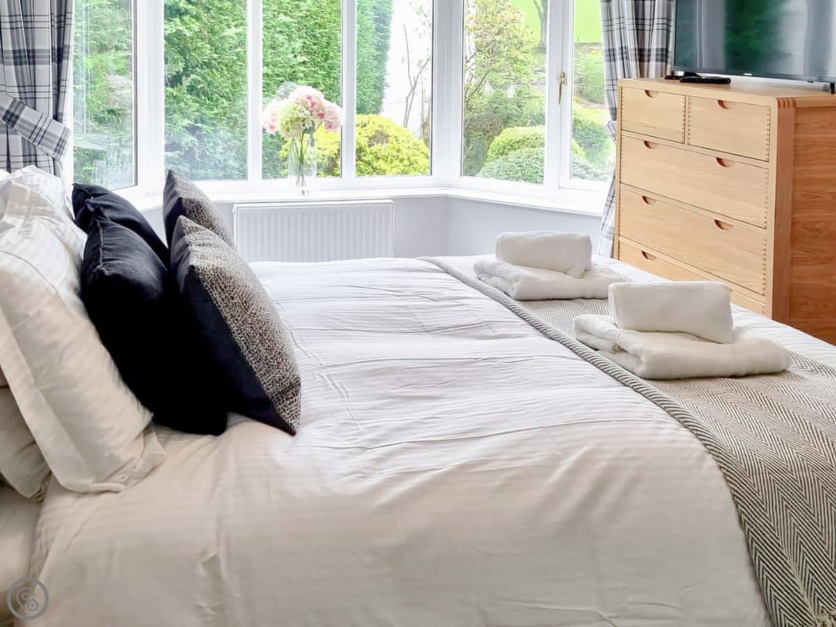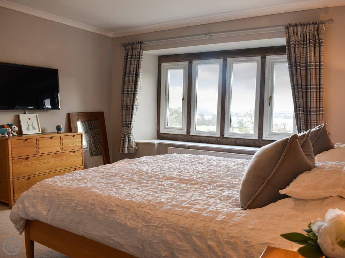 The place feels solid. There's a woodburning stove that works well. The garden's a big one, about an acre, with good views down to the lake. The land's open around it so it feels private.